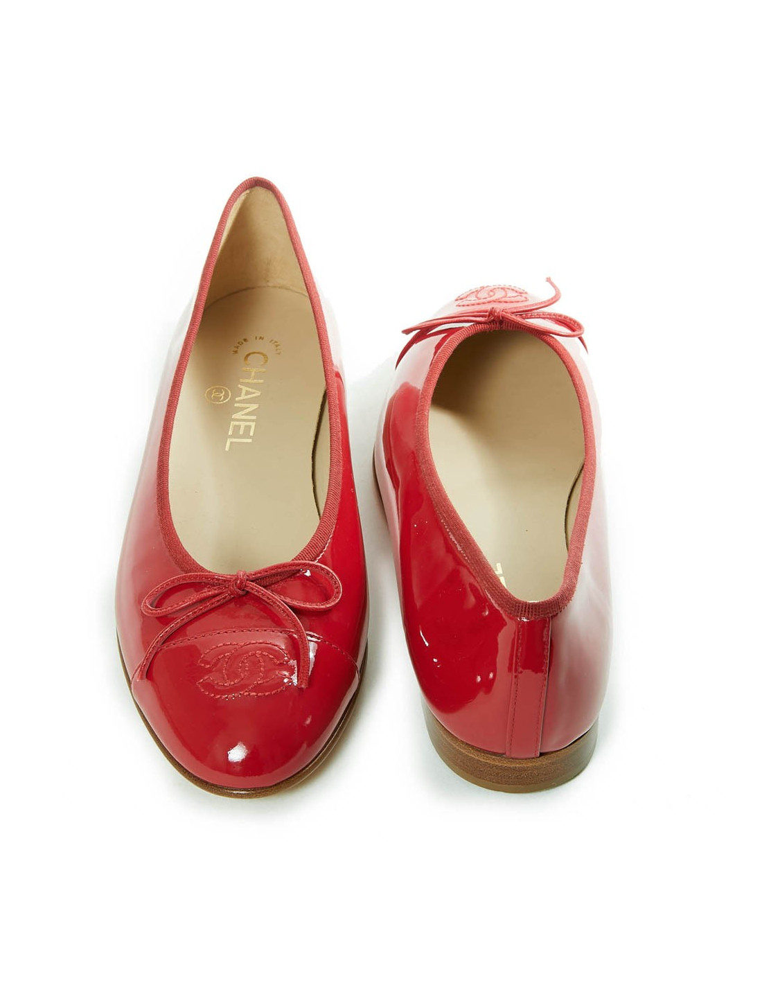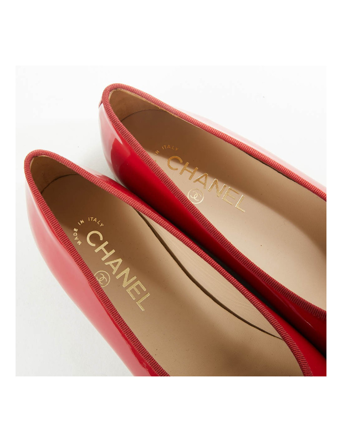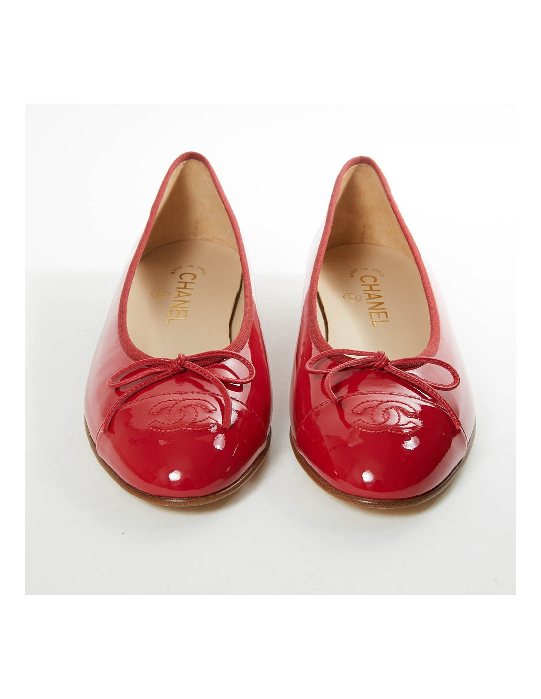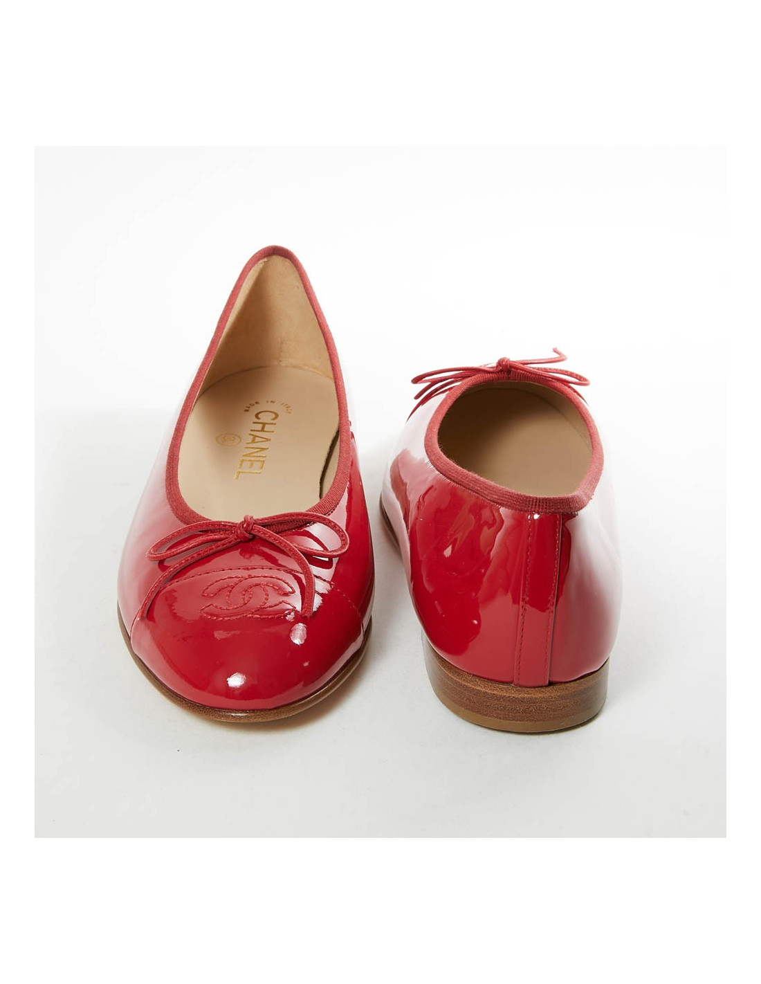 Ballerines T 39.5 CHANEL cuir verni rouge