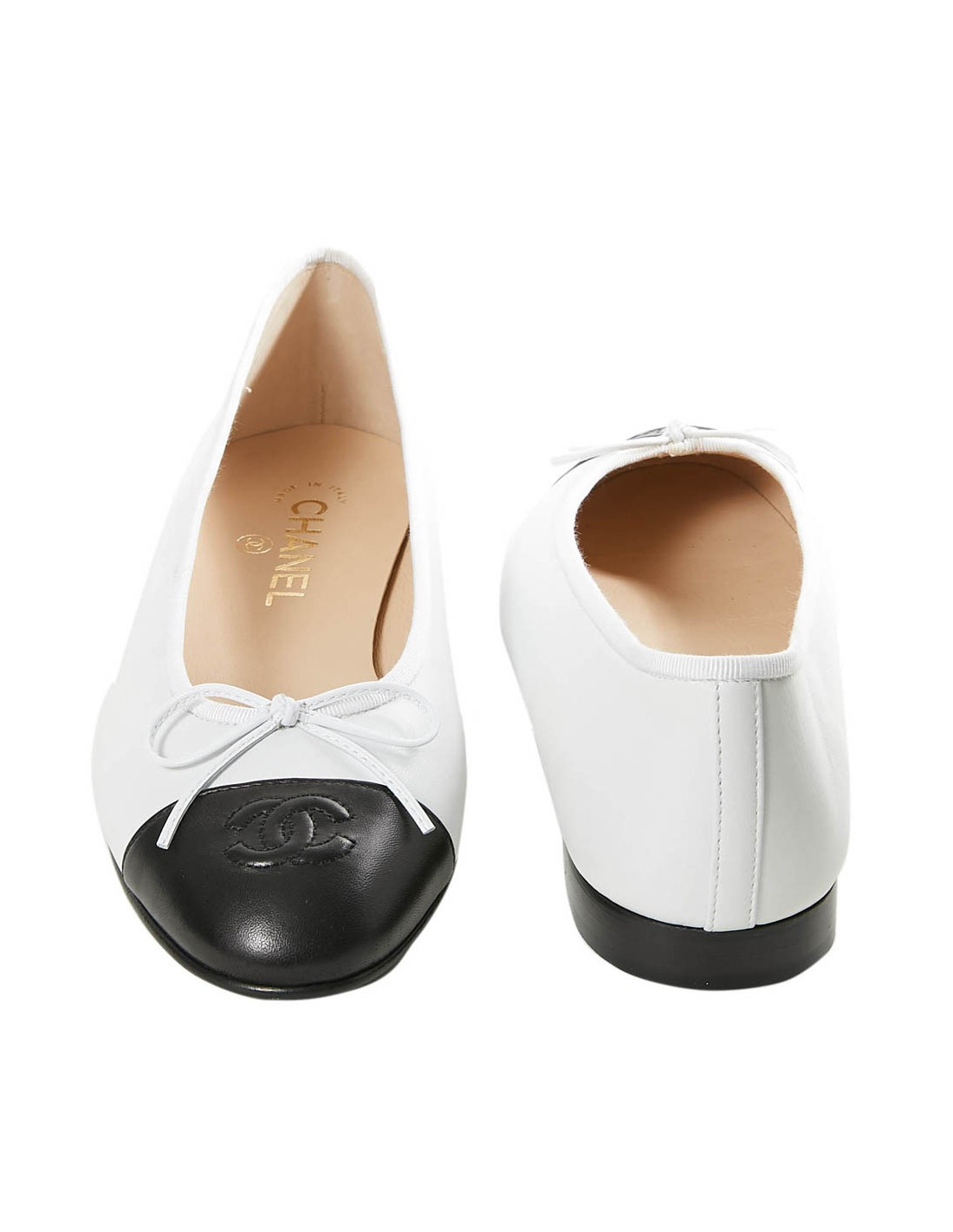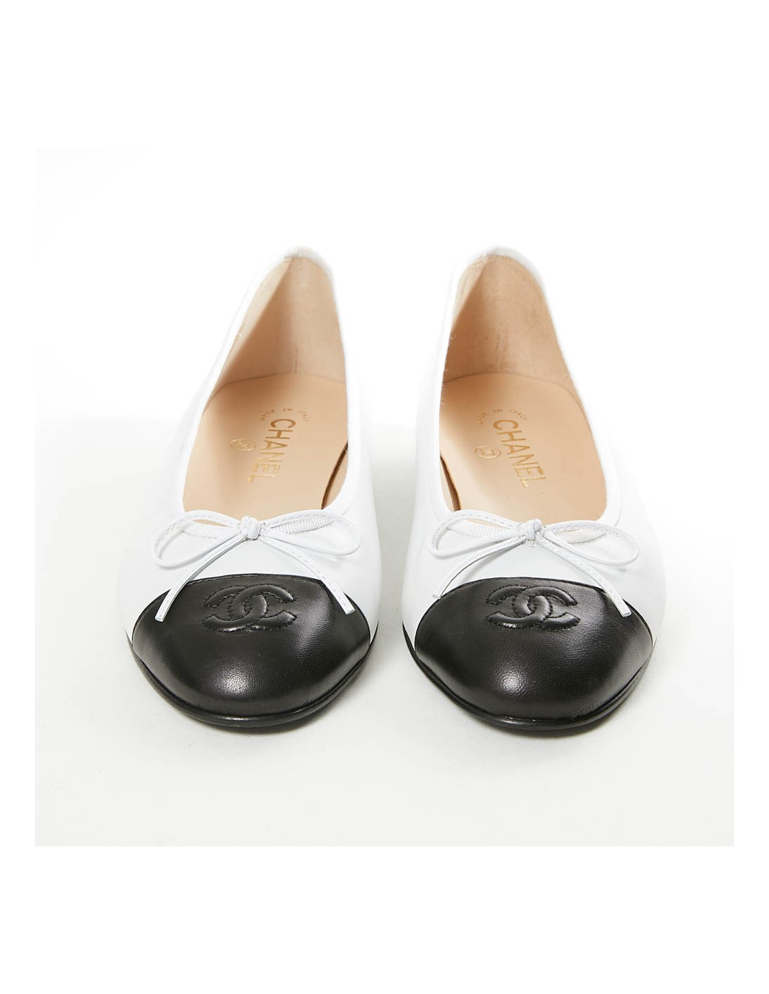 Ballerines CHANEL T40 cuir bicolore blanc et noir