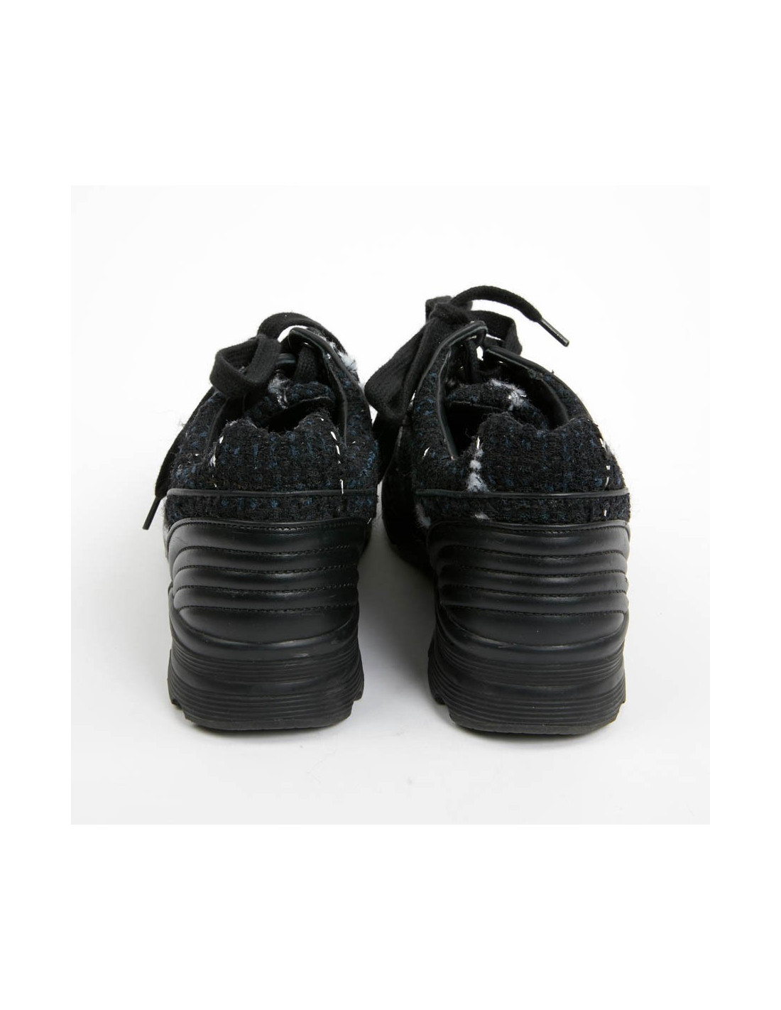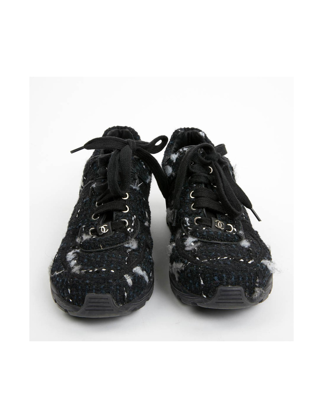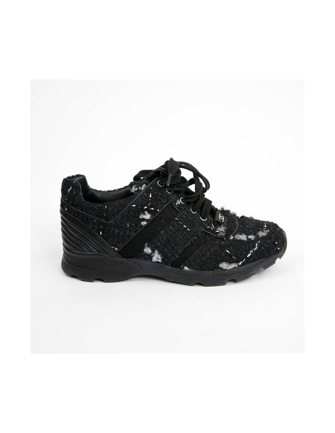 Sneakers CHANEL T39 tweed bleu et noir