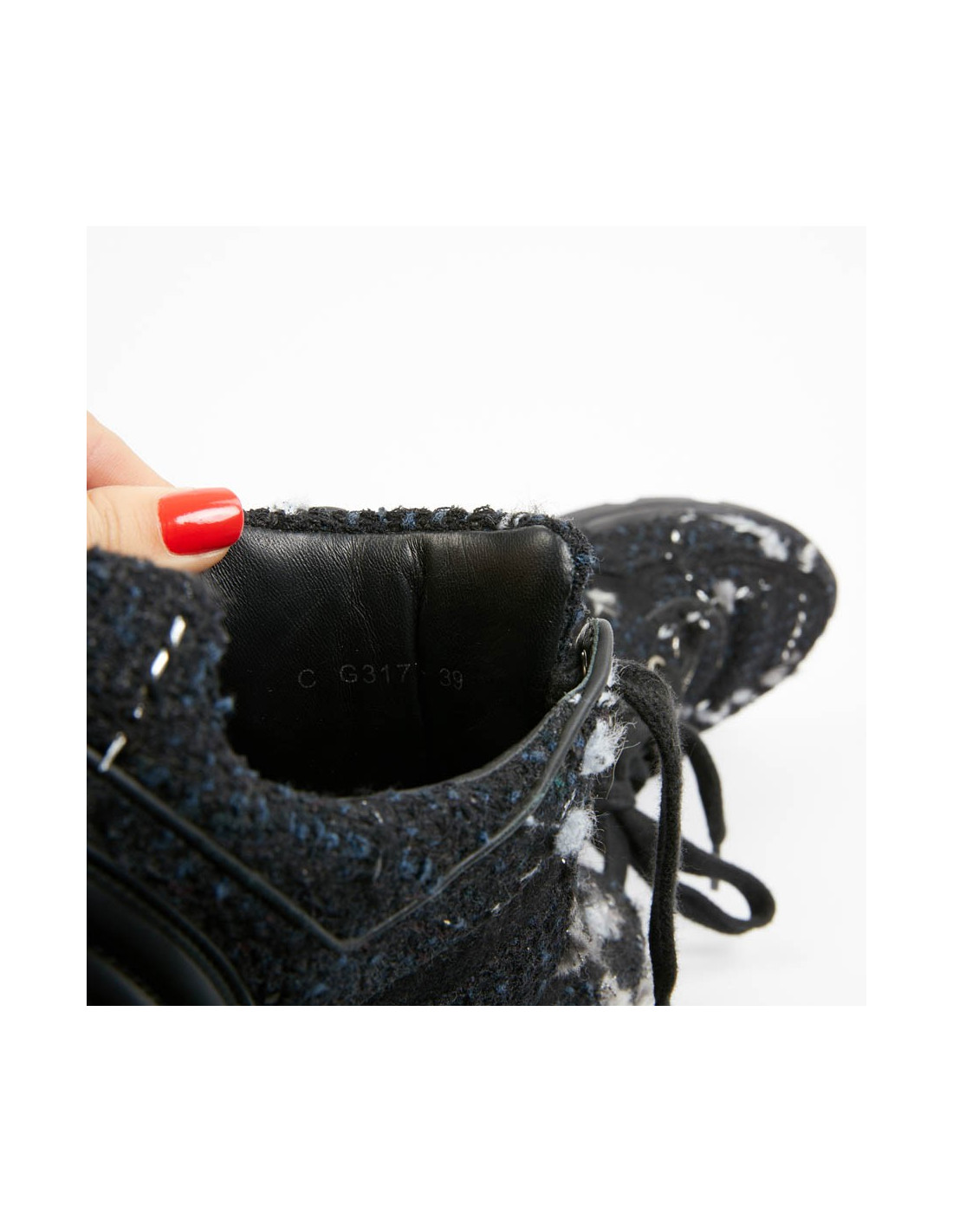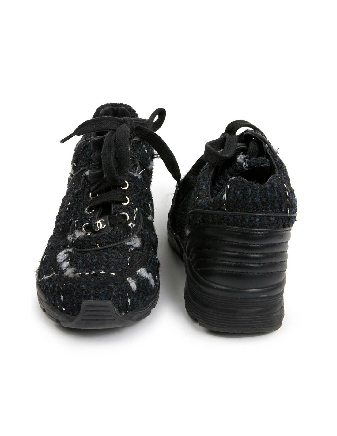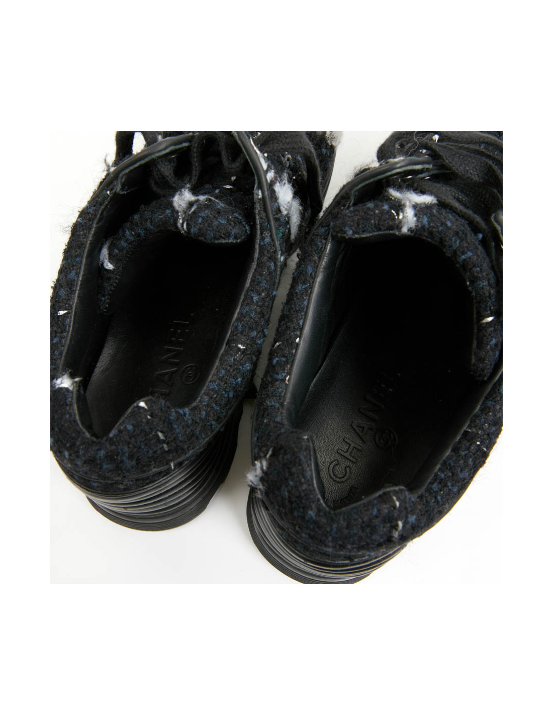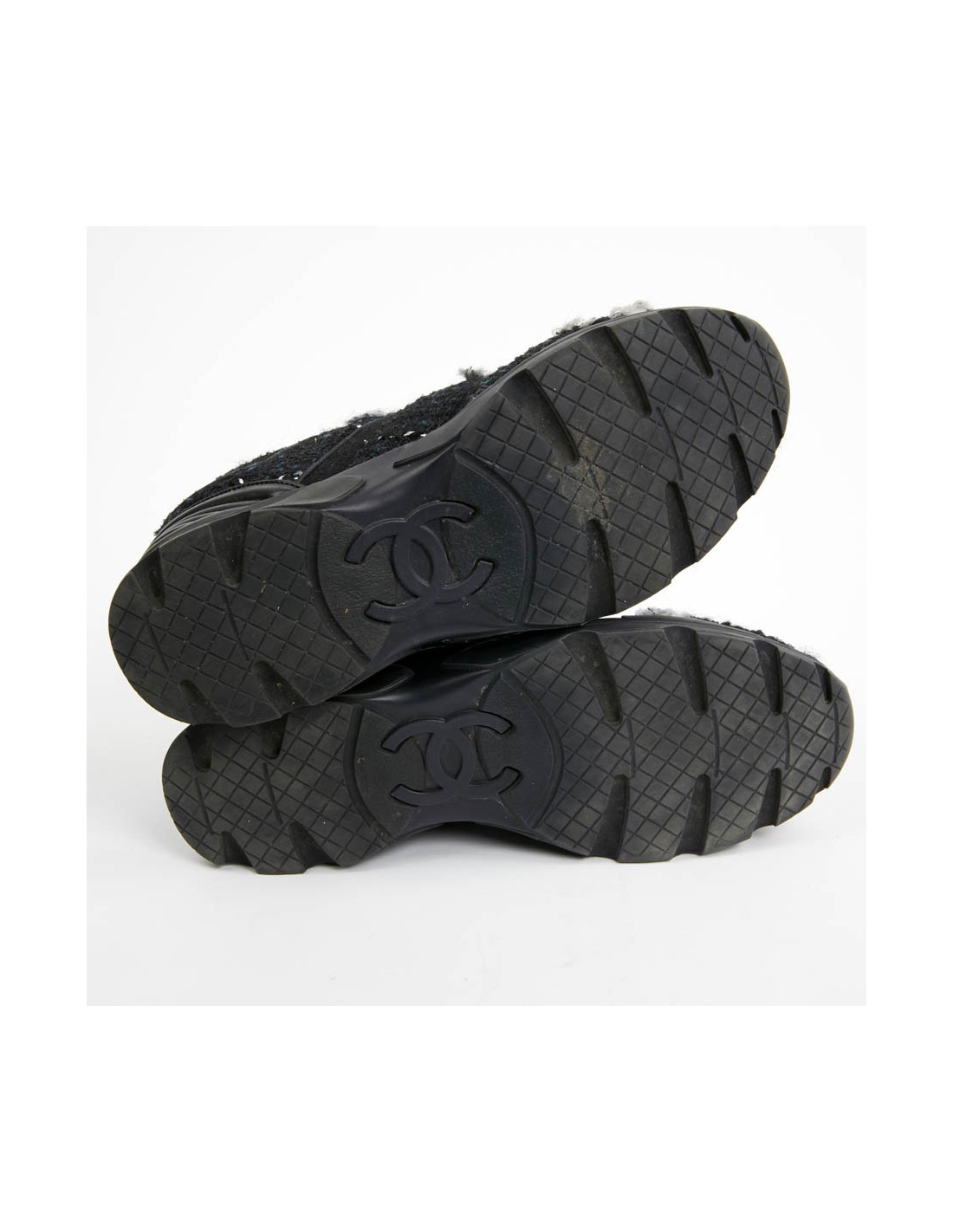 Sneakers CHANEL T39 tweed bleu et noir