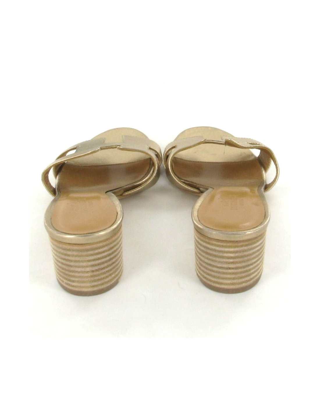 Sandales HERMES, modèle Oasis, taille 35, couleur dorée. Cette paire de sandales en cuir nappa, devenue un classique, est neuve. Semelles en cuir. Les sandales sont fournies dans leur dustbag et leur boîte d'origine.