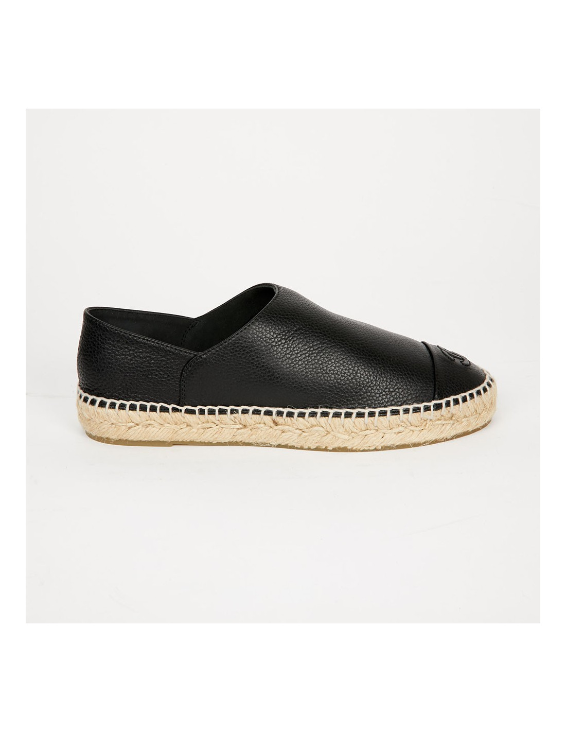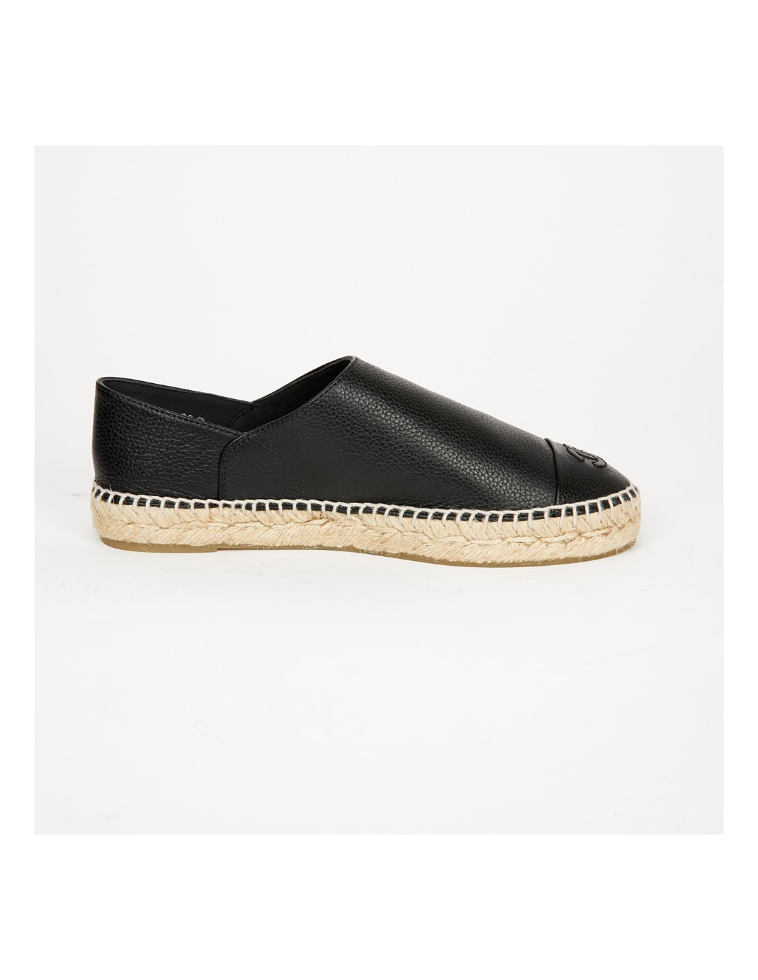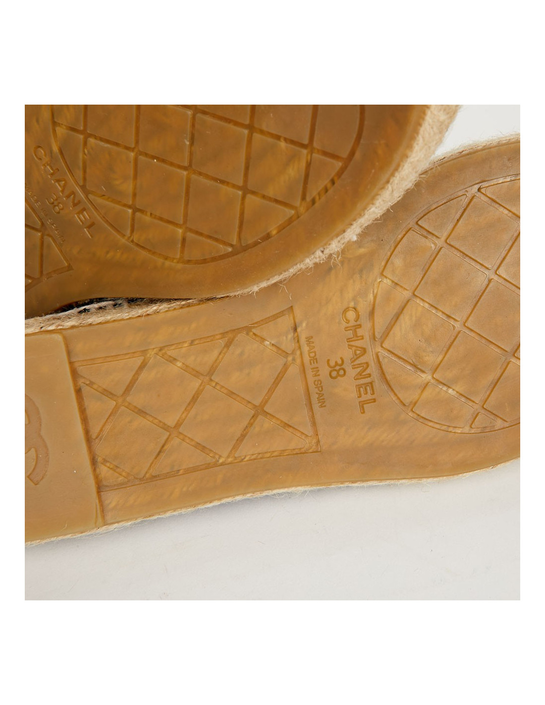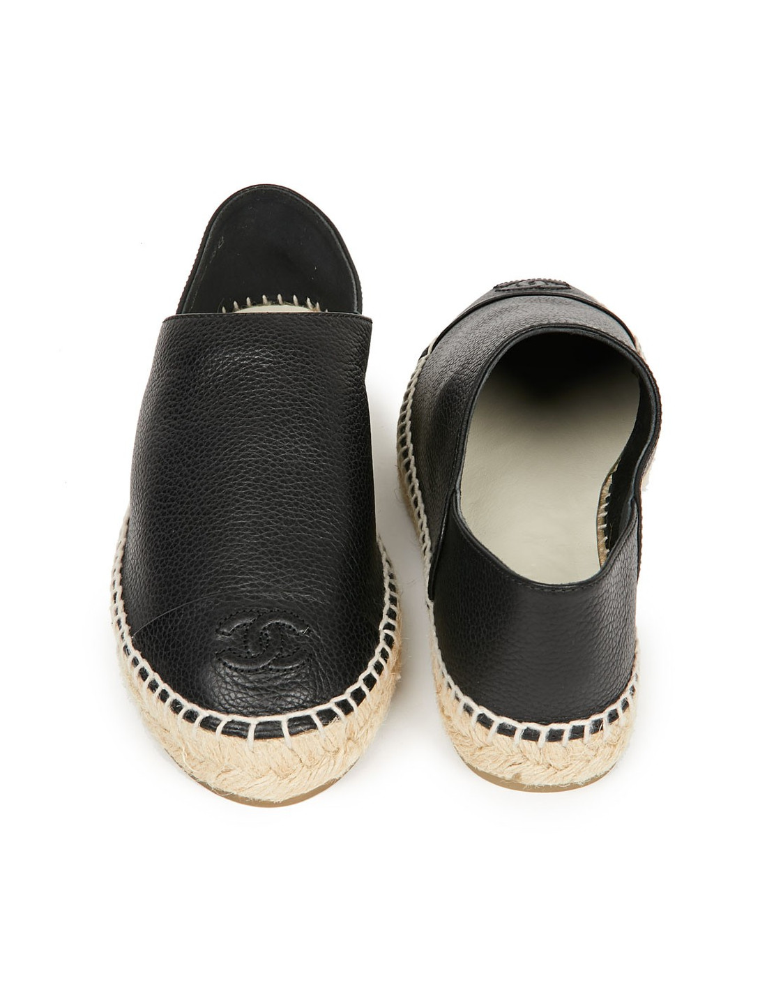 C'est le modèle à avoir dans sa garde robe pour l'été, la paire d'espadrilles Chanel. Grand classique de la Maison celles-ci sont en cuir grainé noir avec à leur bout le logo CC. La semelle est en corde et gomme. Elles n'ont jamais été portées.
