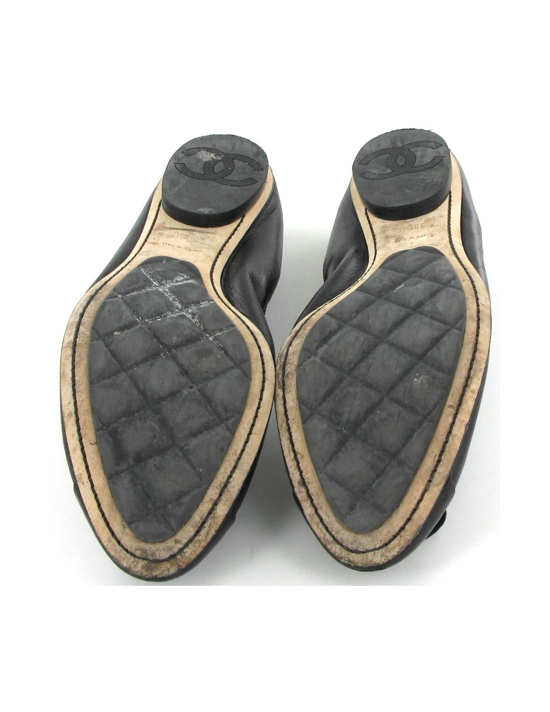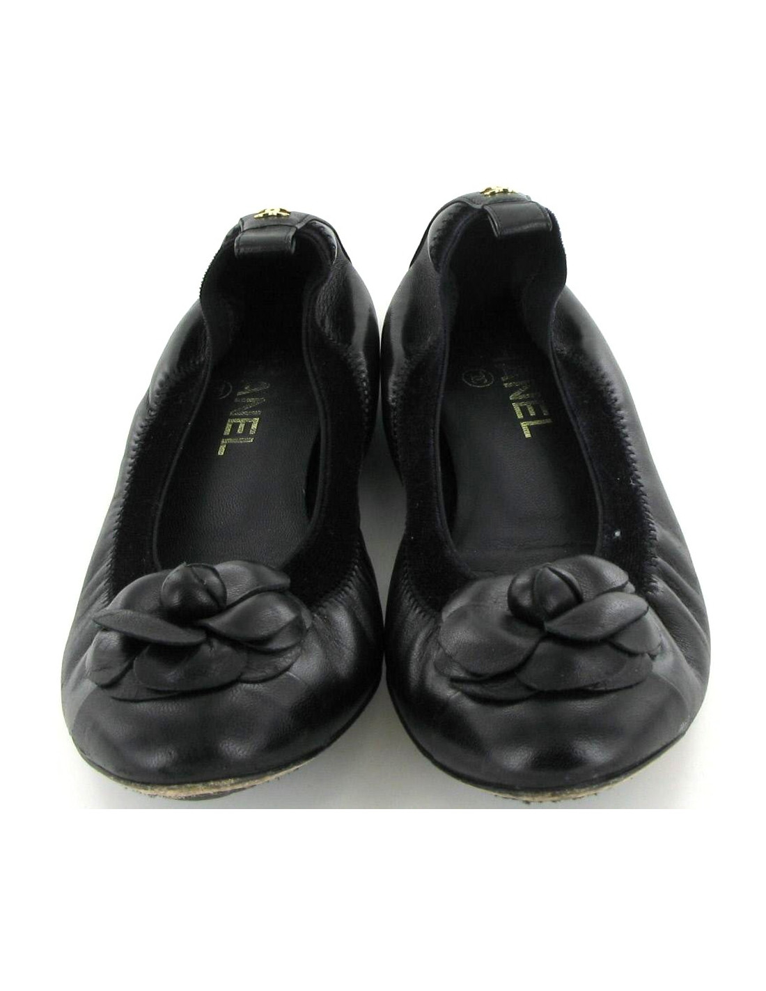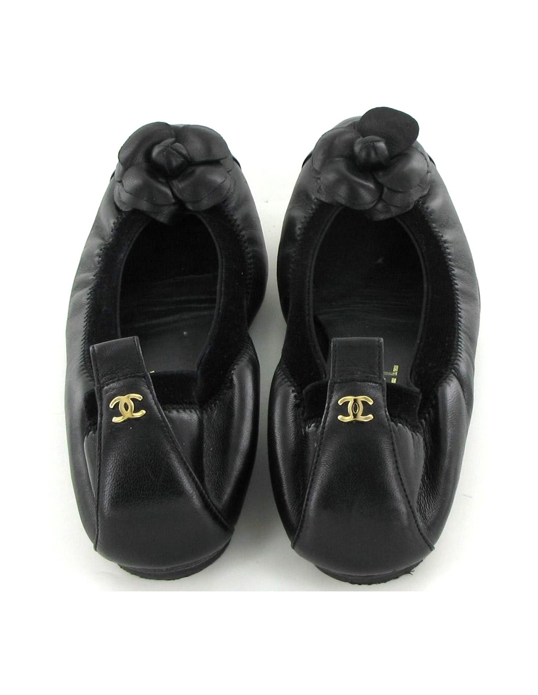 Ballerines CHANEL en cuir noir et liseré en velours noir, camélias en cuir noir, taille 38,5. A la fois tendance et féminine, ces ballerines font un pied très fin. En très bon état, cette paire est vendue avec leur dustbag et leur boîte d'origine. Signature CC en métal doré sur la cheville. Made in Italy. Semelle extérieure en cuir, et gomme matelassée, et siglée CC.