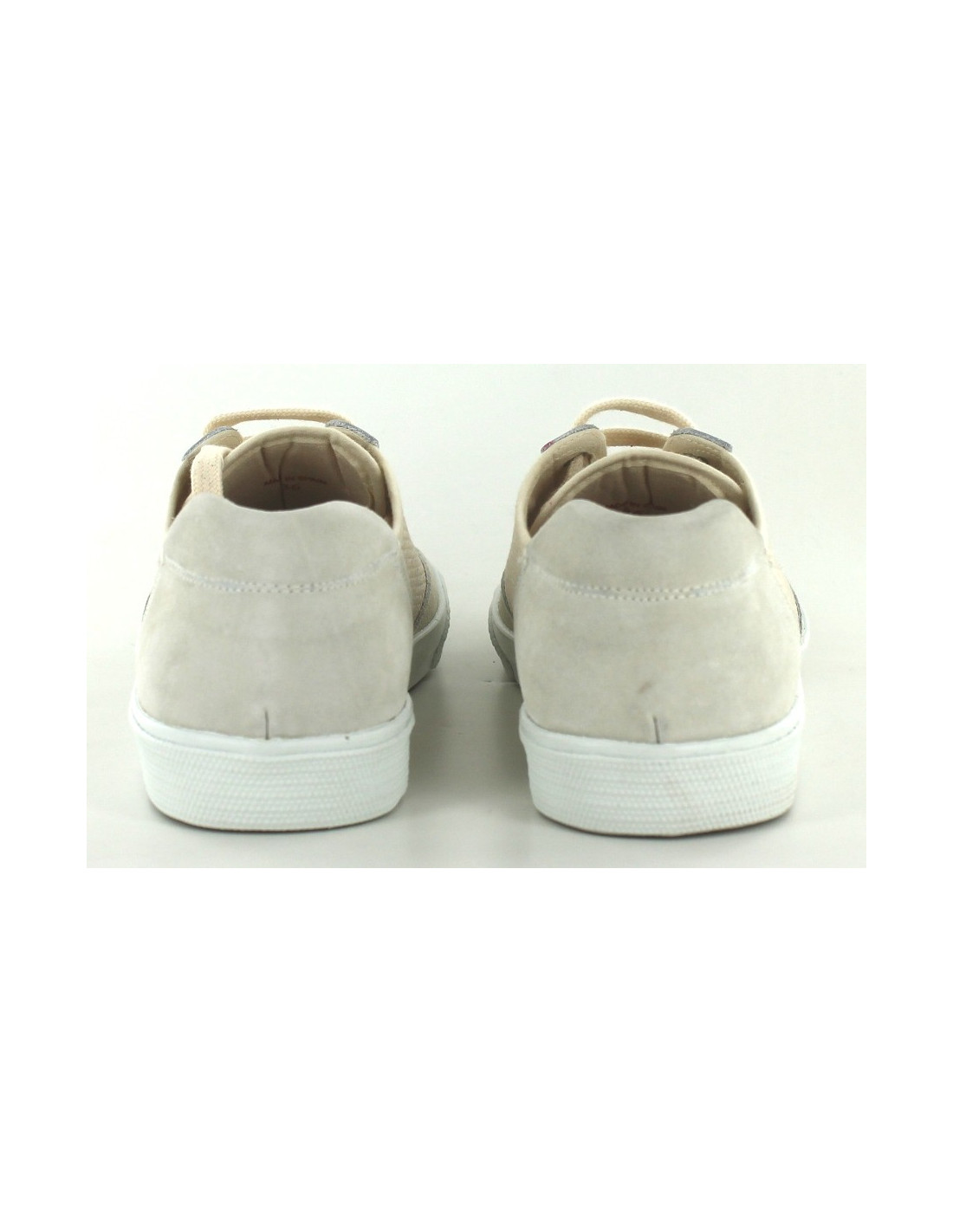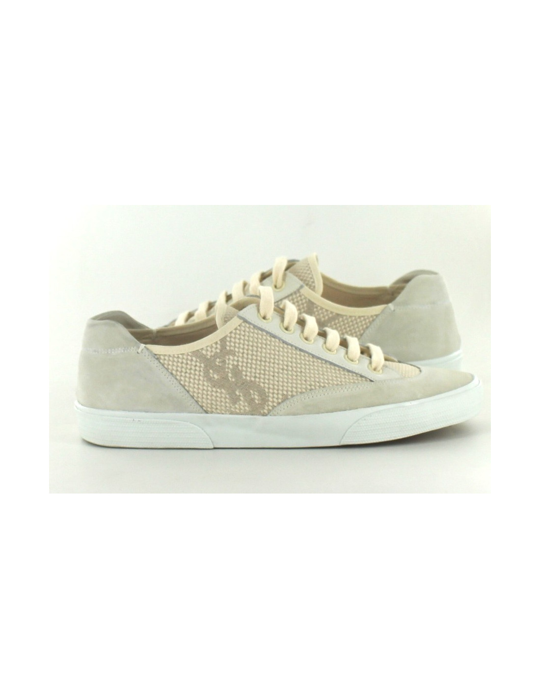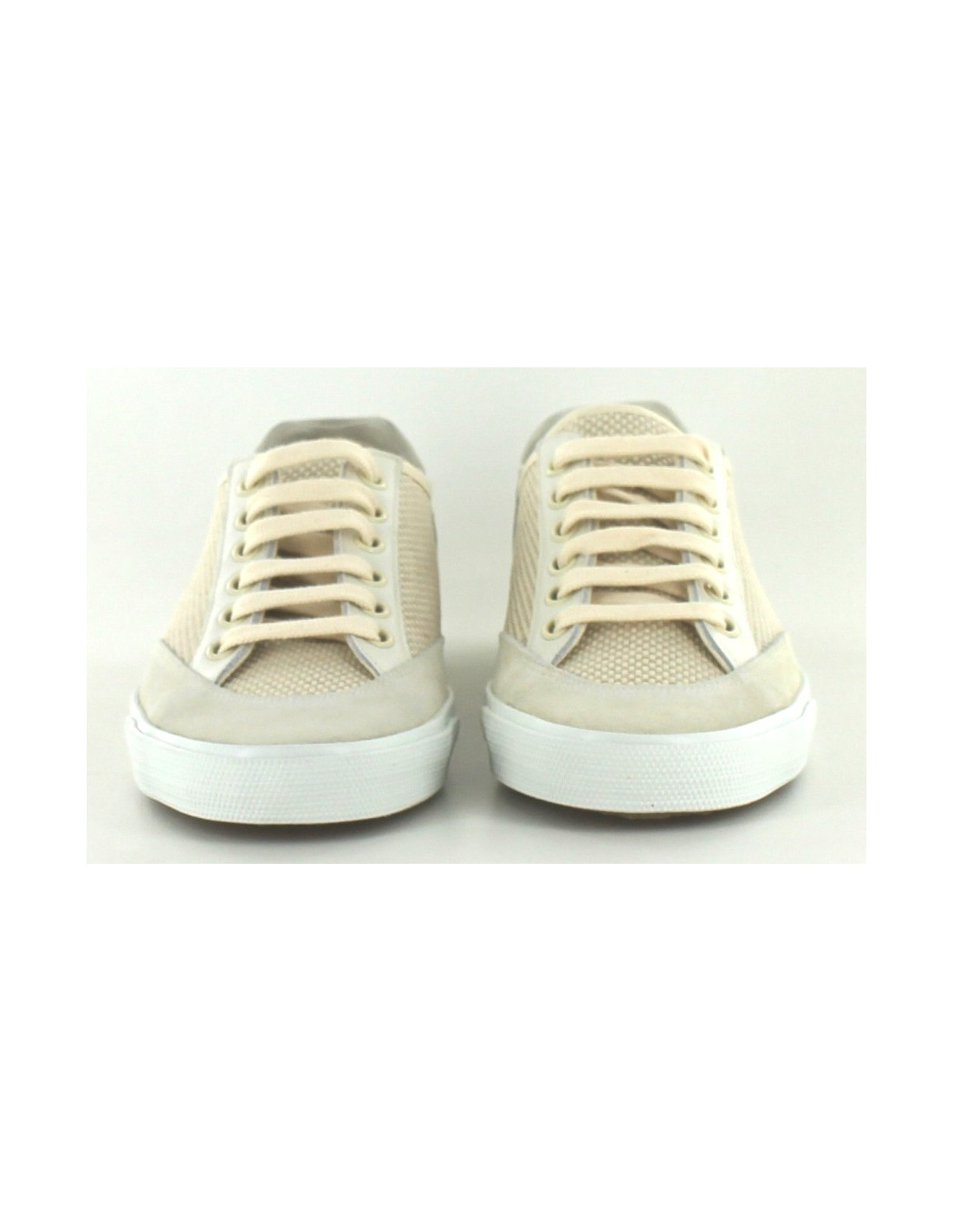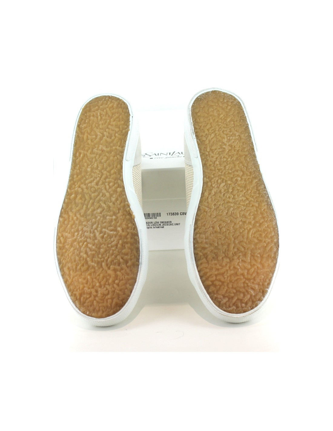 Baskets YVES SAINT LAURENT en toile beige, taille 36.Liserés en veau velours et oeillets en cuir gris très clair. Lacets beiges. Semelle en caoutchouc. Ces baskets sont neuves. Vendues avec leur boîte d'origine. Made in Spain.