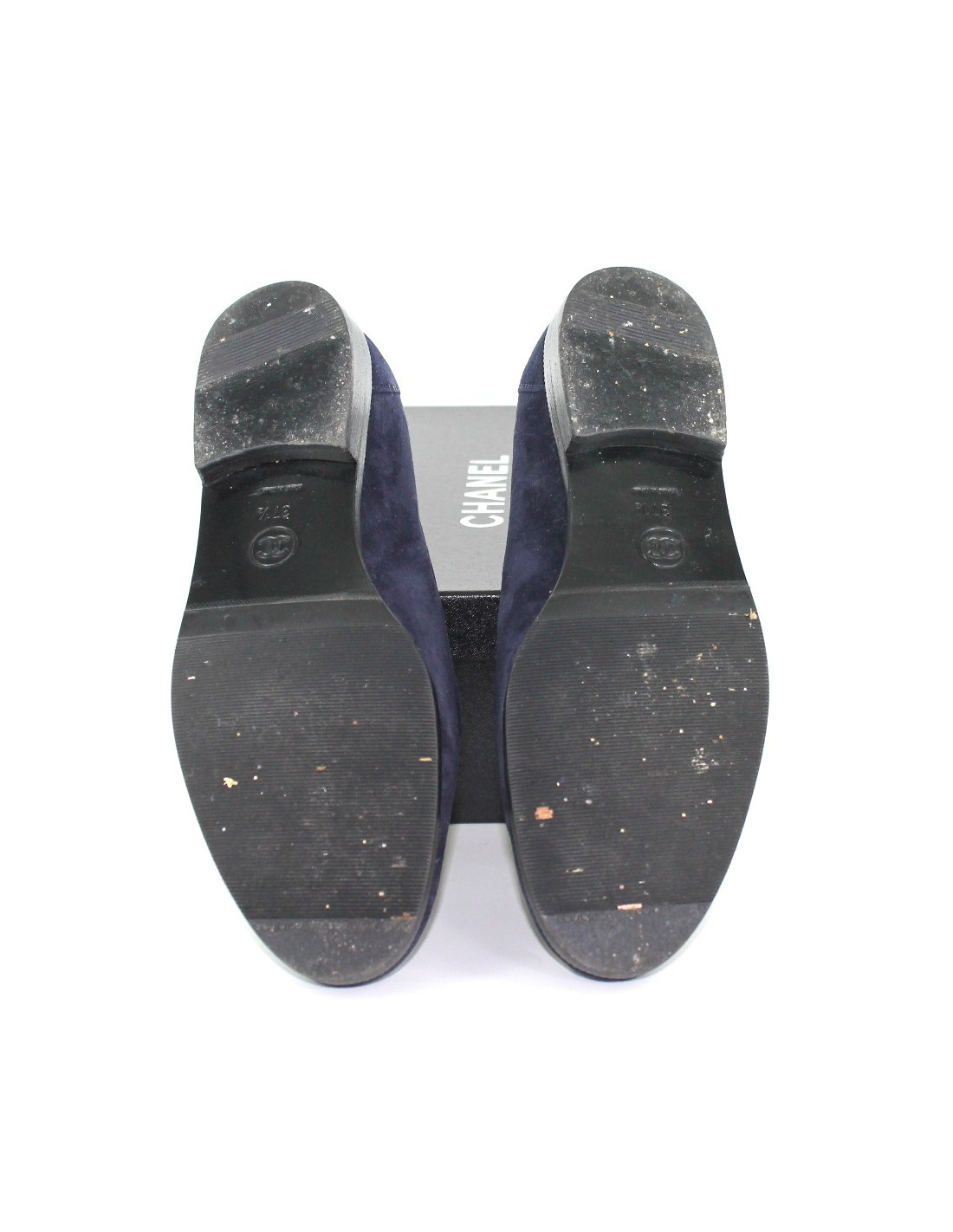 Mocassins CHANEL en veau velours bleu marine T 37,5