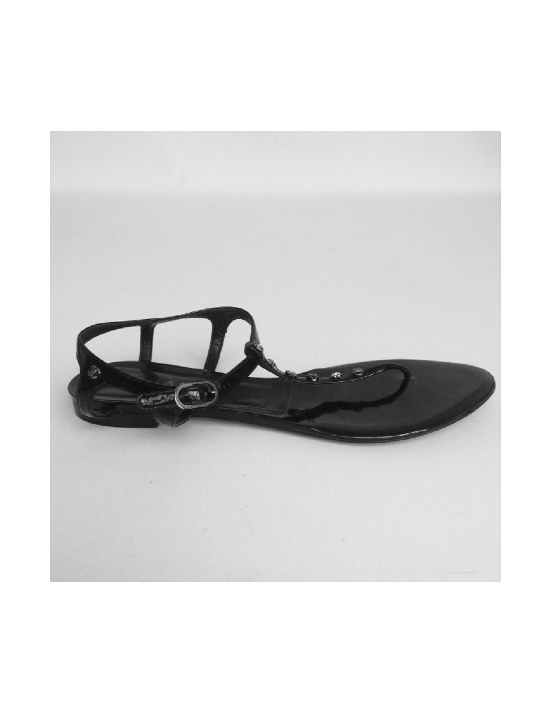Sandales plates en cuir verni noir Chanel T 39