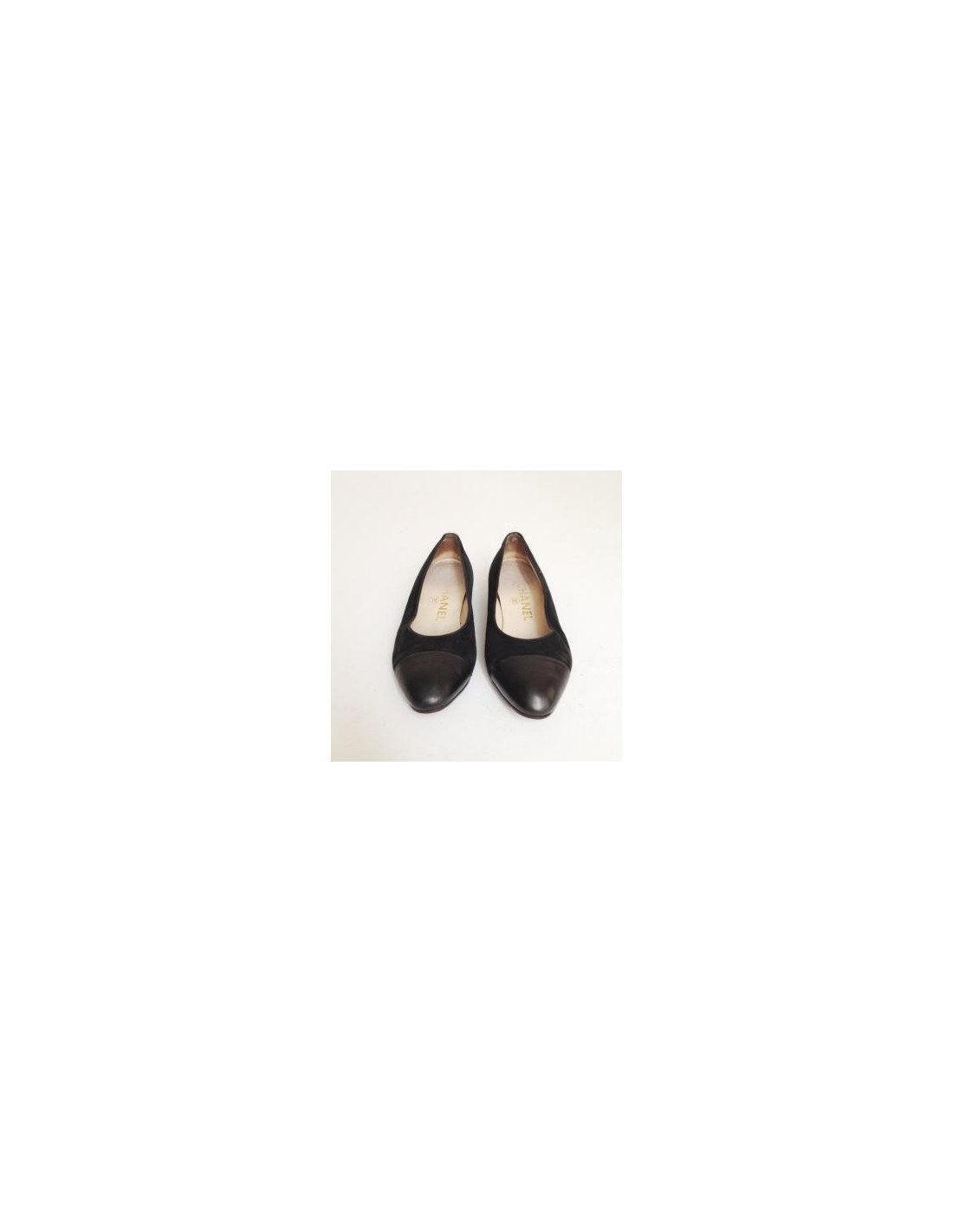 Timeless ! Ballerines CHANEL noires, bi-matière T 36.5 , toile et cuir (bouts)