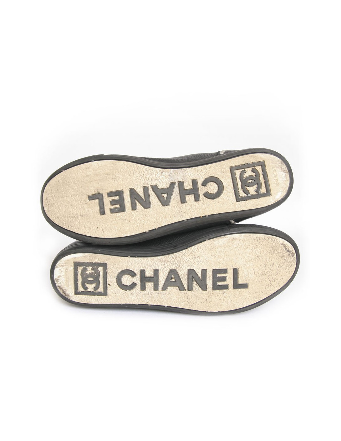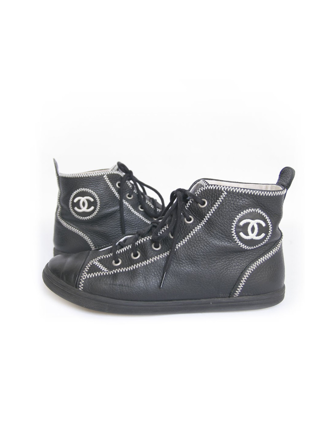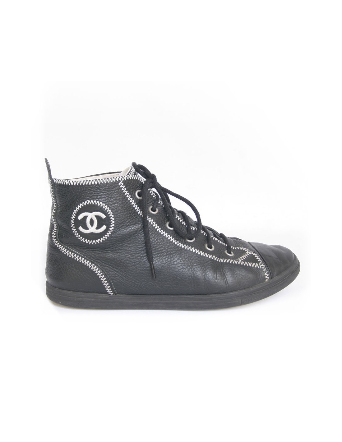 Baskets CHANEL T 39.5 cuir grainé noir et surpiqûres