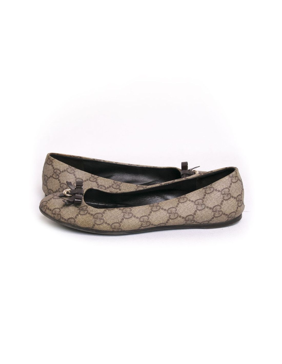 Jolie paire de ballerines Gucci en toile enduite monogram. Taille 36.