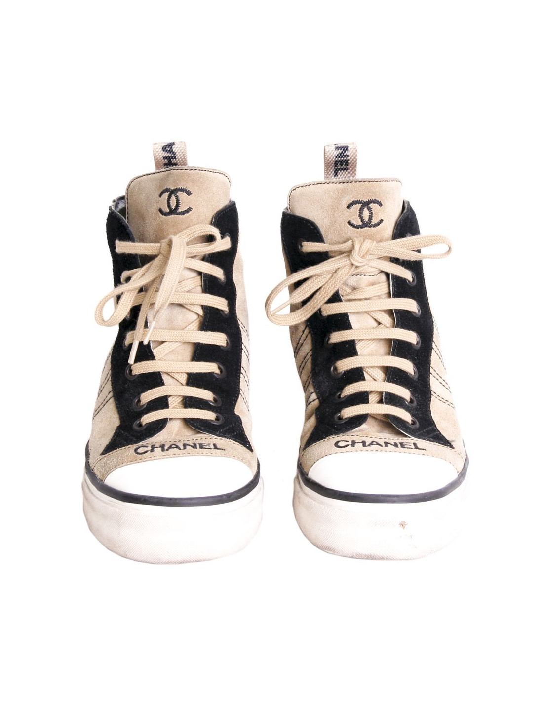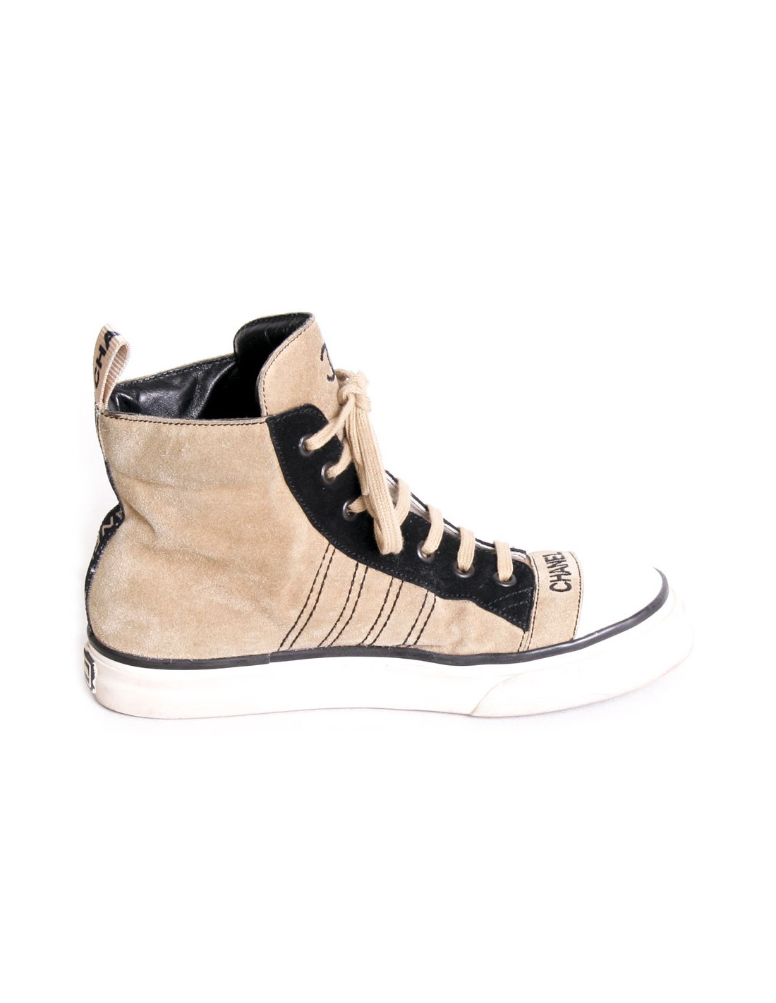 Baskets Chanel T 37 pour femme, très pratique et tendance, couleur ocre et noir.