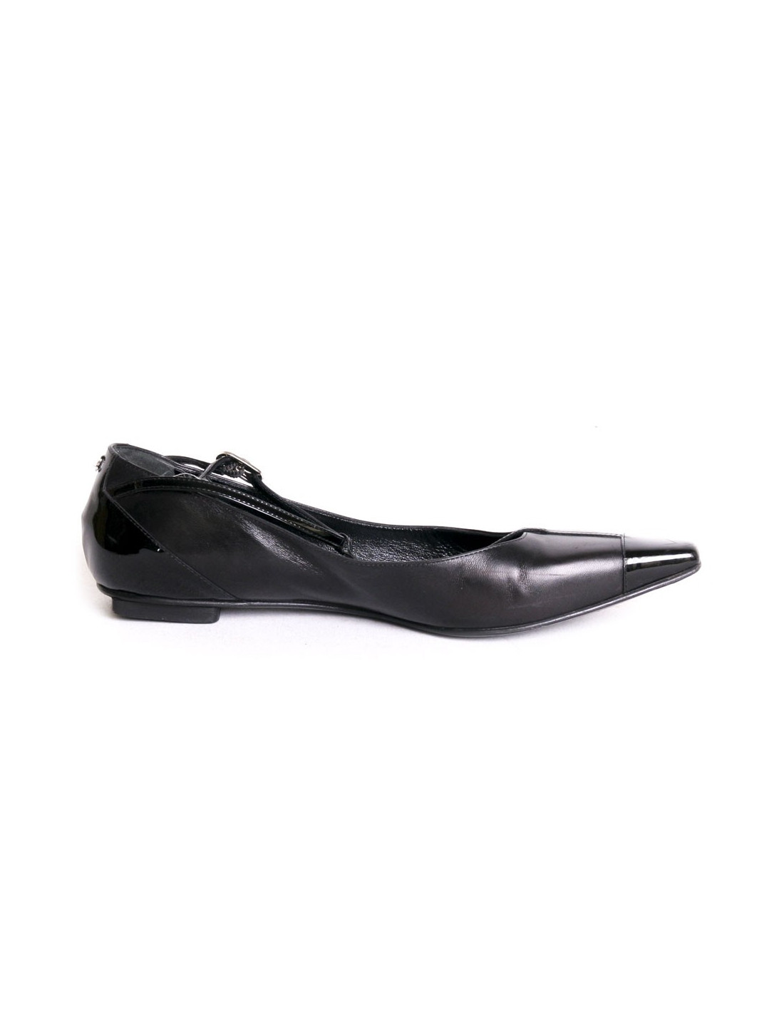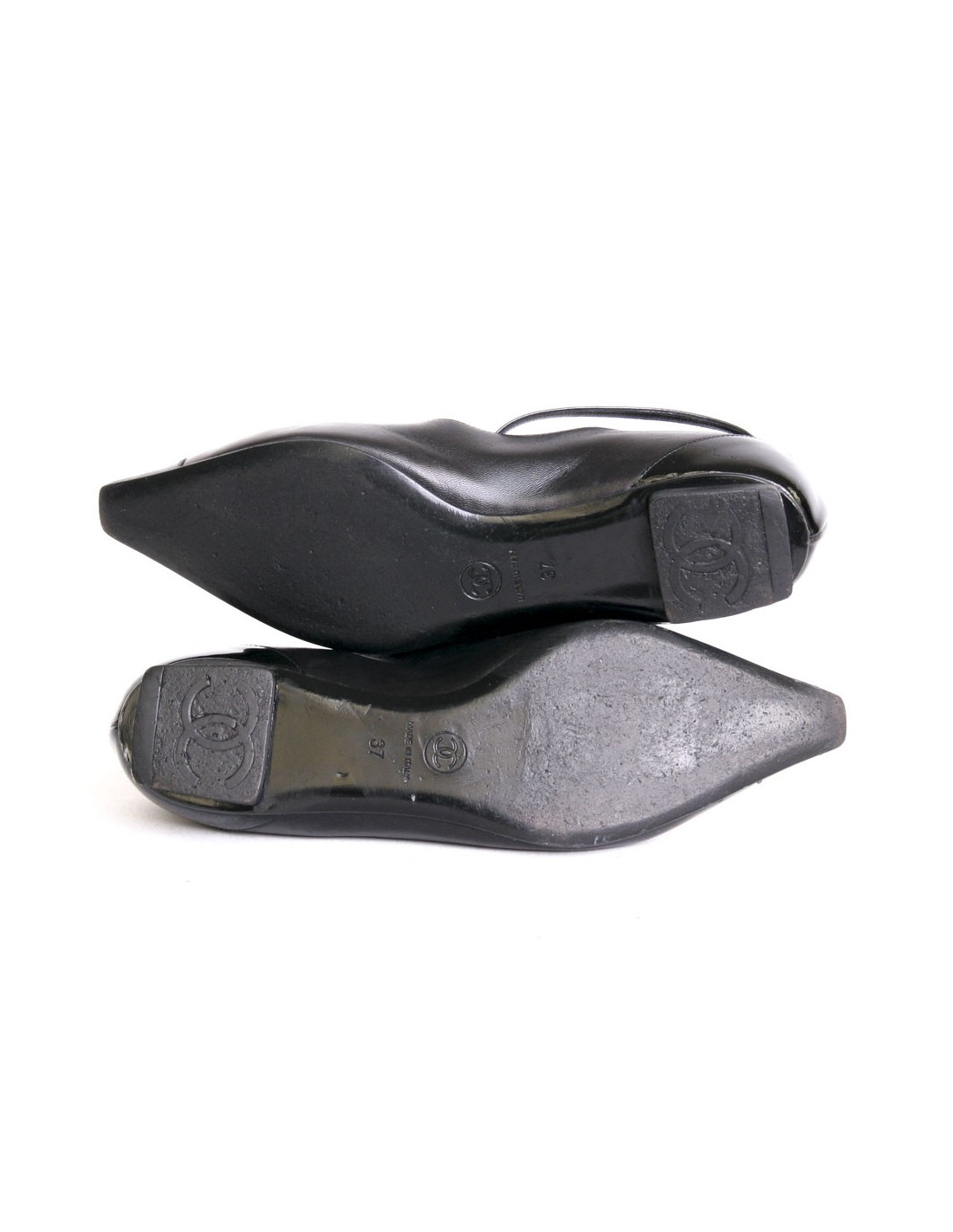 Ballerines Chanel T37 en cuir d'agneau et cuir verni noir