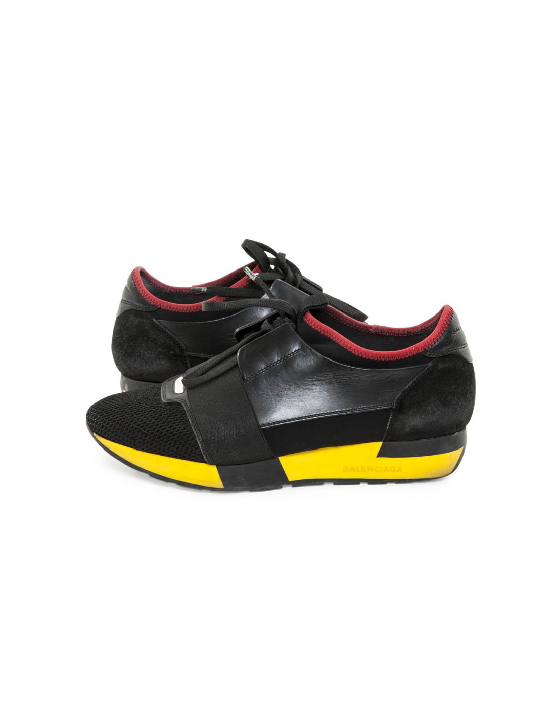 Baskets 'race runner' de la Maison Balenciaga en cuir noir, résille et néoprène. Taille 39.