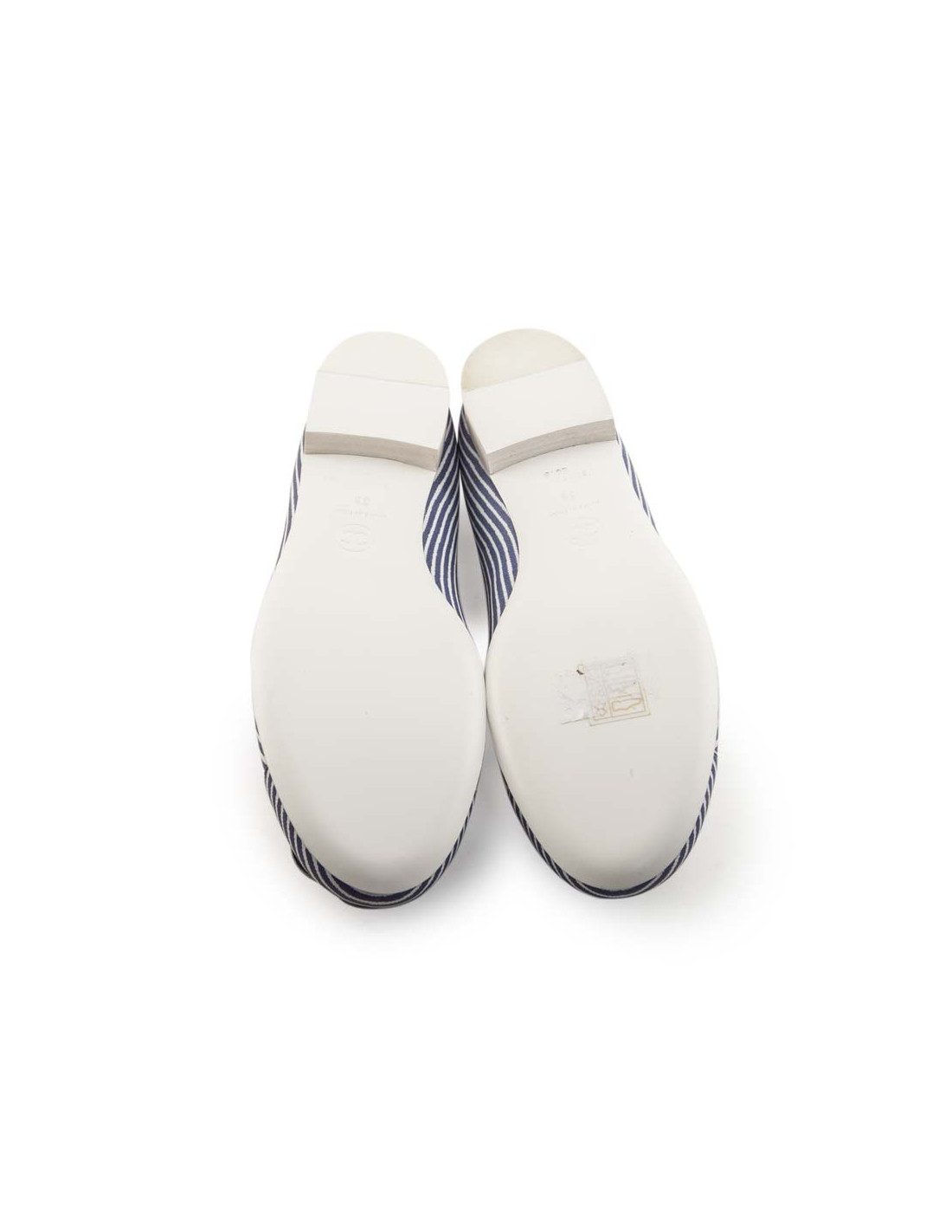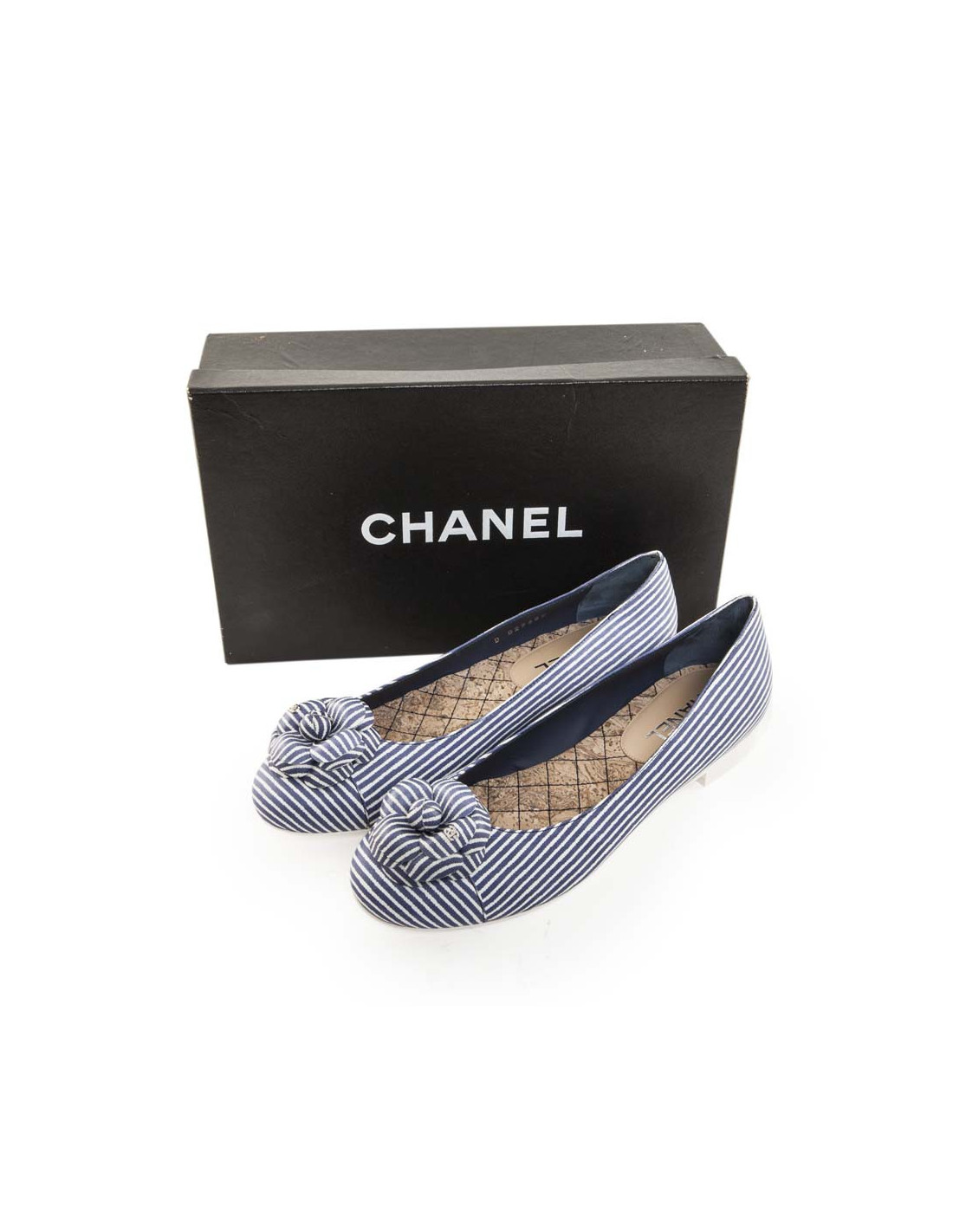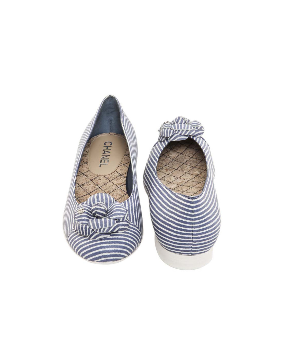 Ballerines CHANEL T 38 FR rayées bleu et blanc avec camélia