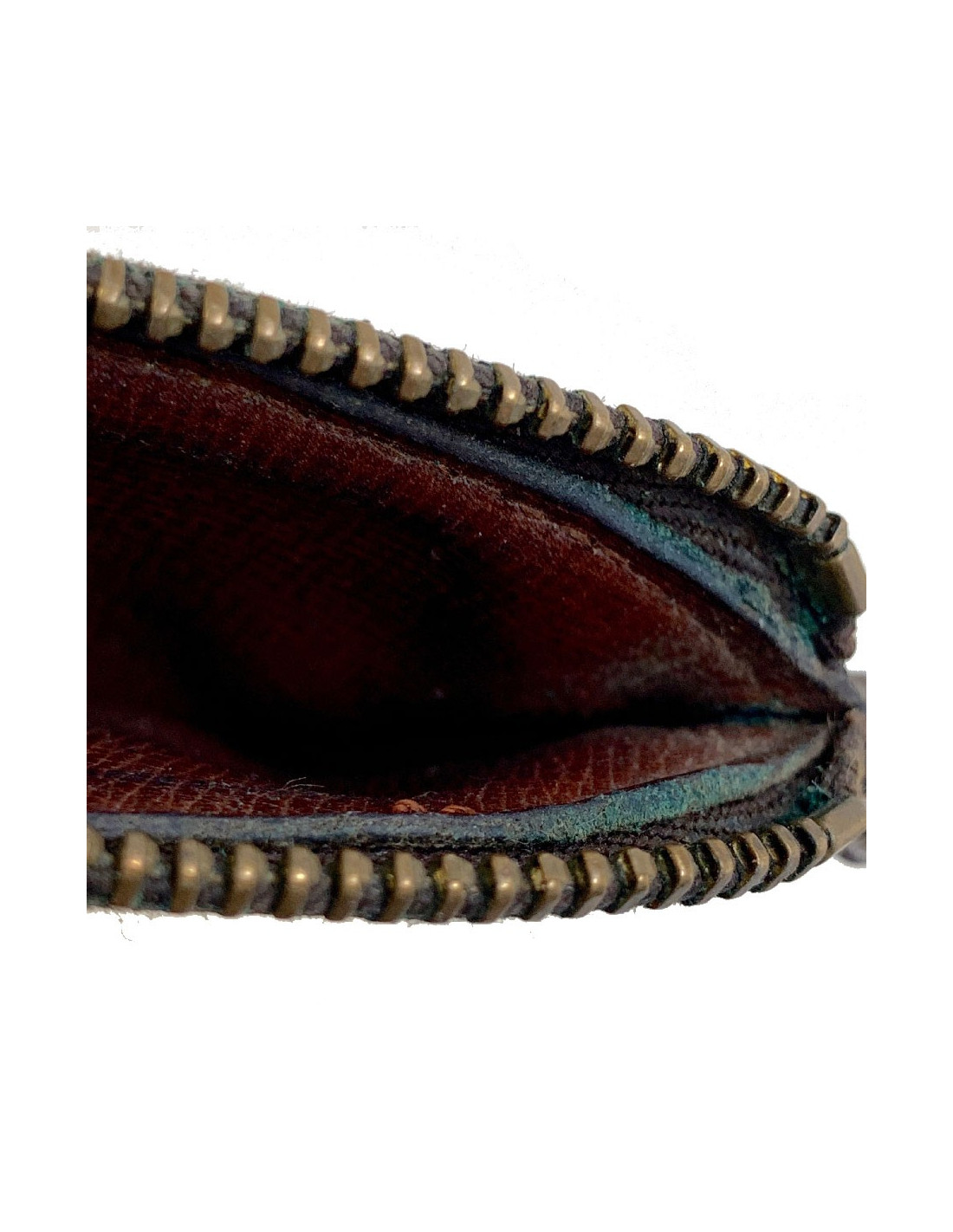 Il est en bon état. La bijouterie en métal argenté présente des micro rayures (fermoir) et est un peu noircie. Le cuir intérieur est en bon état, patiné par le temps.