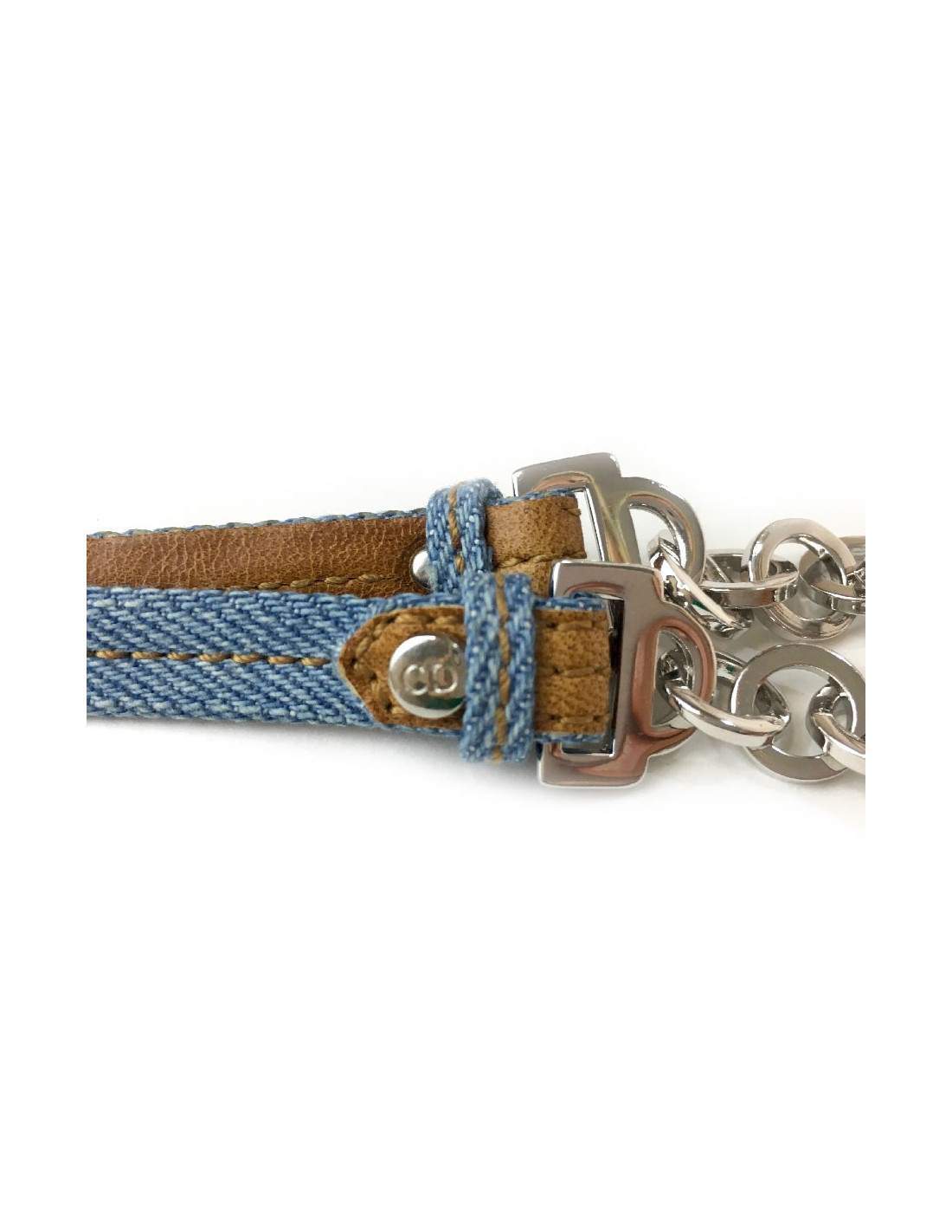 Charm Christian Dior en denim bleu et cuir naturel.