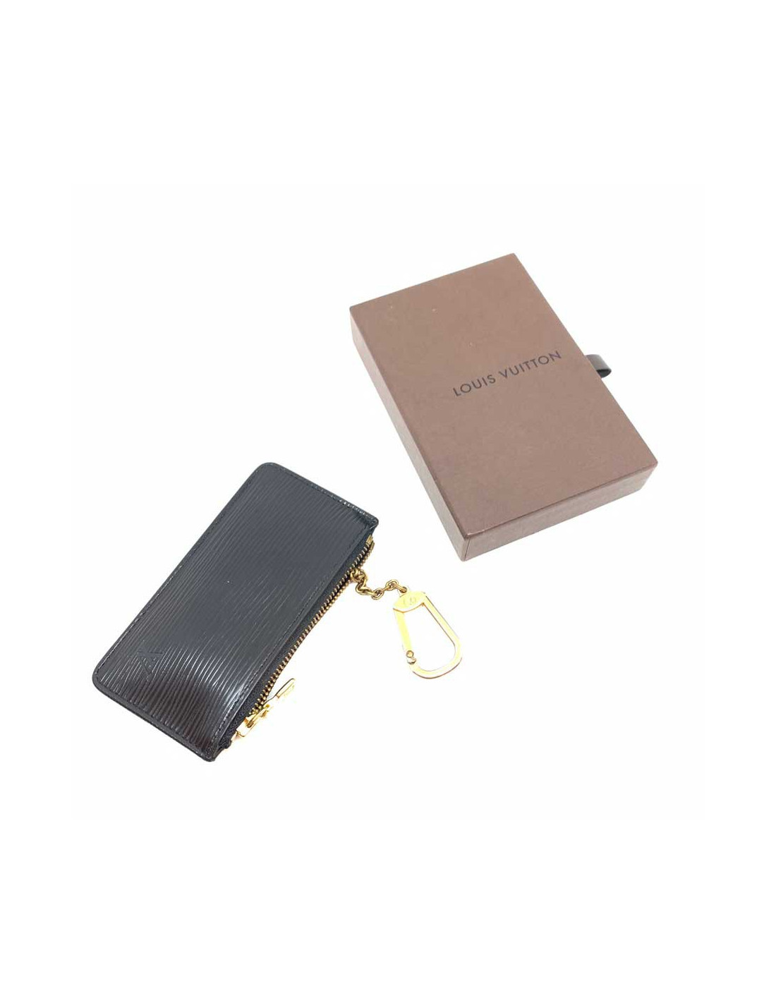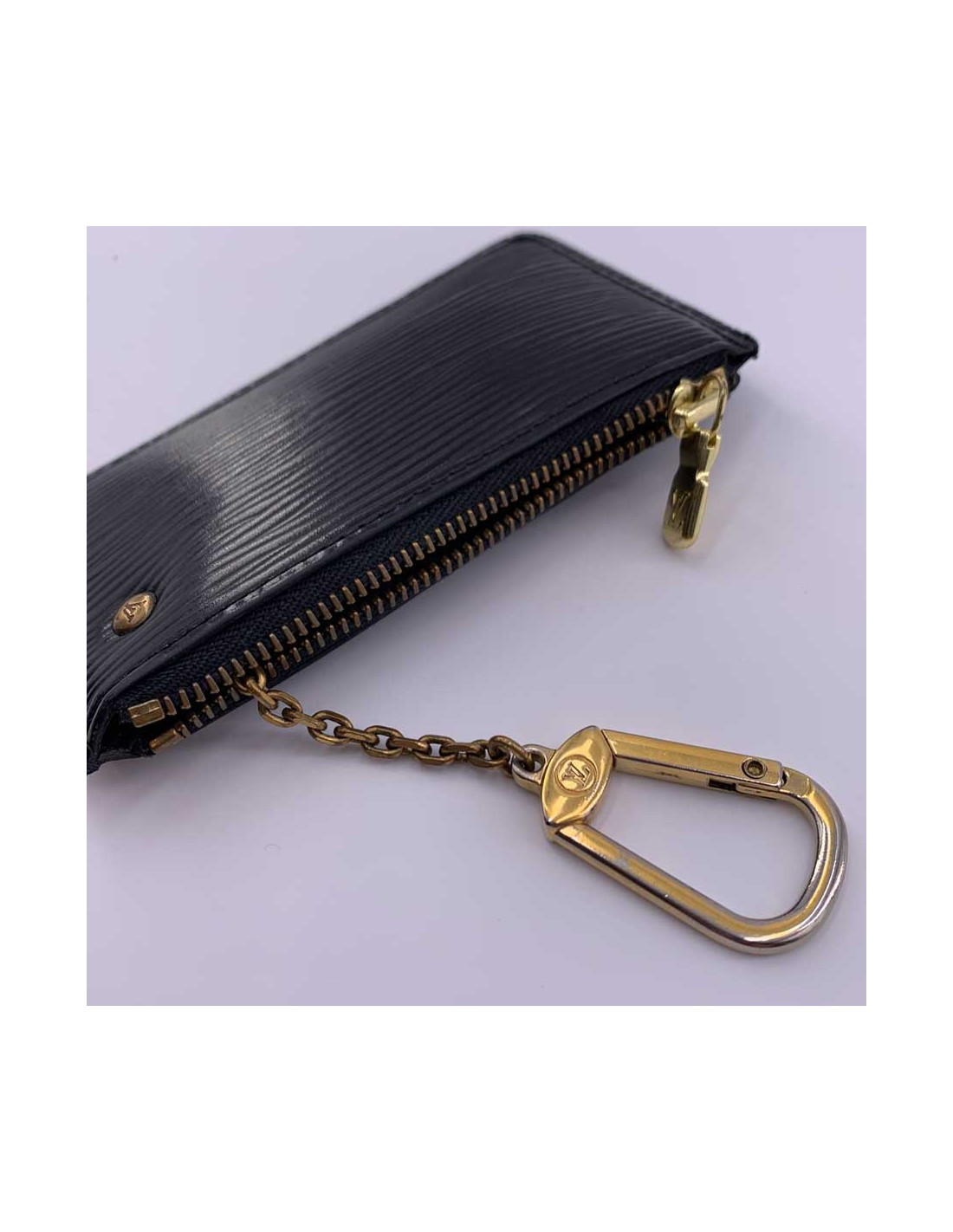 Le porte-clefs est signé de la Maison LOUIS VUITTON. Pratique, il protègera vos clefs dans sa poche en cuir épi noir. Il pourra par ailleurs vous servir de porte cartes ou de porte-monnaie.