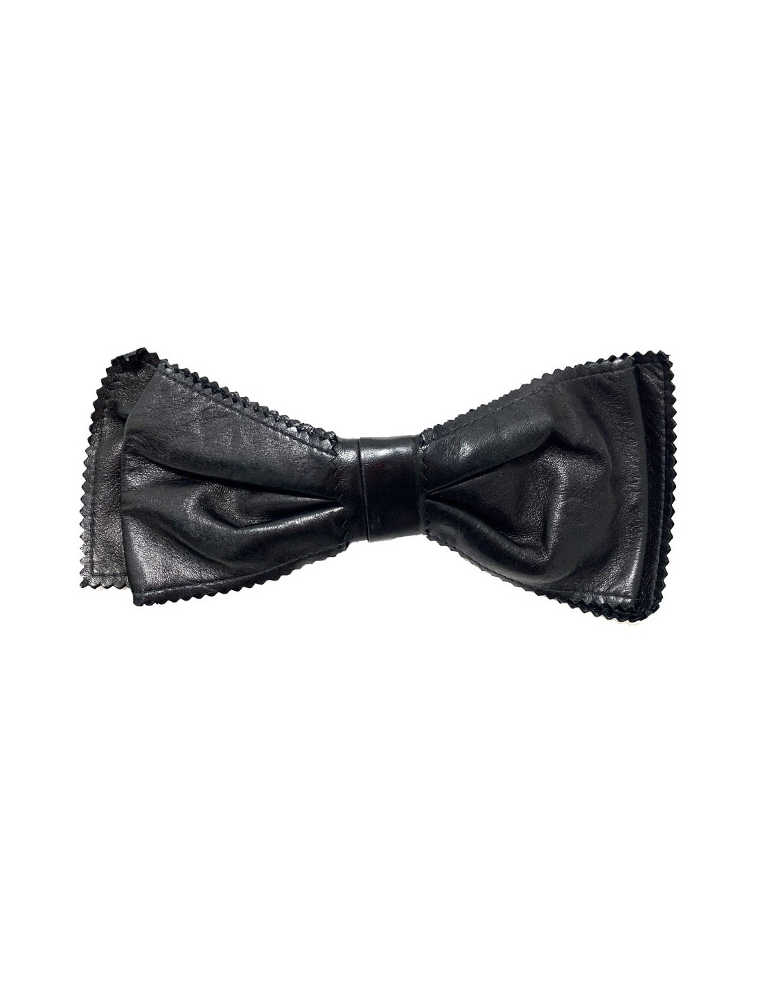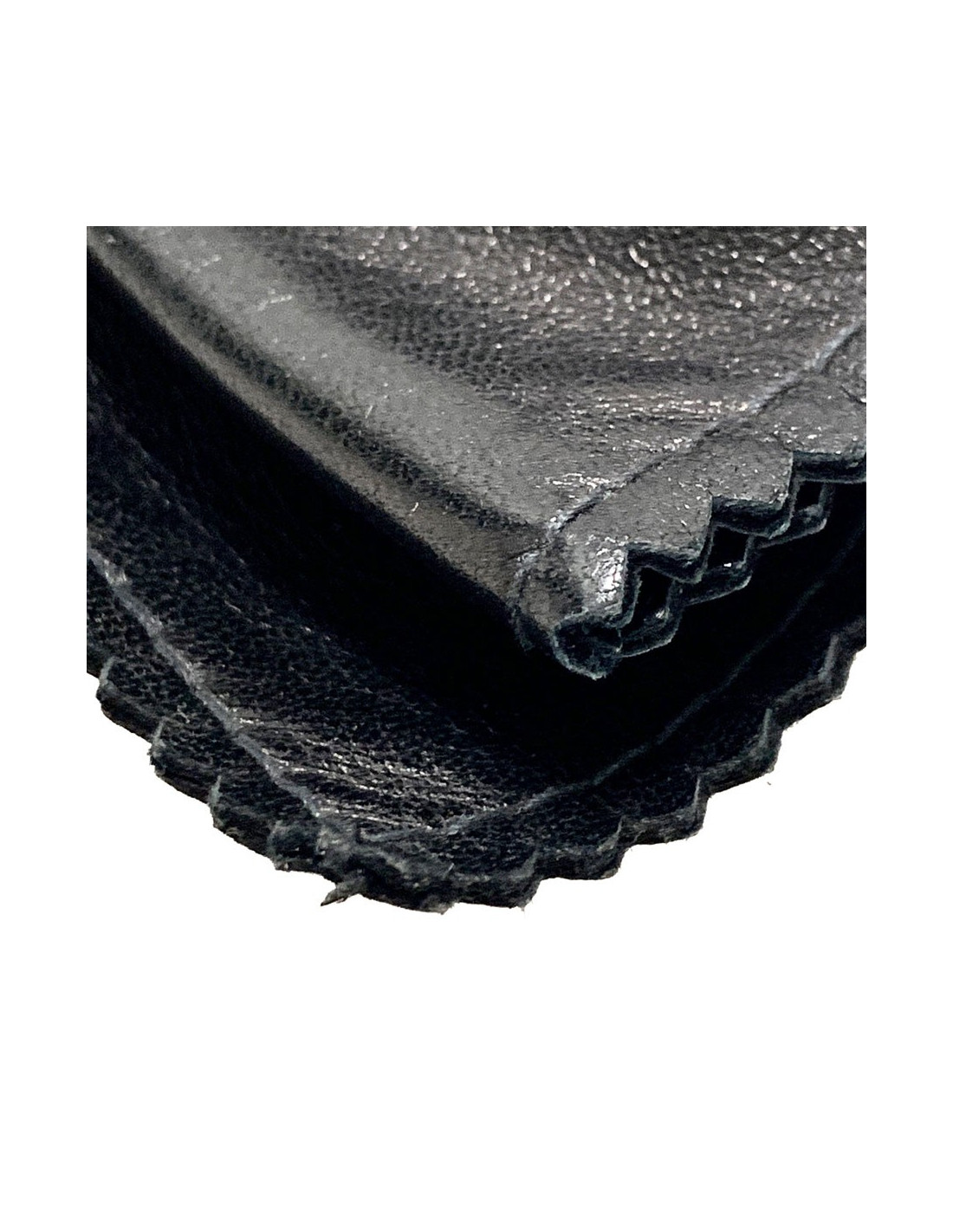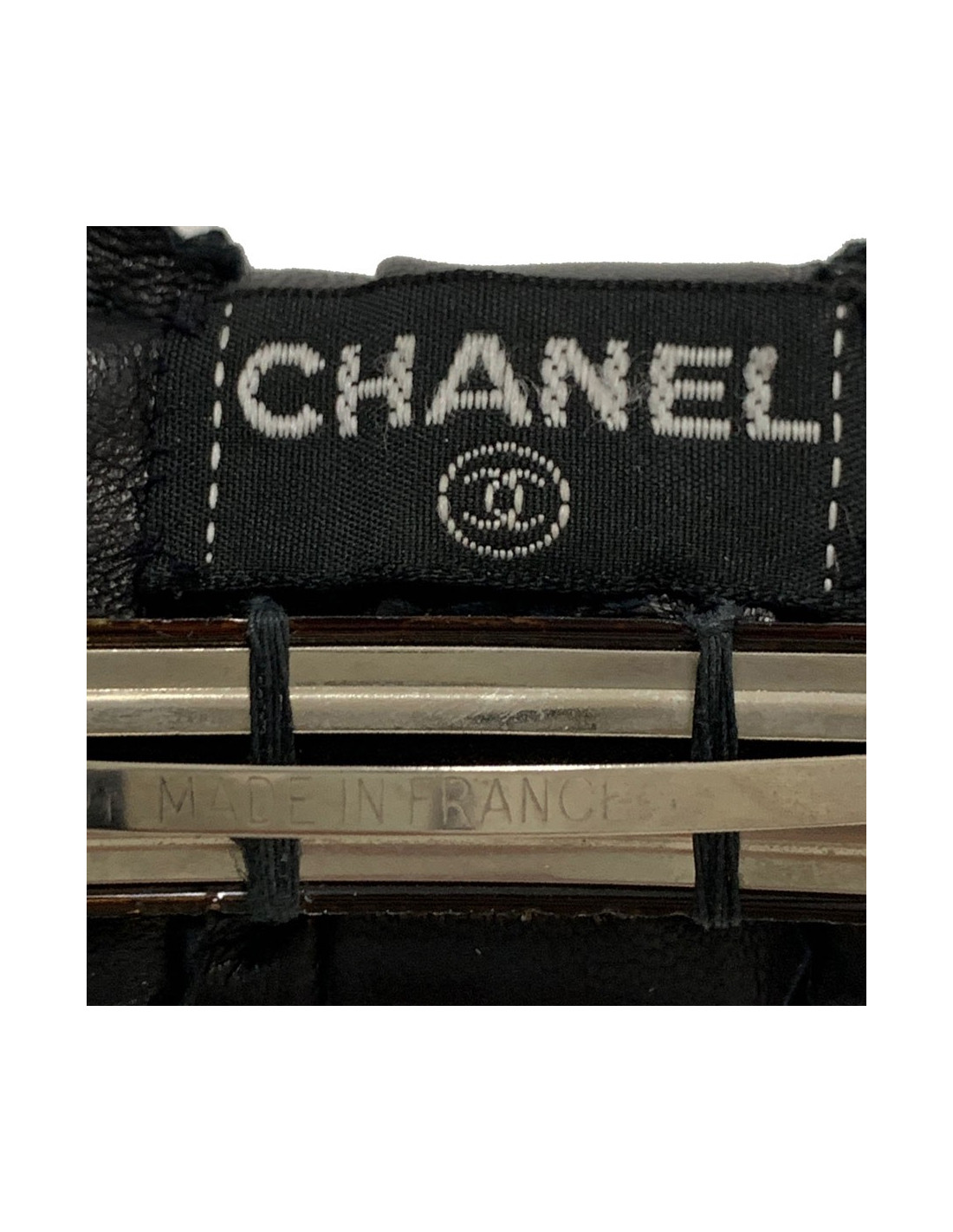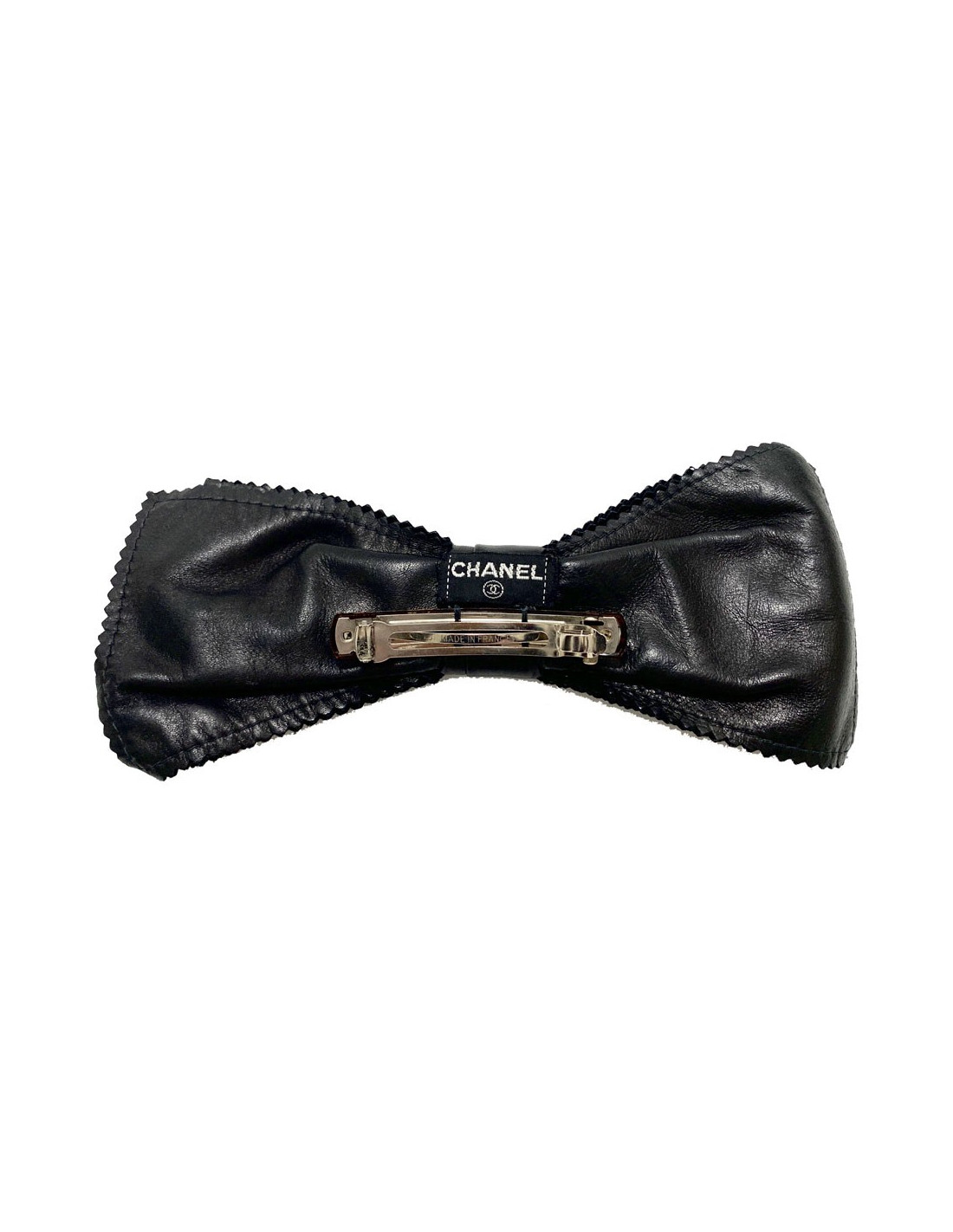 Superbe accessoire pour vos cheveux! Imposante barrette de la Maison CHANEL, entièrement en cuir lisse noir. Les bords sont dentelés. Le système de fermeture fonctionne très bien.