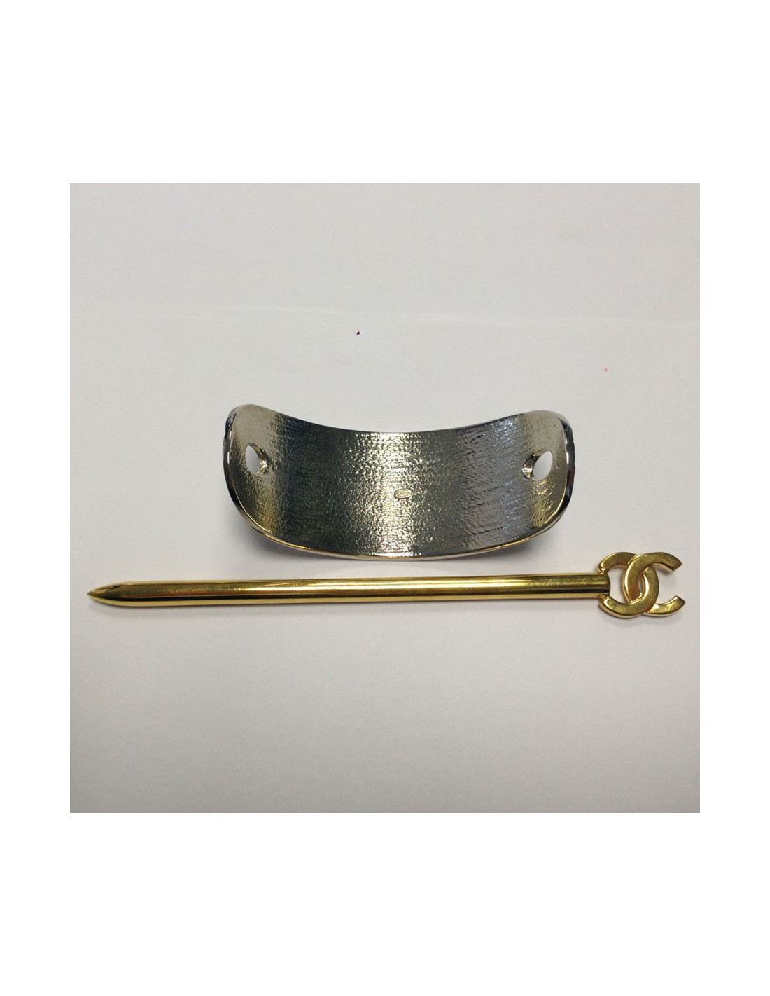 Barrette à pic CHANEL matelassée bicolore palladium et doré