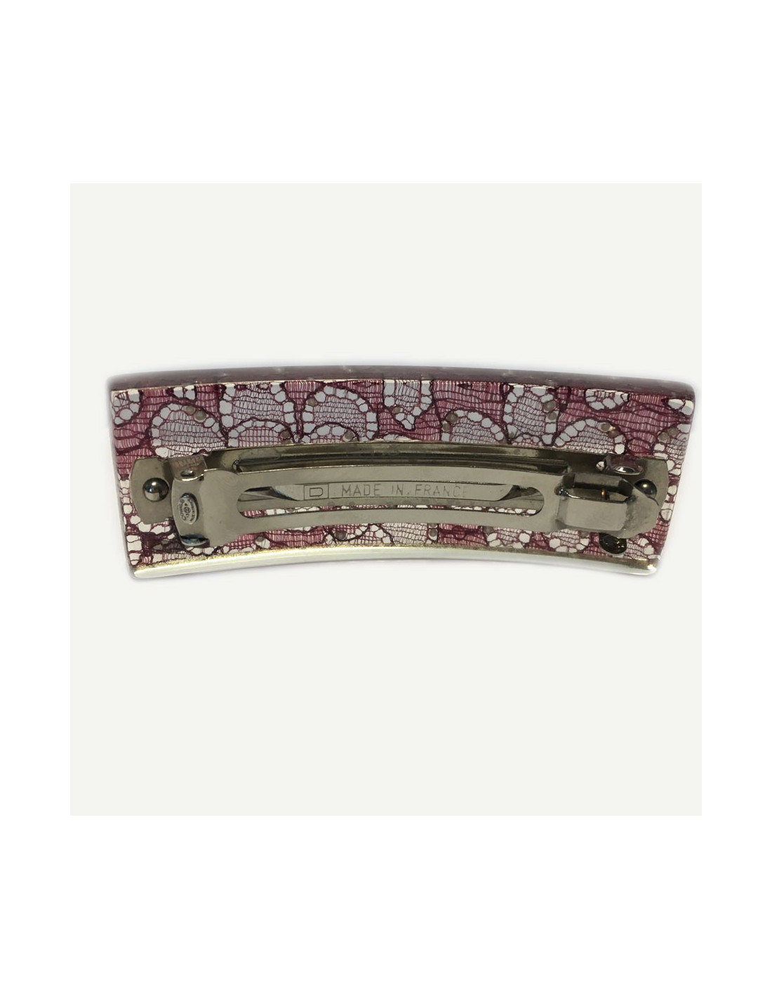 Barrette à cheveux CHANEL inclusion de dentelle rose et perles nacrées