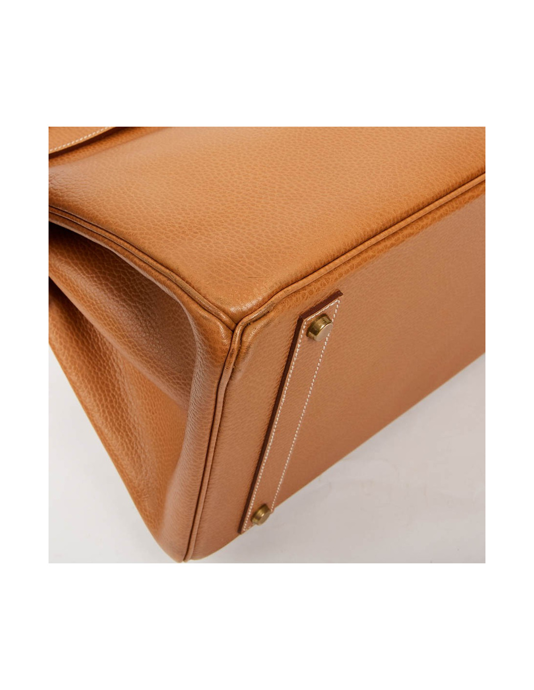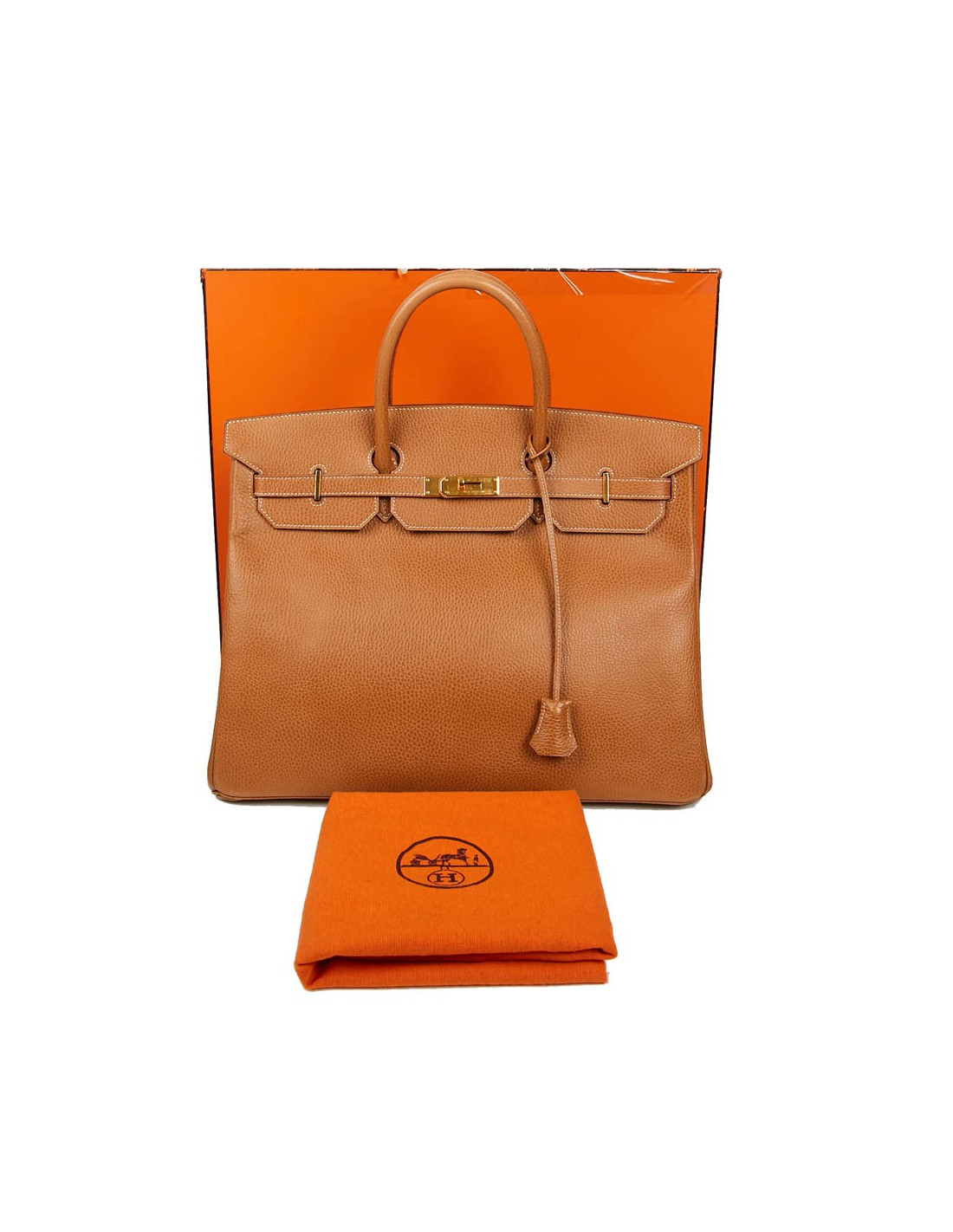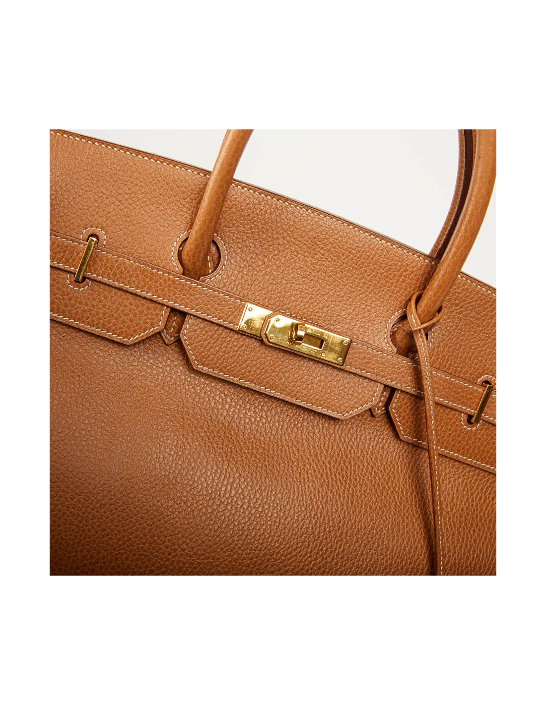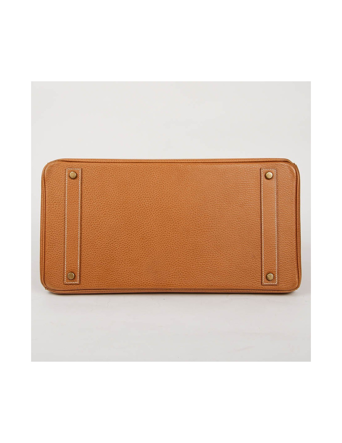 Ce sac Birkin 40 HERMES est en cuir grainé Gold avec sa bijouterie en métal doré.