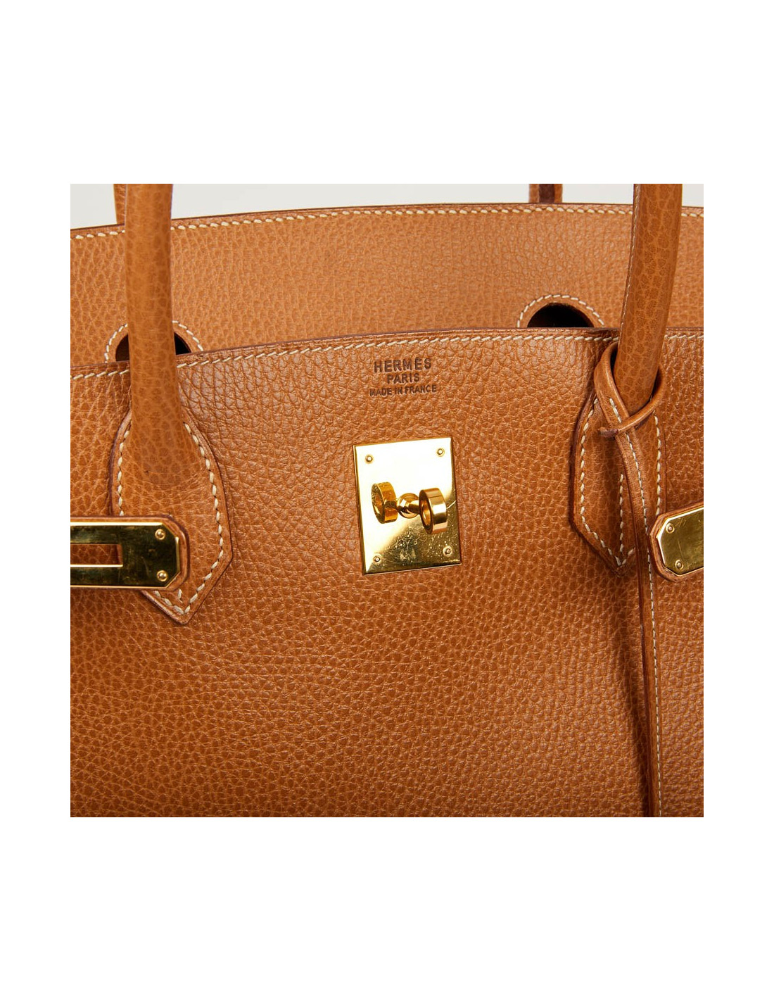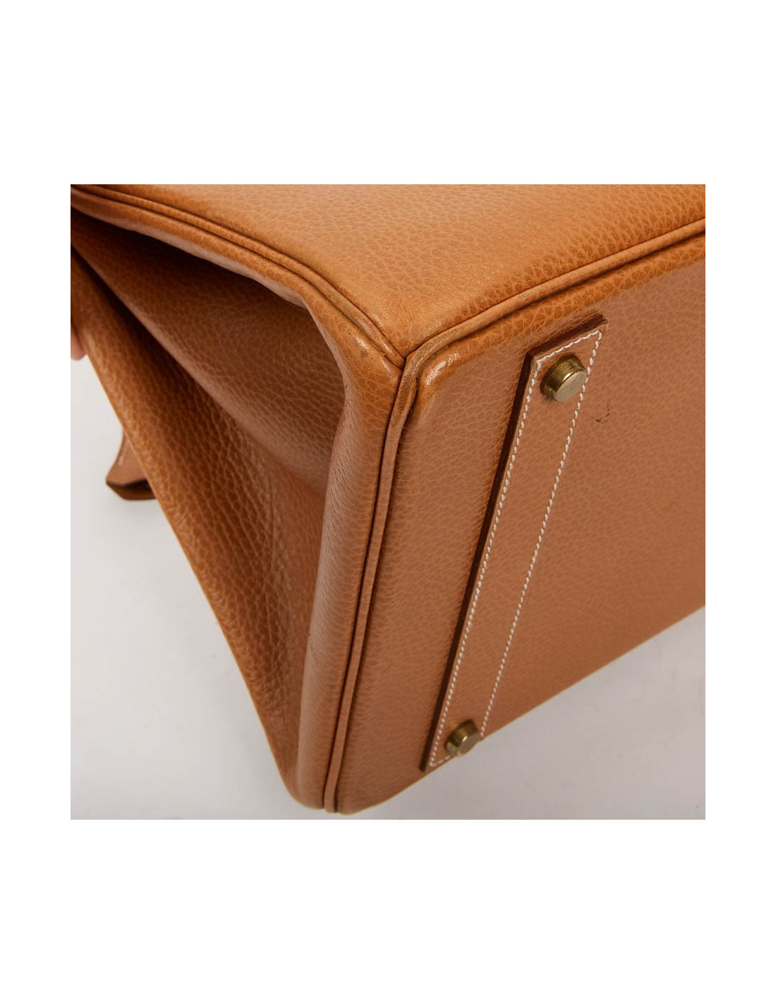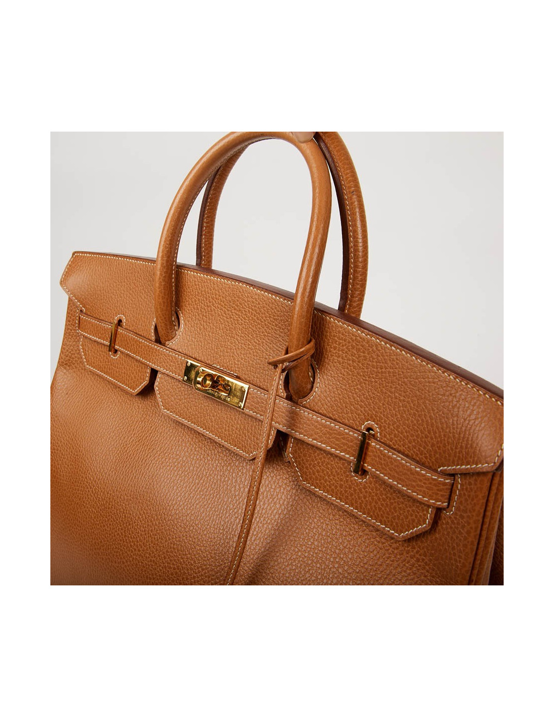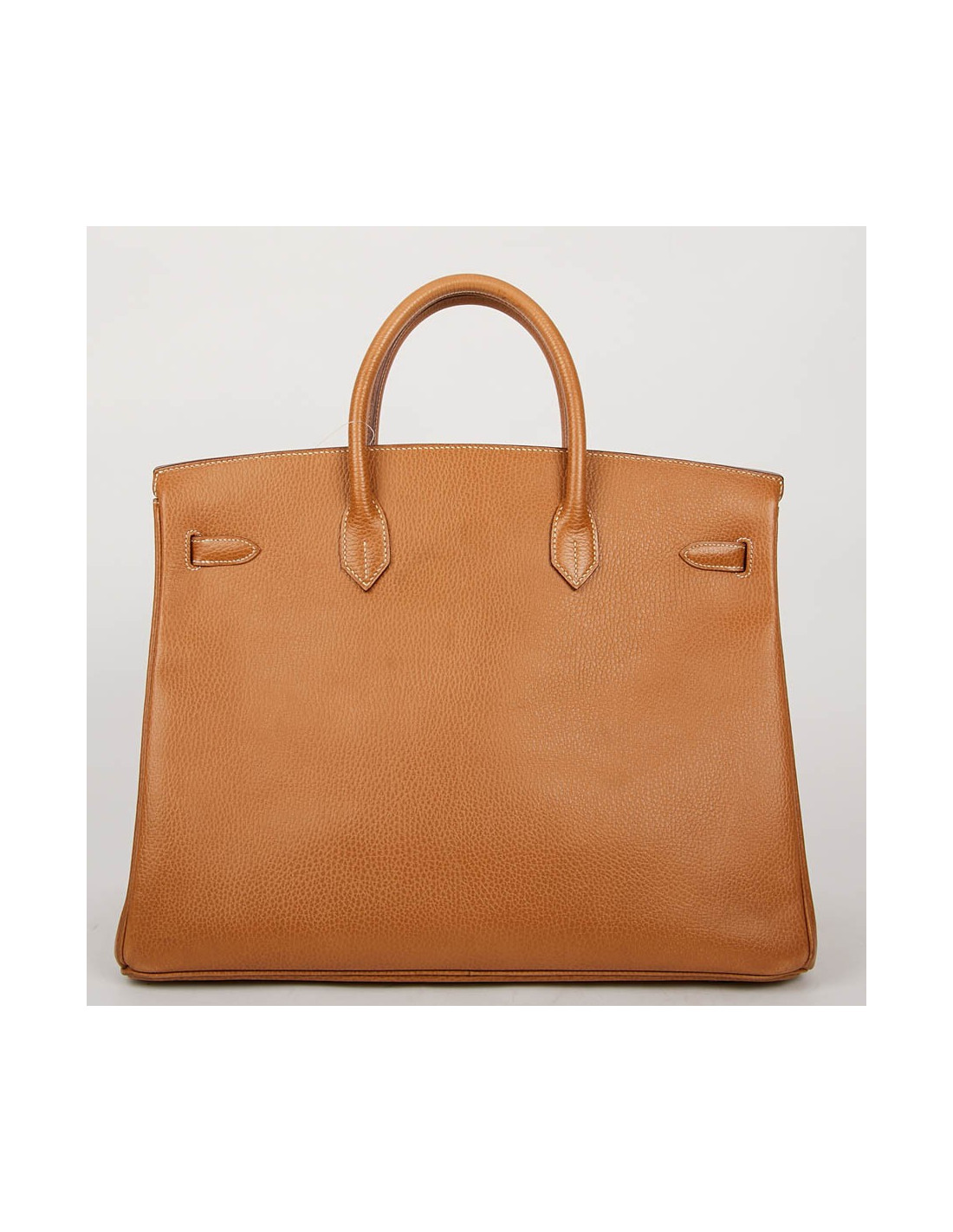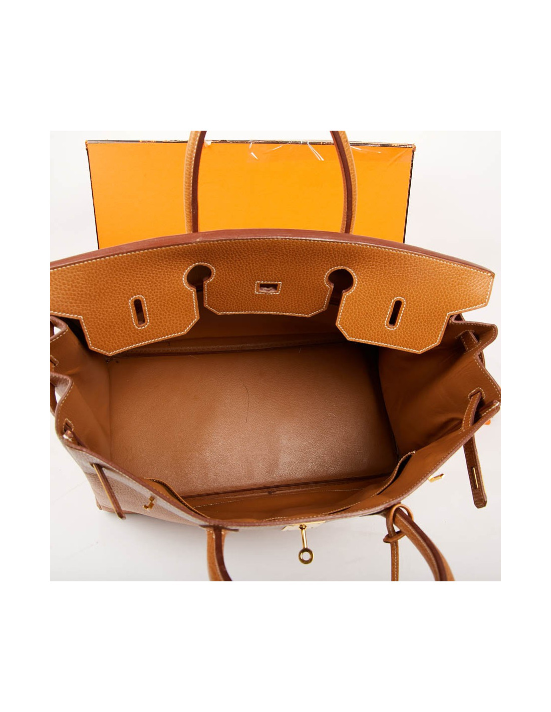 Ce sac Birkin 40 HERMES est en cuir grainé Gold avec sa bijouterie en métal doré.