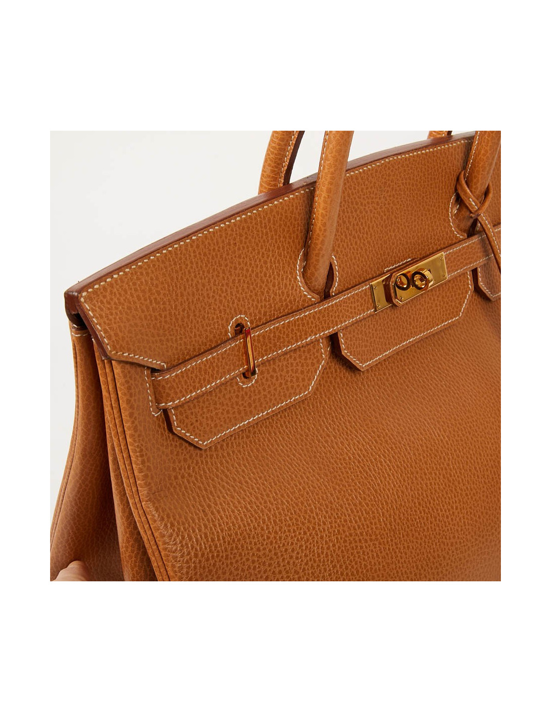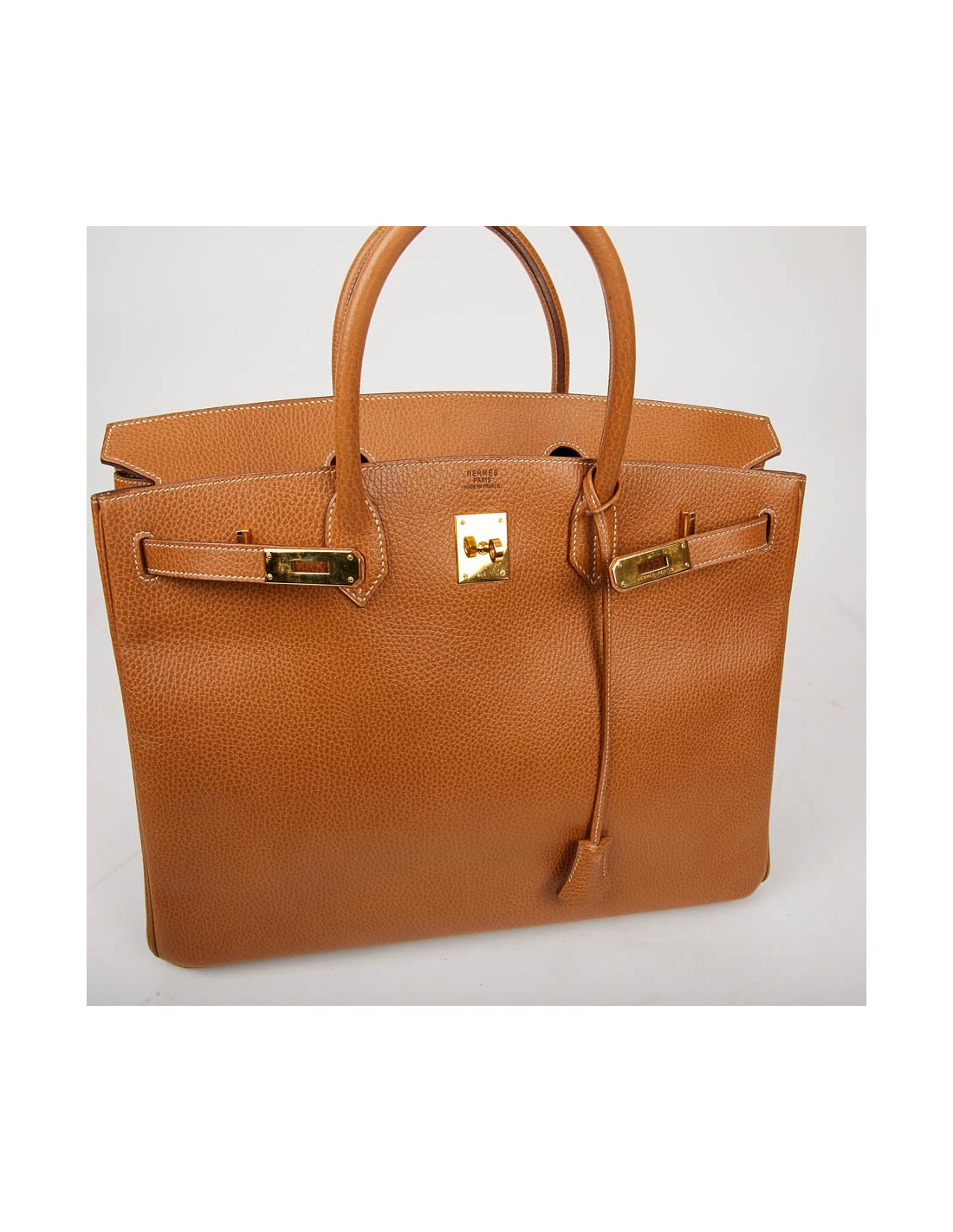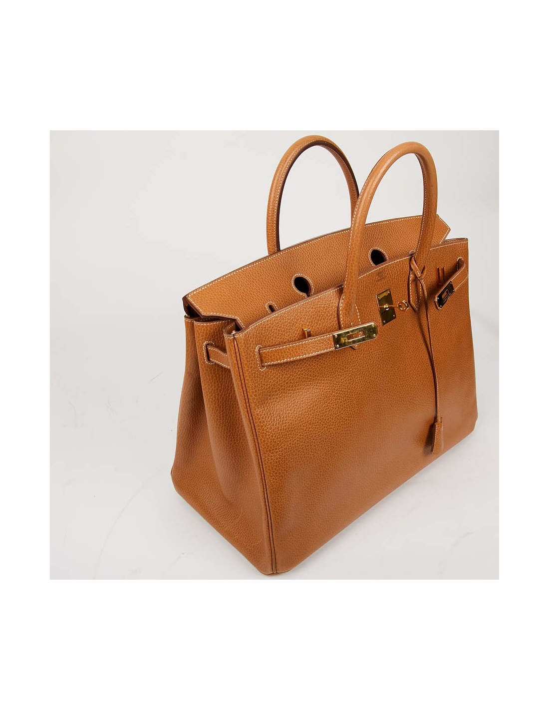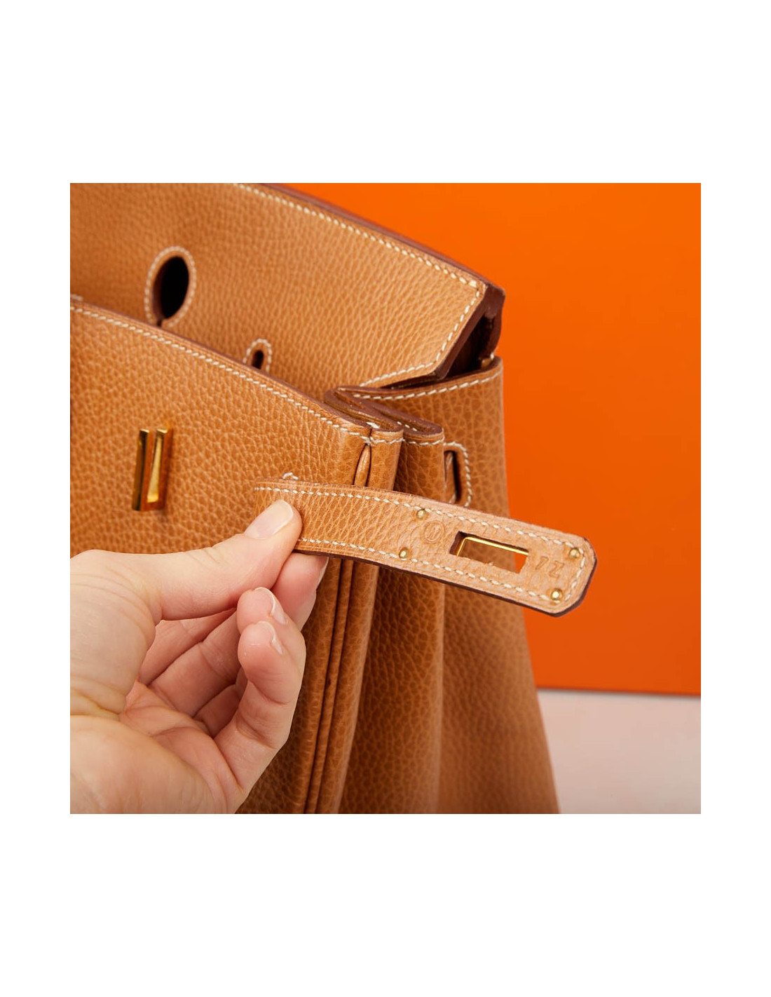 Ce sac Birkin 40 HERMES est en cuir grainé Gold avec sa bijouterie en métal doré.