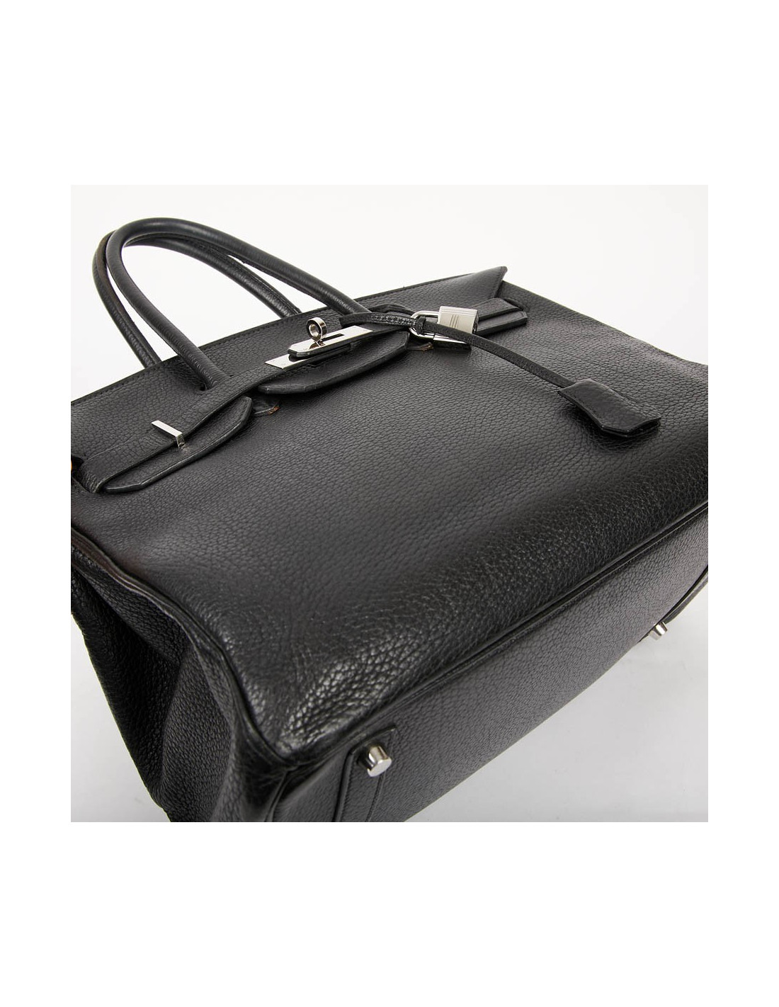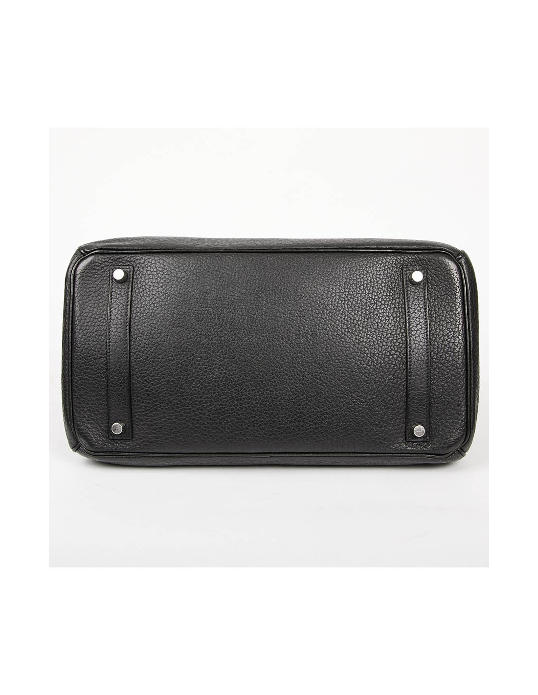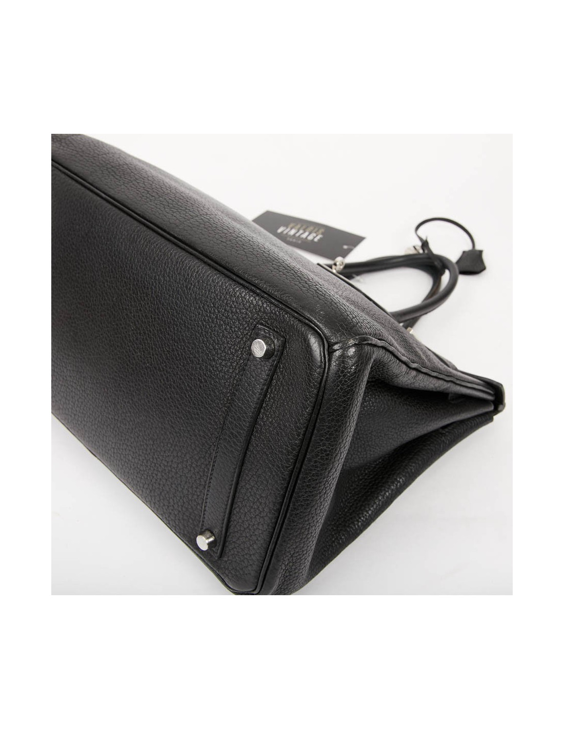 Ce sac Birkin de la Maison Hermes est en cuir Togo noir et date de 2009. C'est une taille 35. La bijouterie est en métal argenté et sa tirette, clochette, clés (2) et cadenas sont présent. Il est en très bon état.