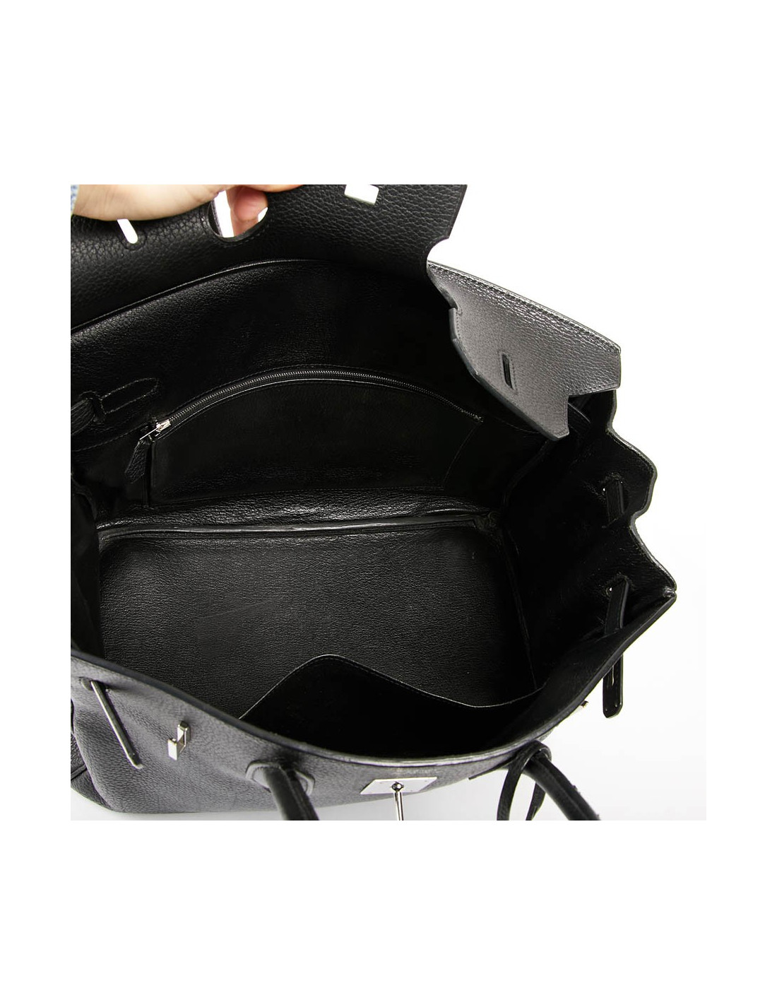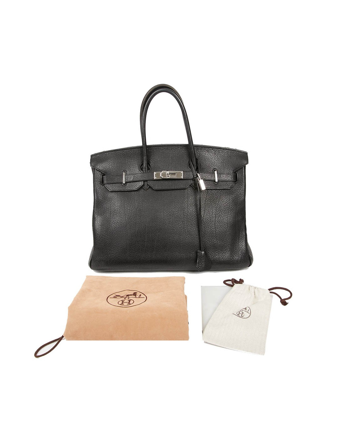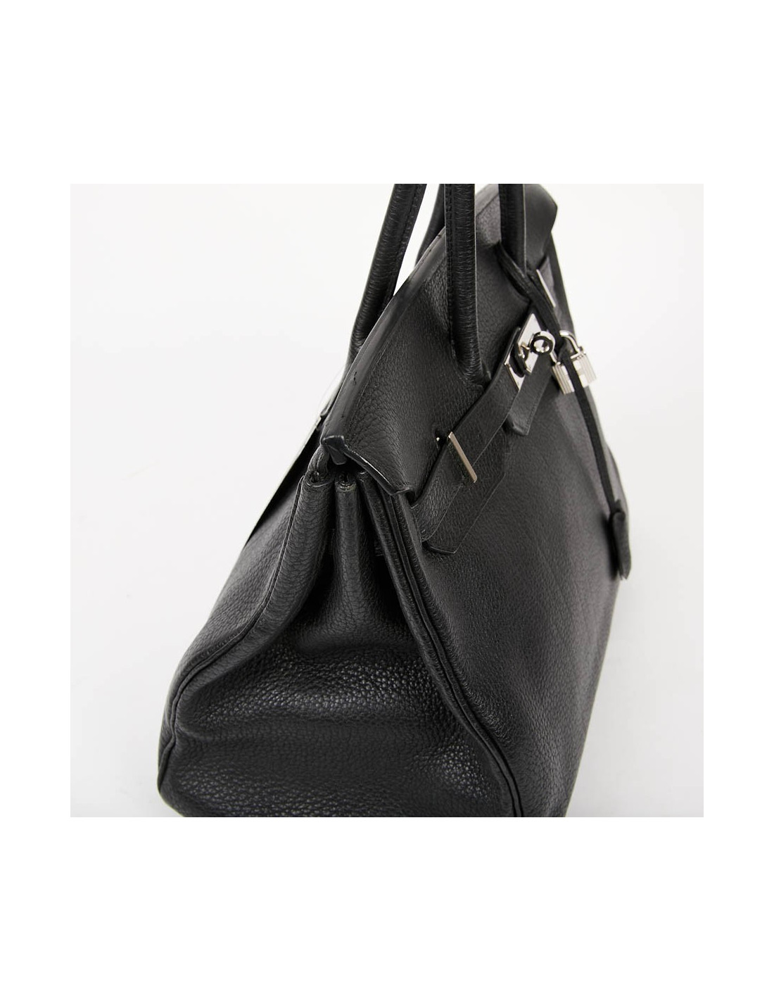Ce sac Birkin de la Maison Hermes est en cuir Togo noir et date de 2009. C'est une taille 35. La bijouterie est en métal argenté et sa tirette, clochette, clés (2) et cadenas sont présent. Il est en très bon état.