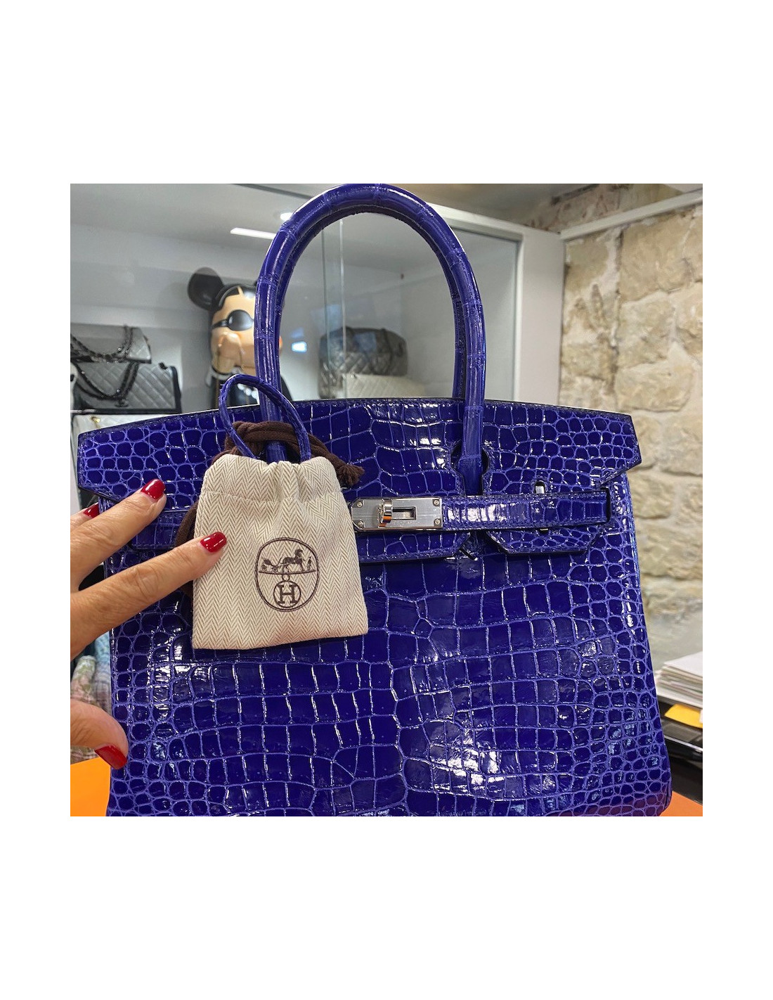 Sac Birkin 30 crocodile bleu électrique