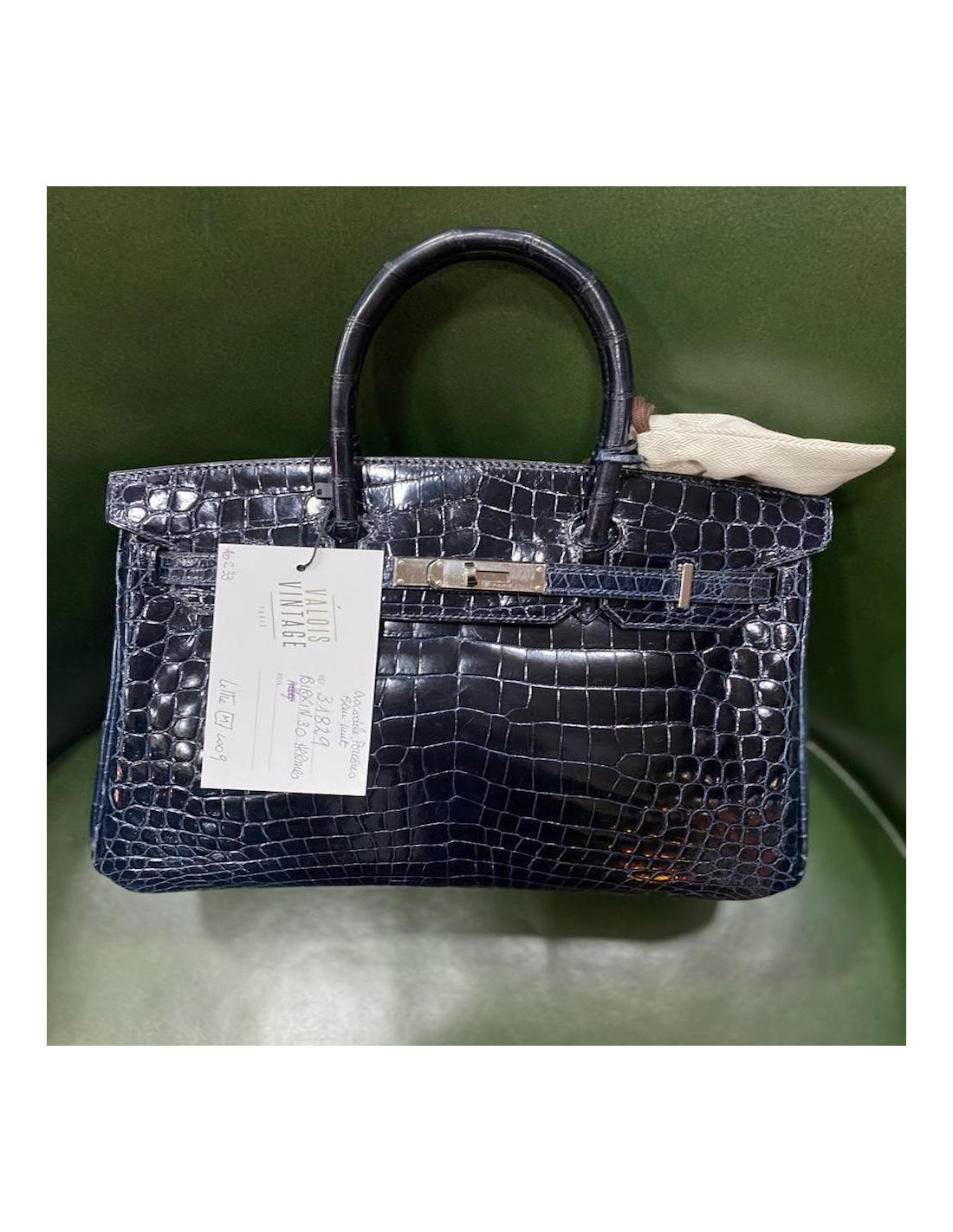 Derniers articles en stock BIRKIN HERMES Birkin 30 HERMES epsom vert HERMES 35201 29 000,00 € Birkin 30 HERMES vert criquet Condition : très bon état (porté 1 fois), plastiques toujours presents sur toute la bijouteriePays de fabrication : FranceCollection : Birkin 30Matière : cuir grainé EpsomIntérieur : cuir grainé EpsomCouleur : vert criquetDimensions : 30 x 21 x 16 cmStamp : lettre UAnnée : 2022Bijouterie : métal doréDétails : plastique... Ajouter au panier