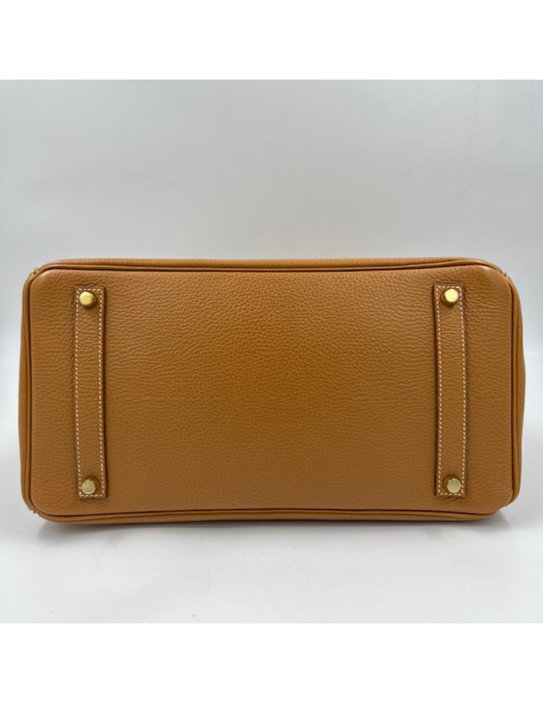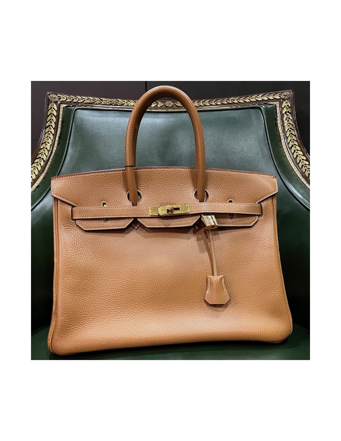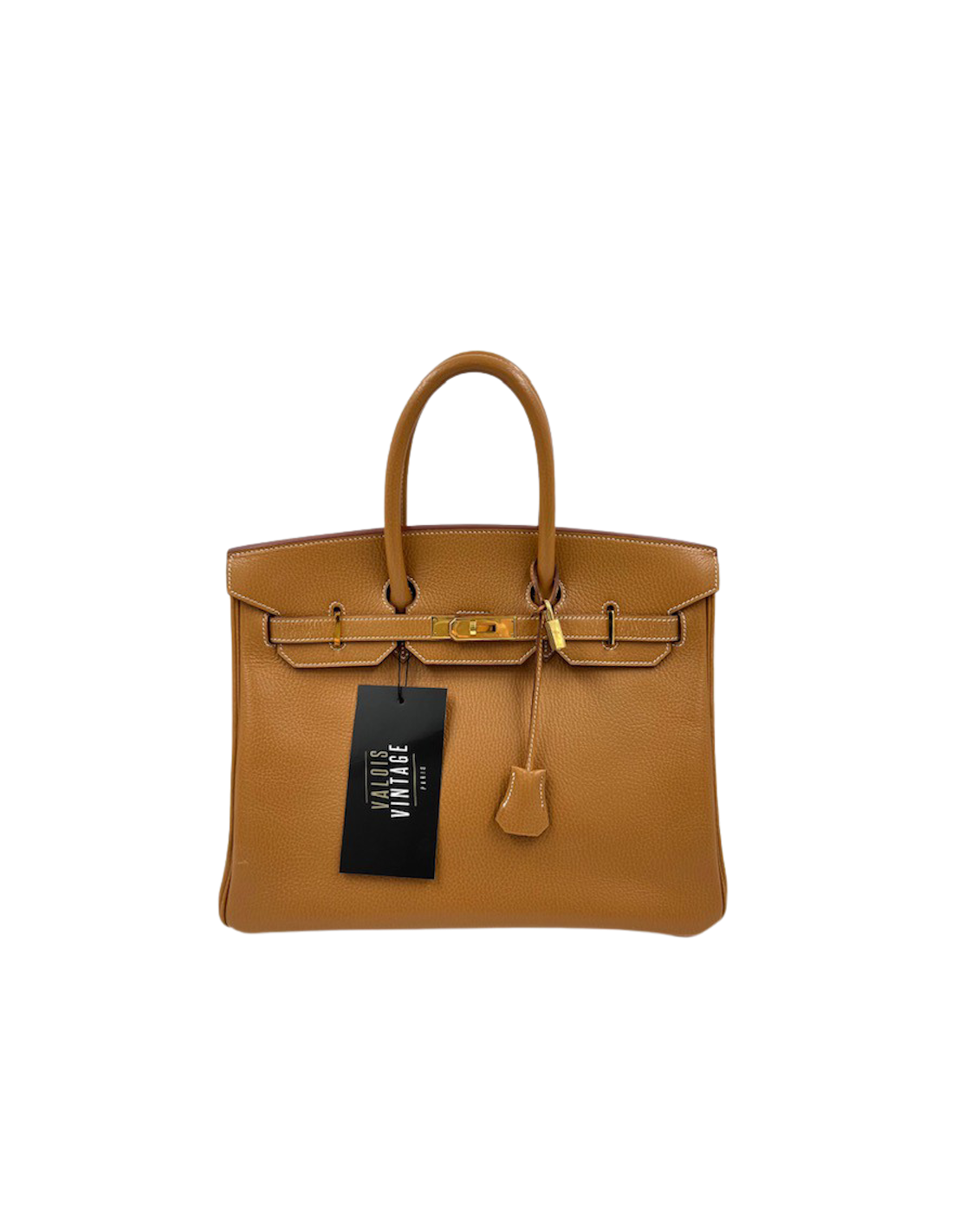 Ce Birkin 35 est en cuir Vache Ardennes Gold. La bijouterie est en métal dorée.