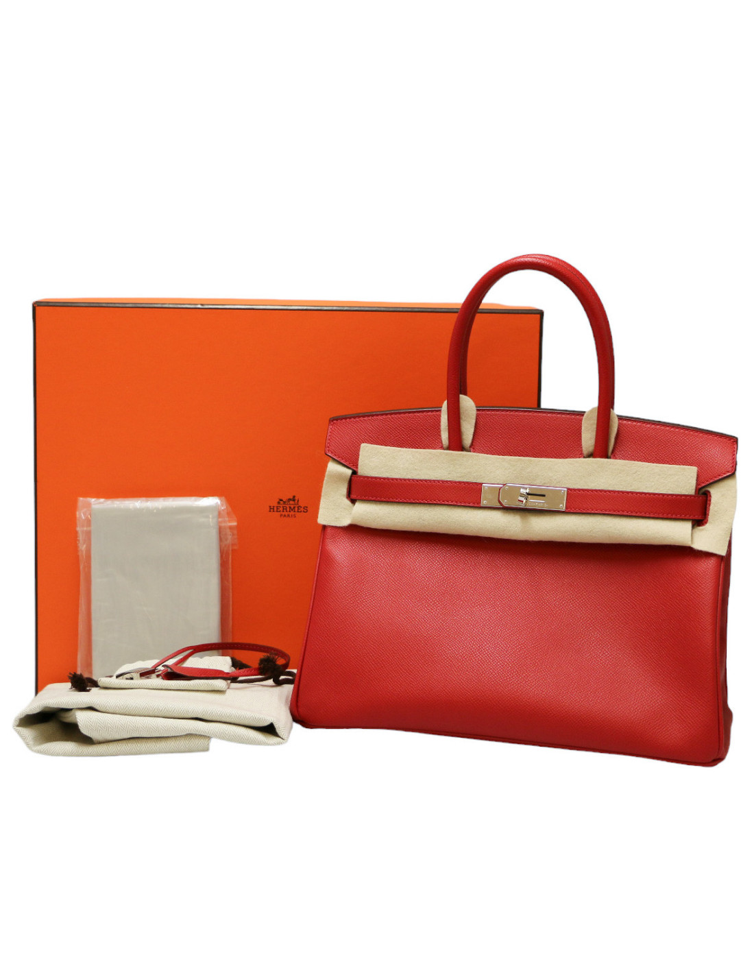 Sac HERMES 30 Birkin veau Epsom rouge casaque