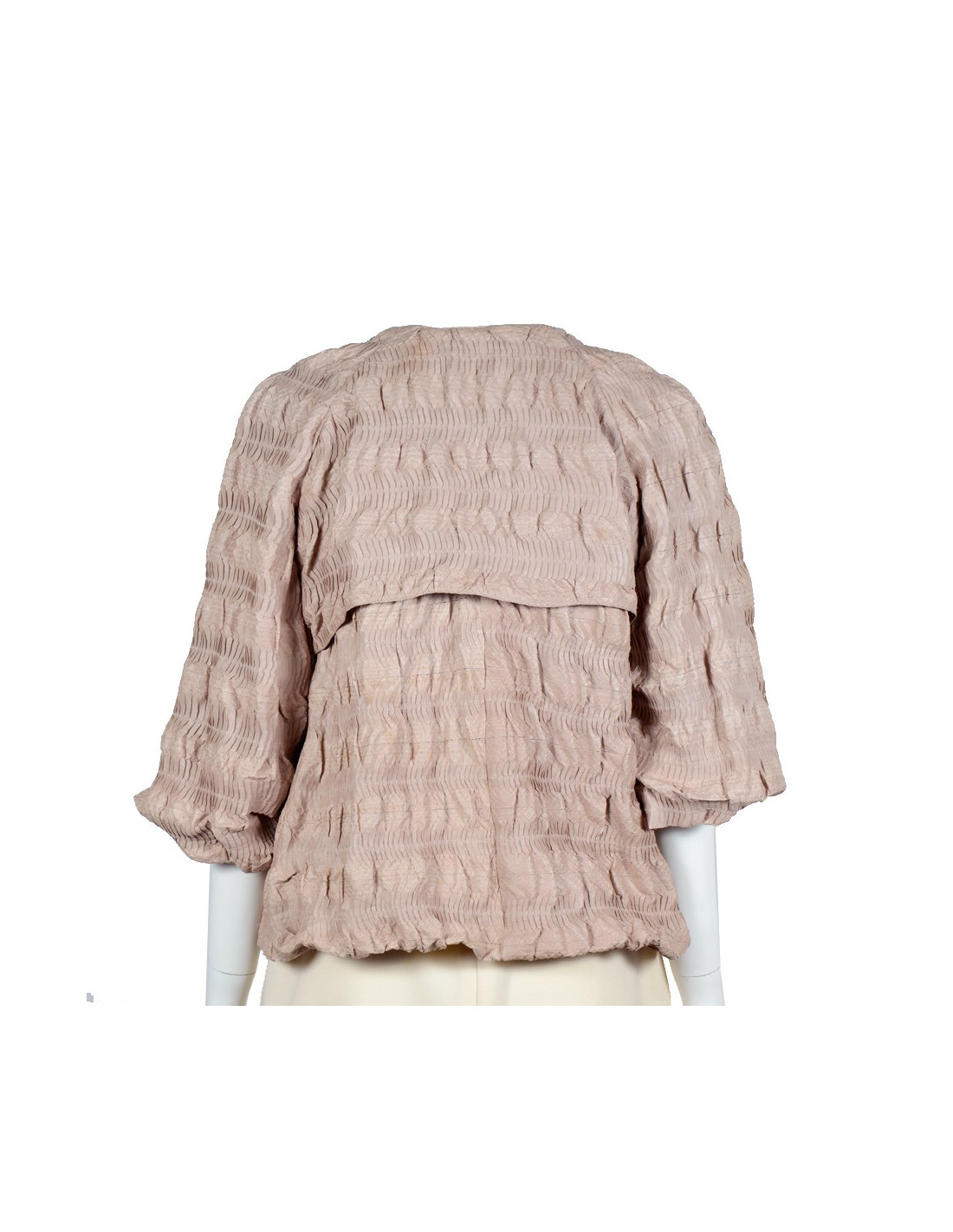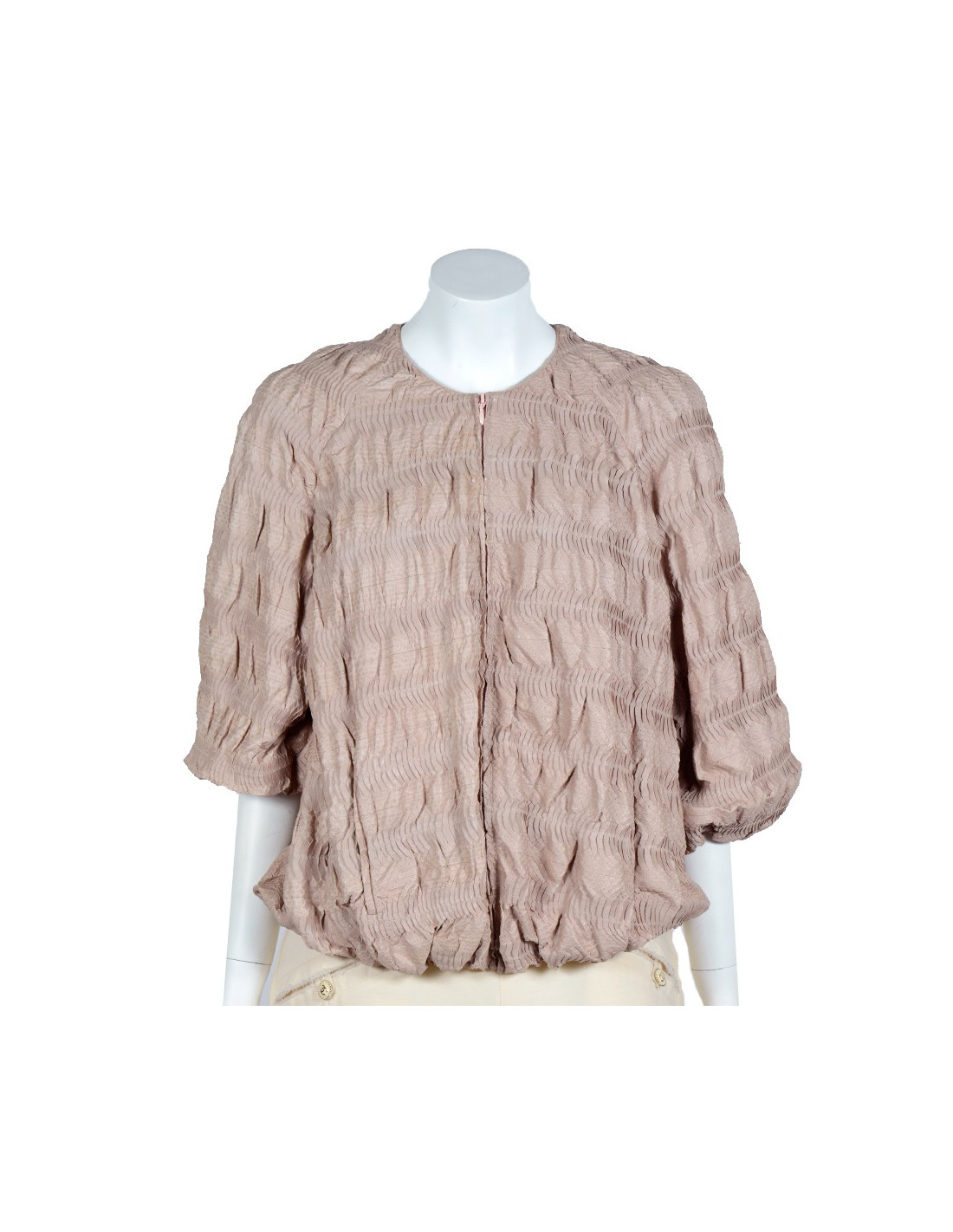 Ravissante veste Maurizio Pecoraro, en serpent rose poudré en taille 42IT, manches raglans trois quarts bouffantes. Doublure en polyester rose et fermée par une fermeture éclair.