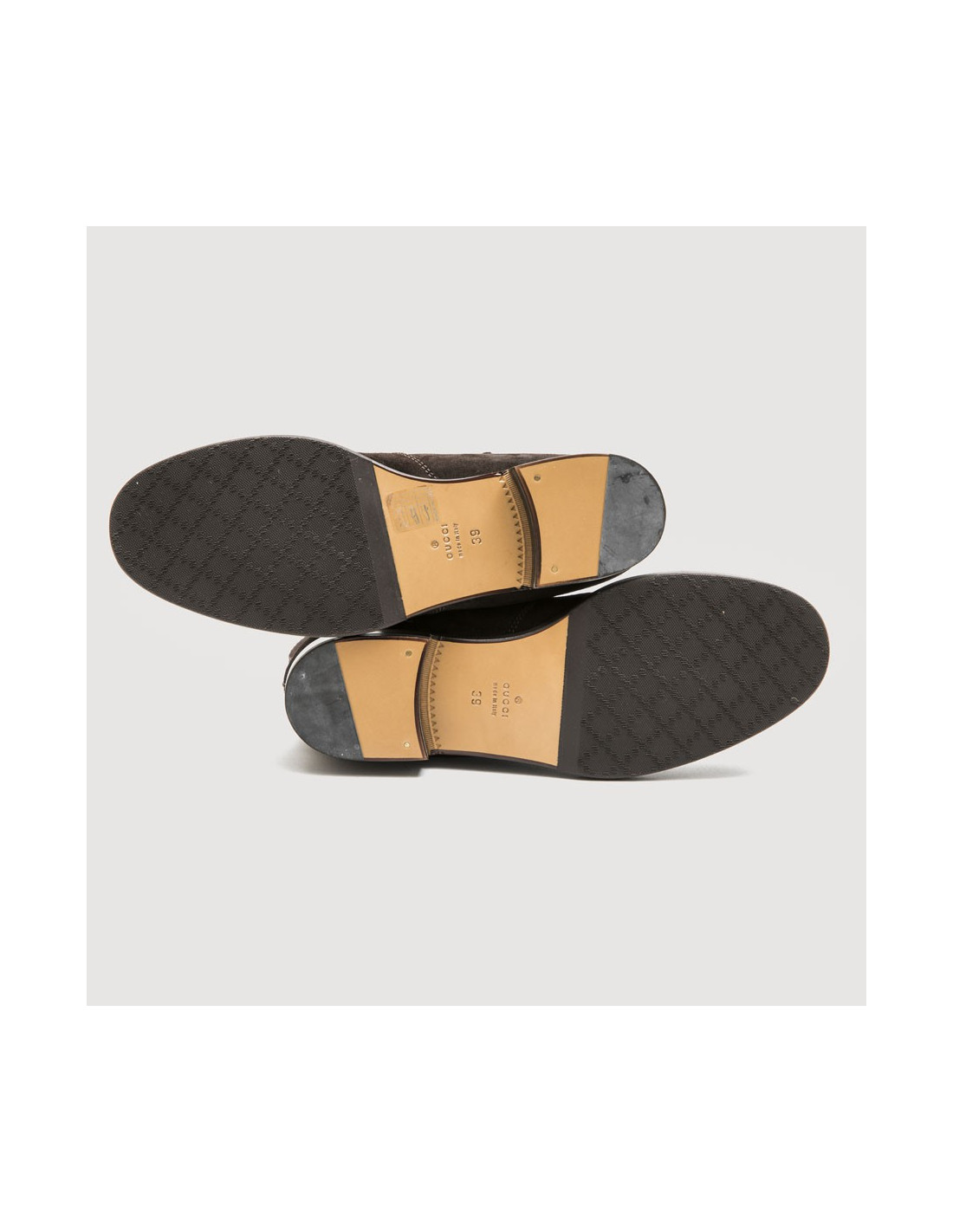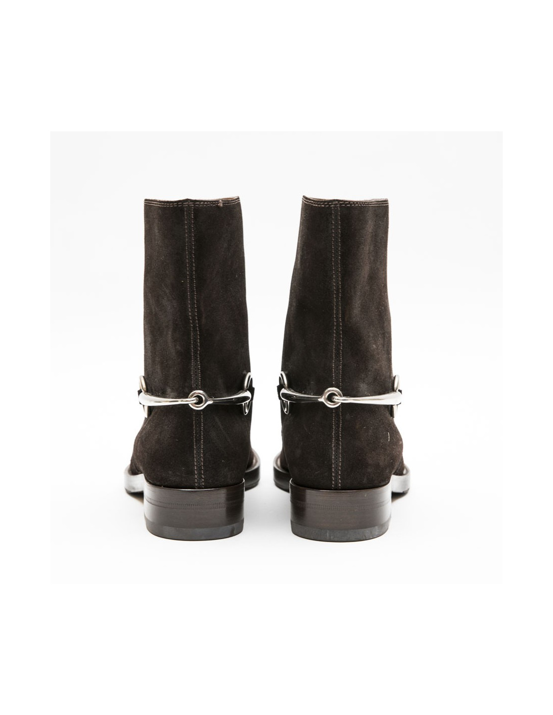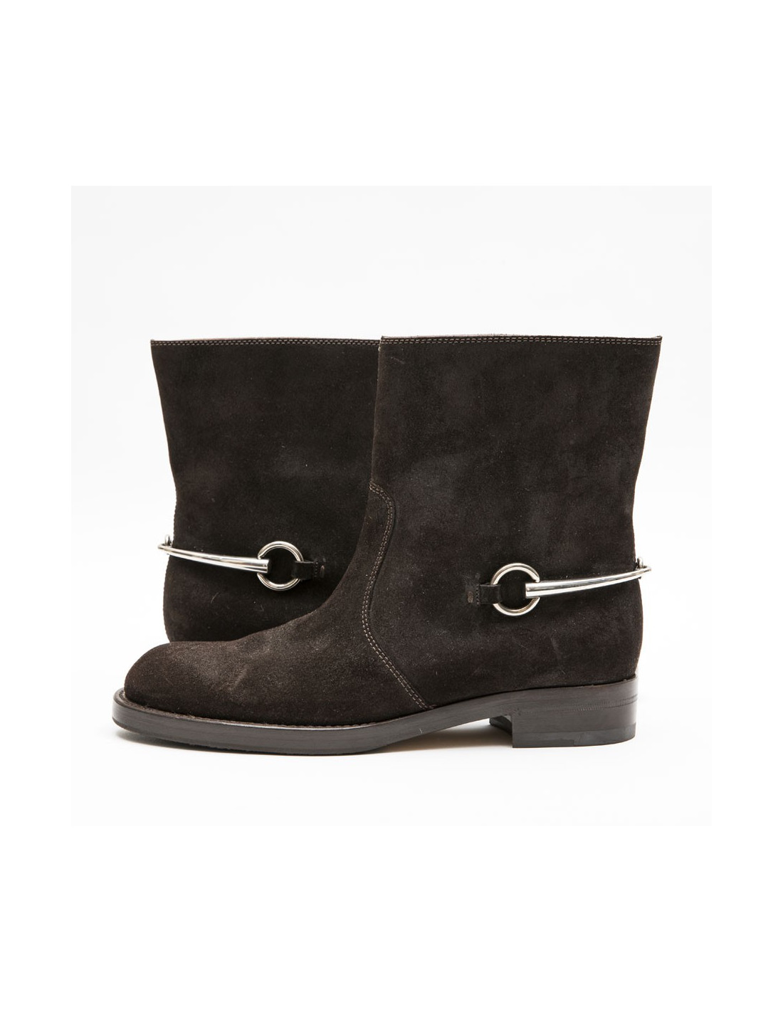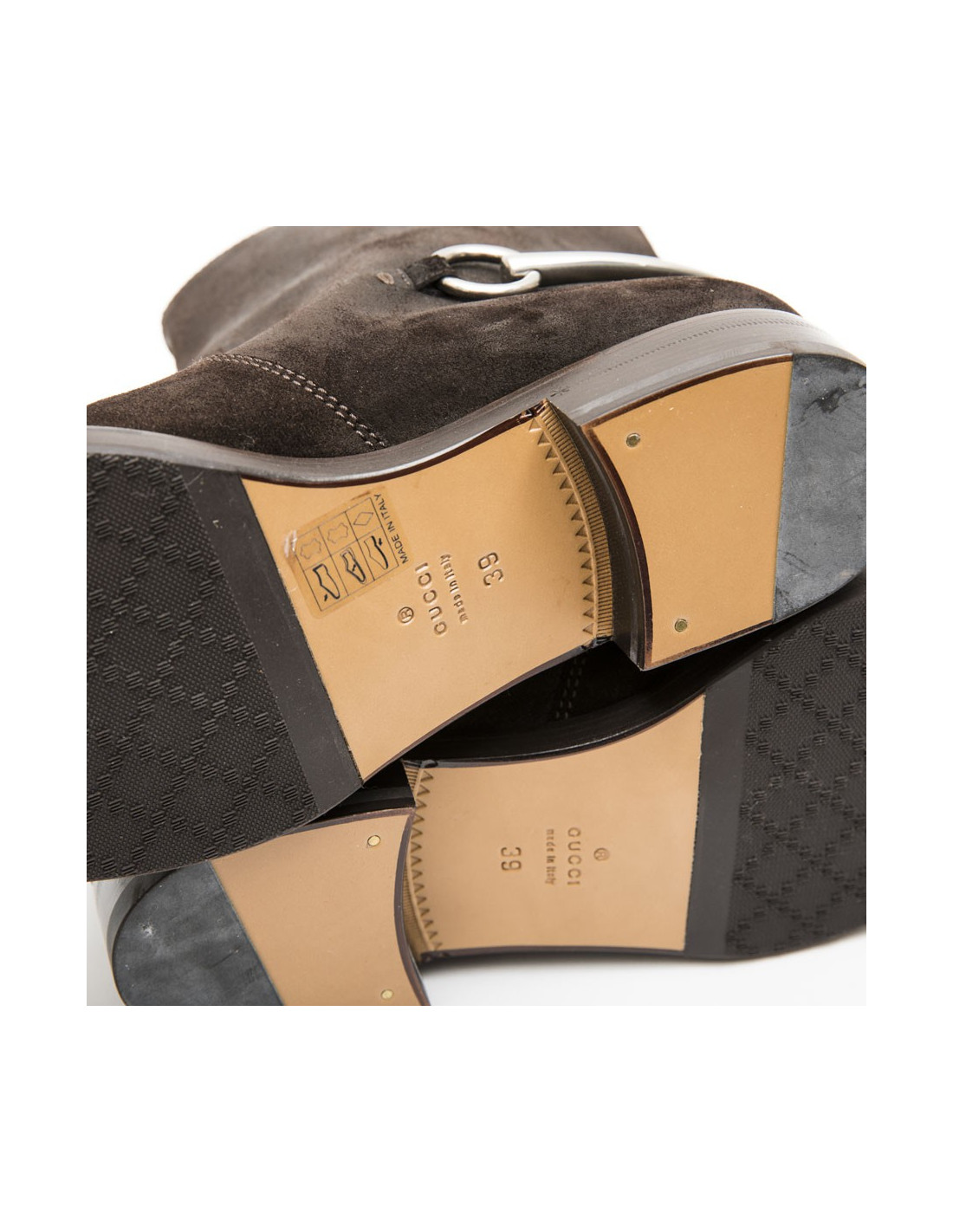 Boots T 39 GUCCI en daim marron et mors argent palladié