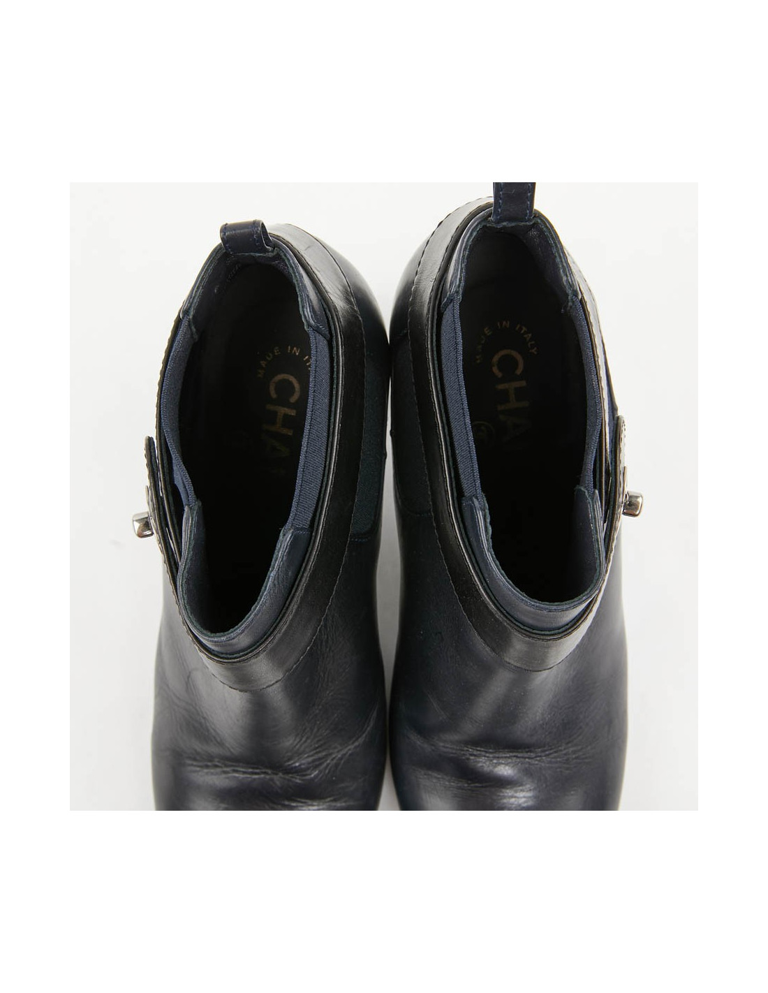 Boots T 37.5 CHANEL cuir d'agneau bleu et noir