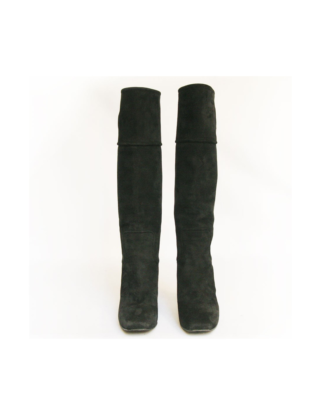Ces bottes CHRISTIAN DIOR sont en daim noir. C'est une Taille 38,5. Le sigle "CD" est en relief de chaque coté de celles-ci dans la même teinte (côté extérieur du chausson). L'intérieur du talon est en métal argenté. L'intérieur des chaussures est en cuir noir. Elles sont en très bon état.