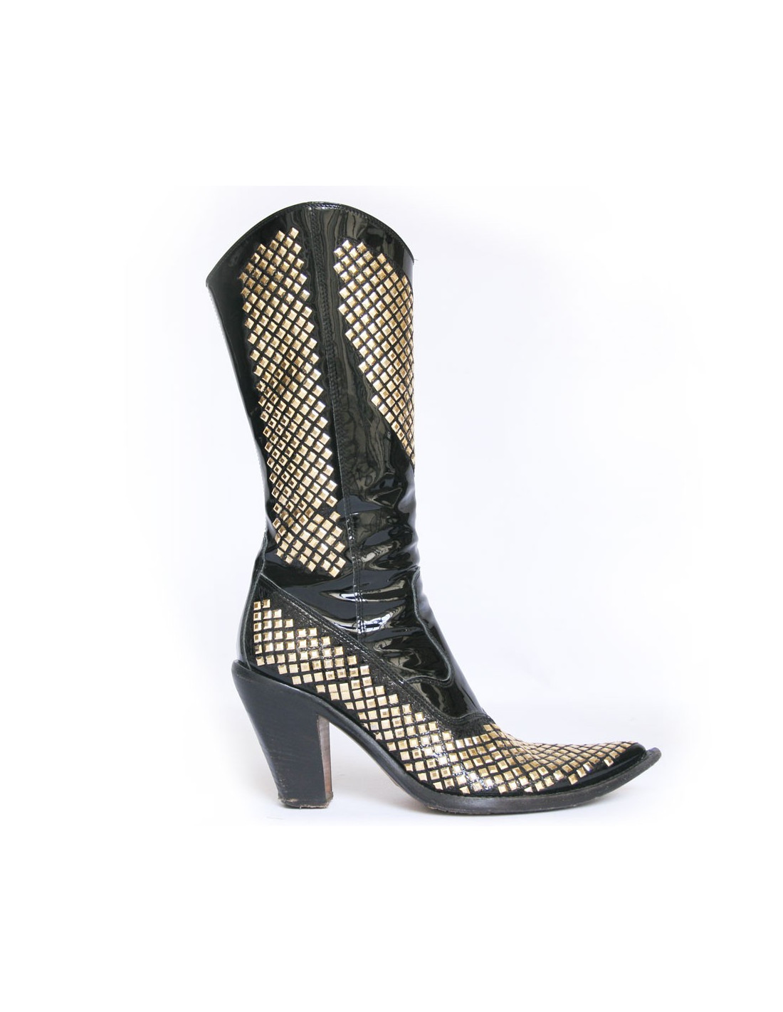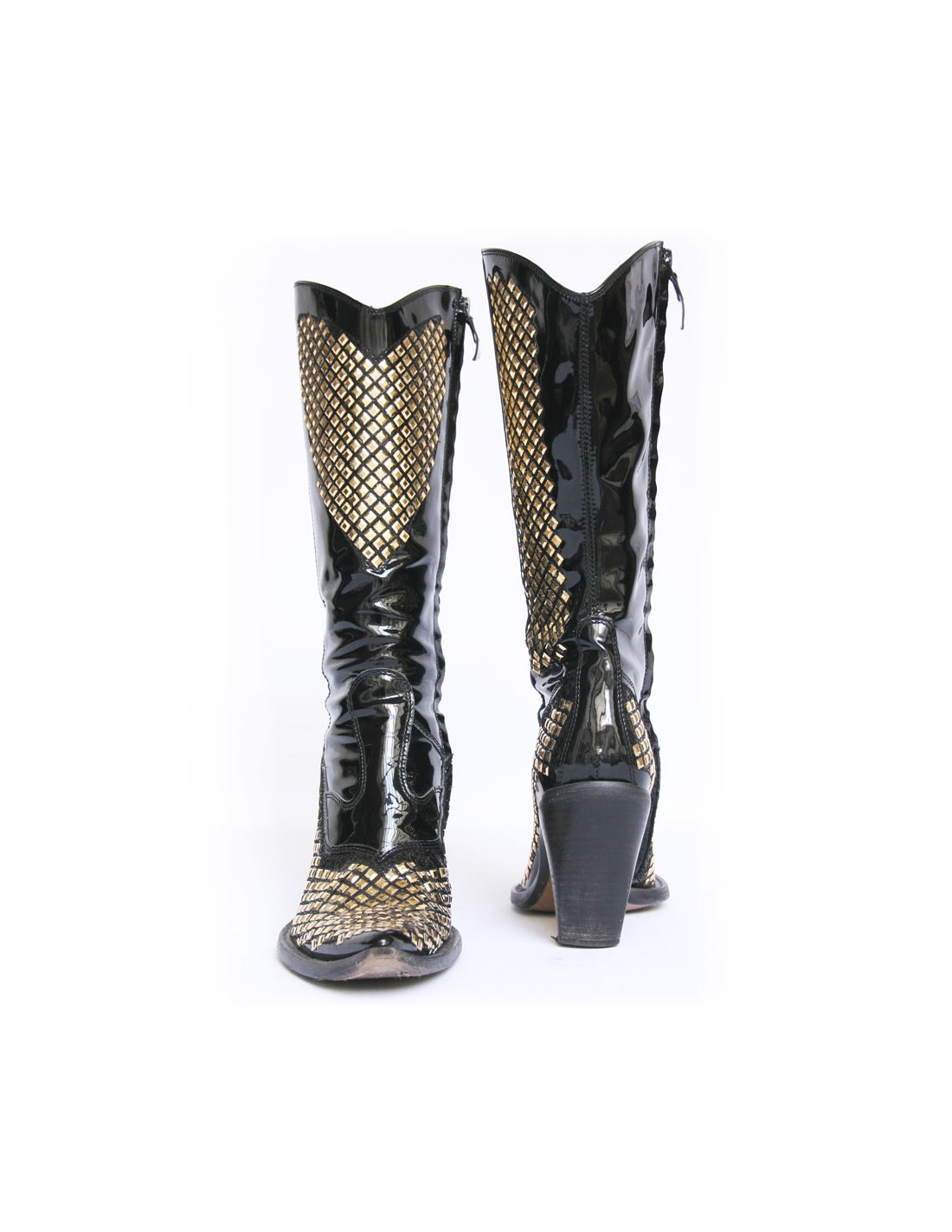 Santiags DAMY T37 en cuir verni et strass doré - en quelques mots :