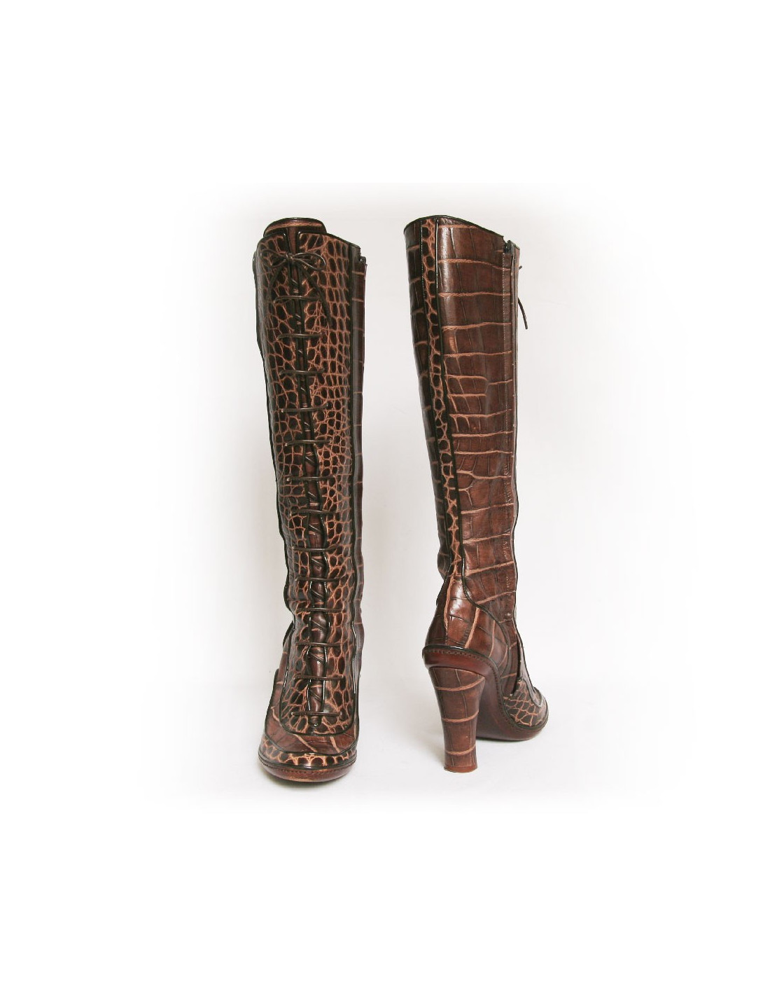 Bottes T 39 CELINE en cuir façon crocodile marron :