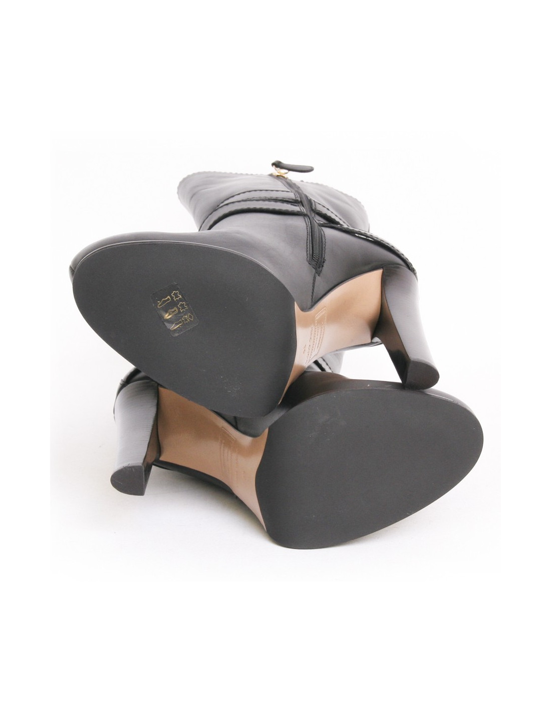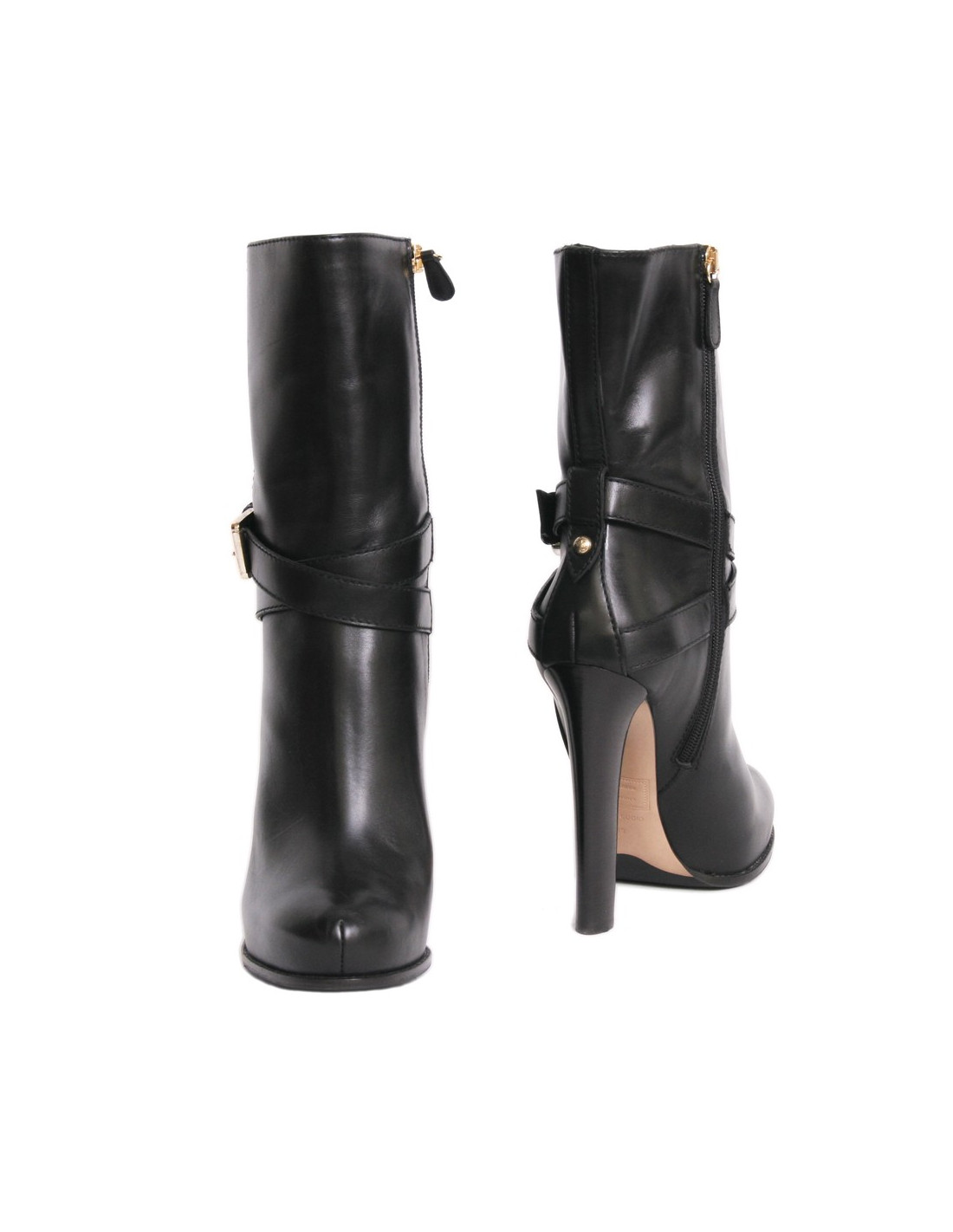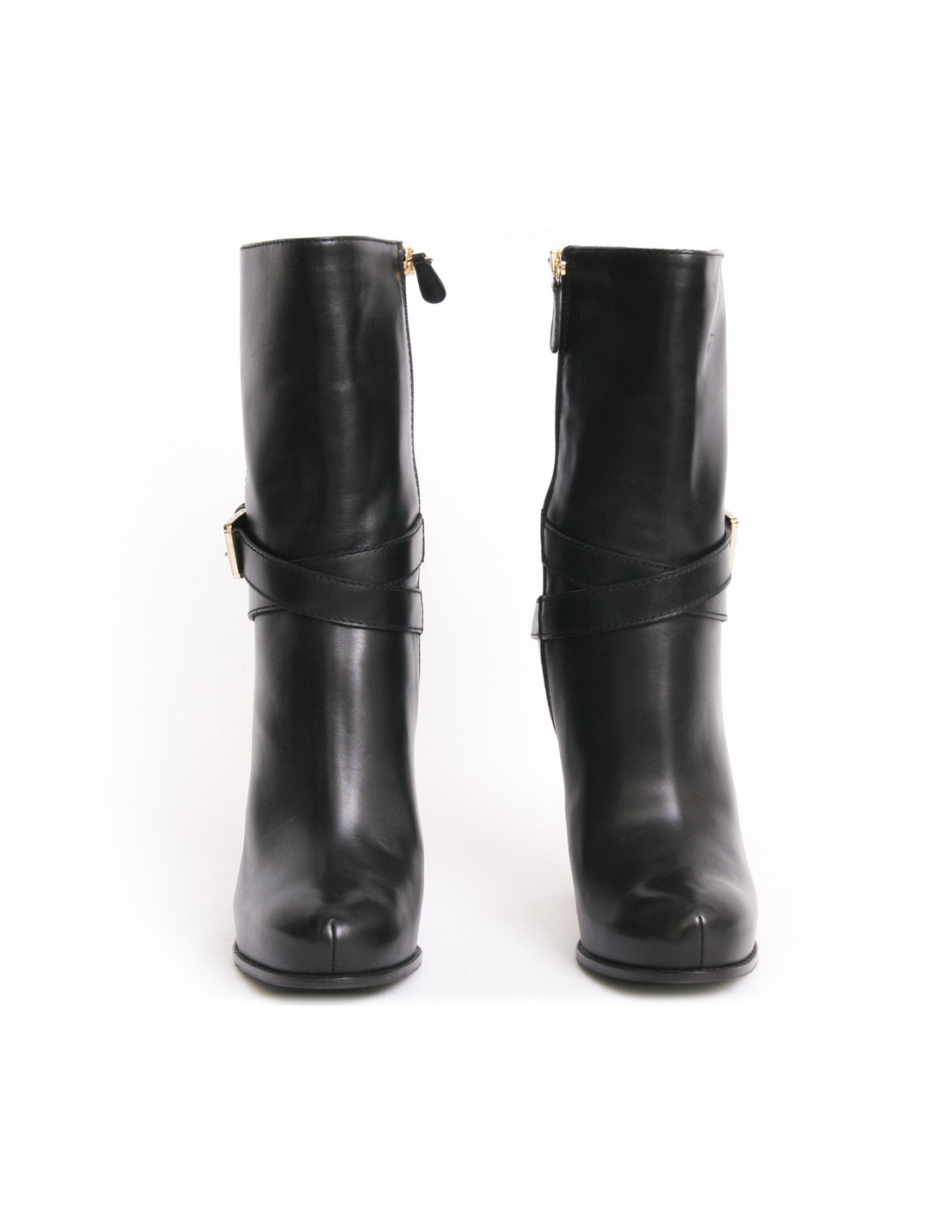 Sublime paire de bottines à talons Dsquared2 taille 39 en cuir lisse noir et bijouterie dorée. Elle se ferme par une fermeture zippée. Il y a une plateforme à l'intérieur des bottines pour plus de confort ainsi qu'un patin antidérapant. En très bon état.