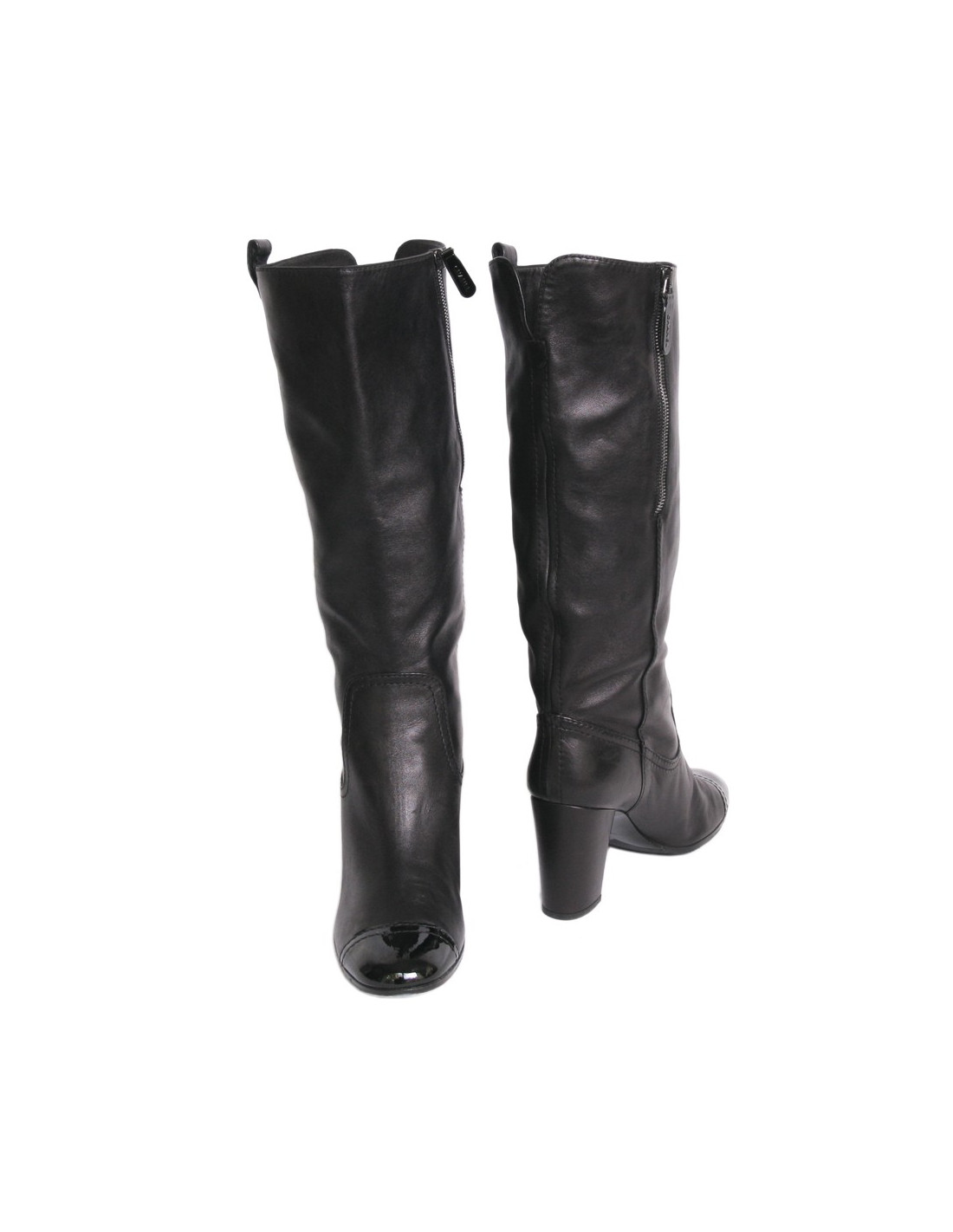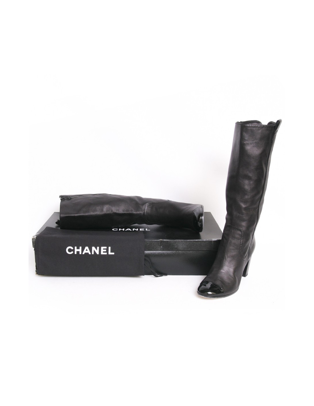 Bottes T 41,5 CHANEL cuir d'agneau et verni noir