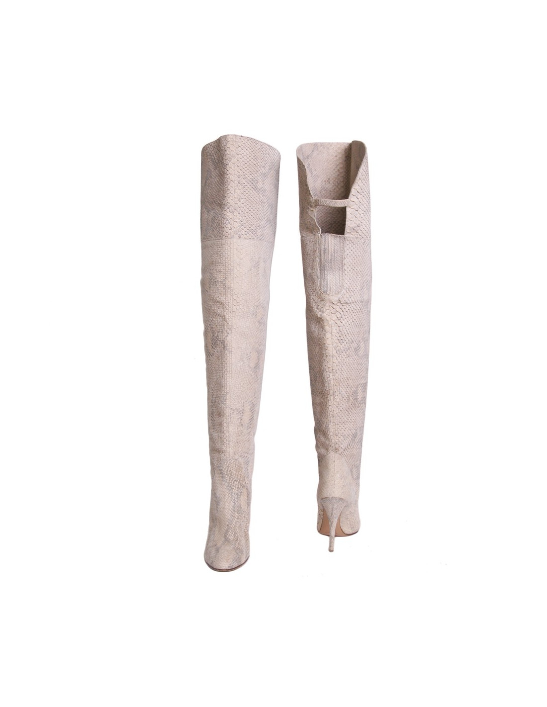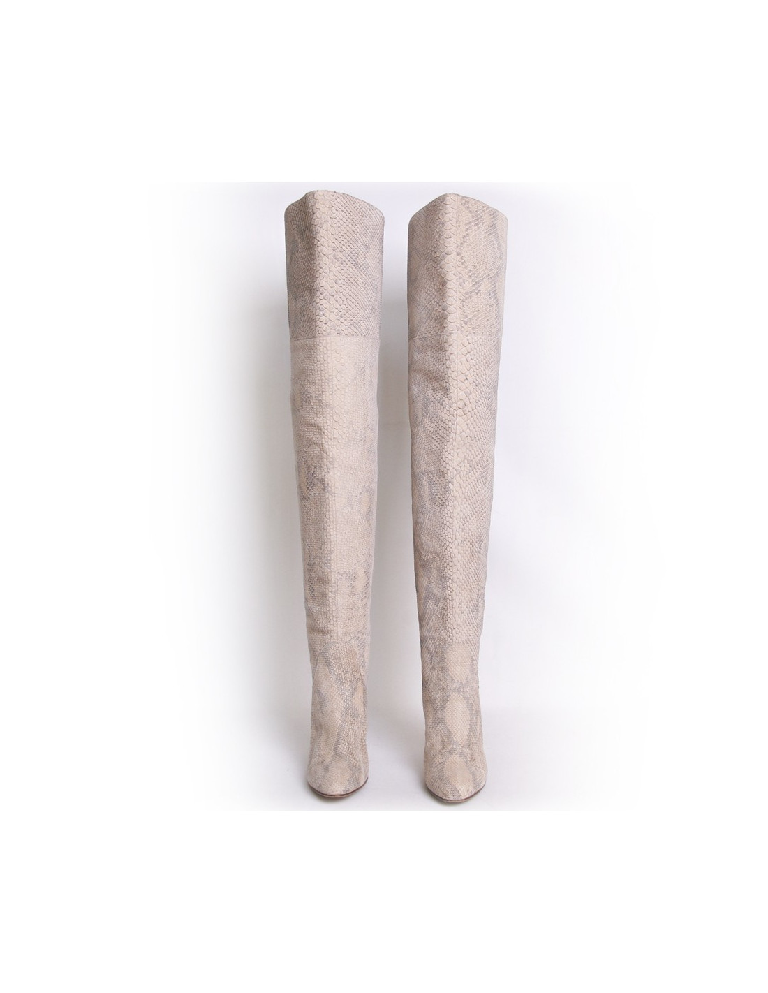 Sublimes cuissardes Chloé taille 41 en python crème. L'intérieur est en cuir d'agneau beige. Le haut des cuissardes est réversible. Le devant du talon est en métal doré. Le prix public des cuissardes est de 1530 euros. En très bon état.