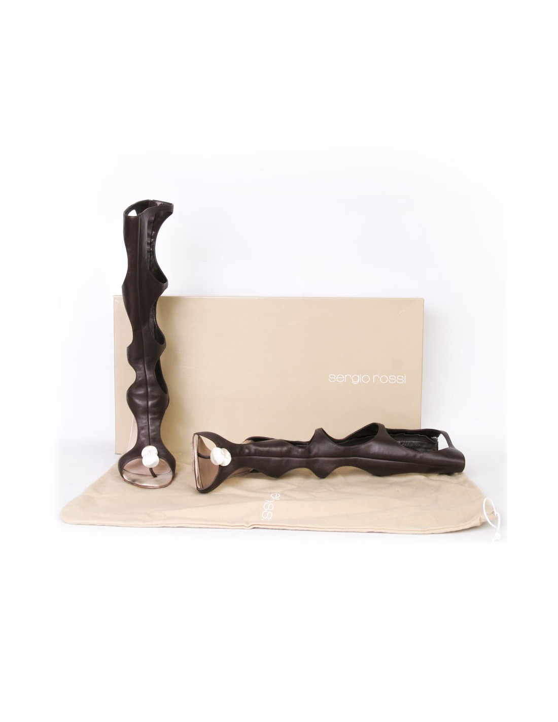 Bottes hautes à talons T 37.5 SERGIO ROSSI perforées en cuir marron pour l'été - détails: