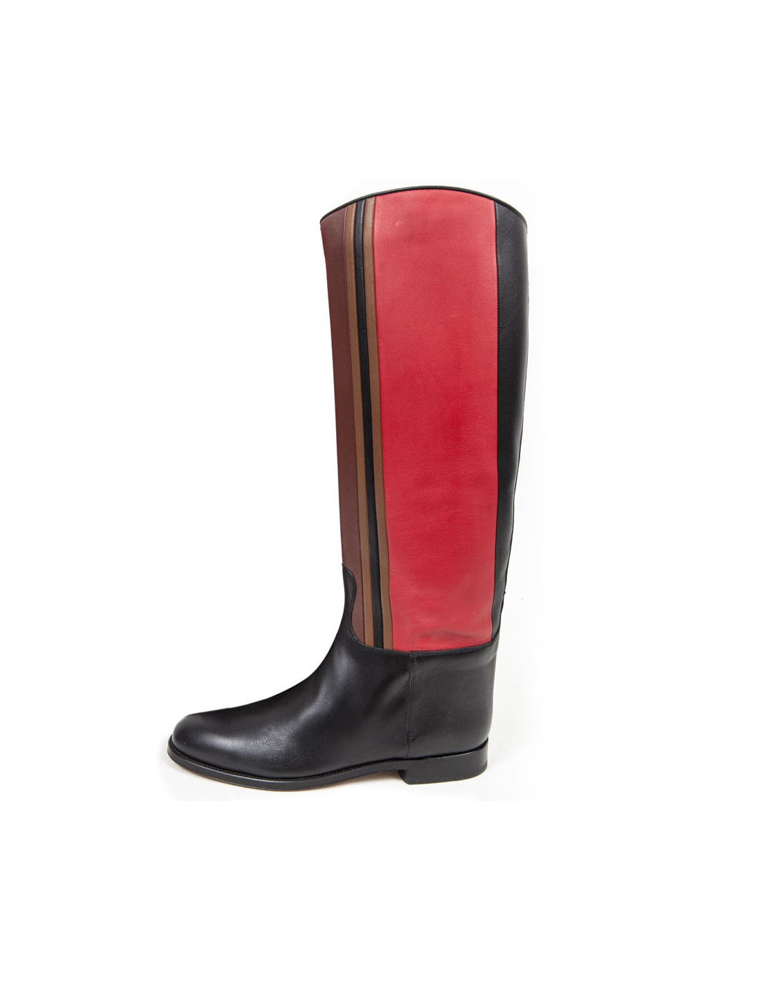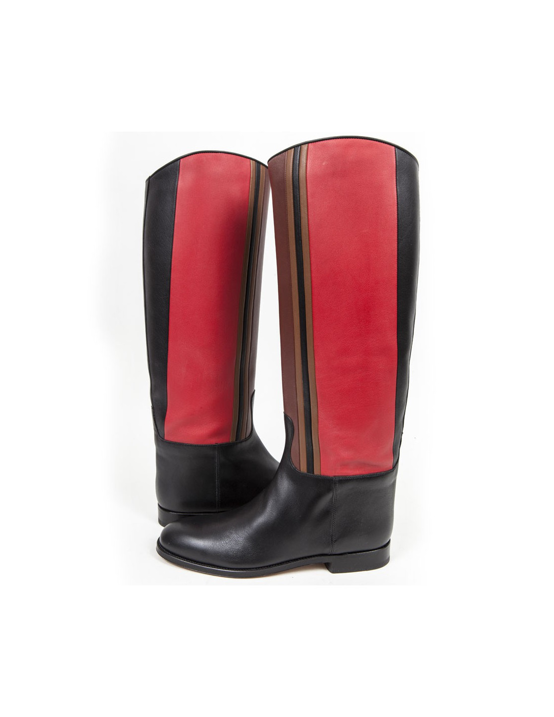 COLLECTOR ! Ces bottes cavalière de la Maison HERMES sont en cuir multicolores ( noir, rouge, marron , vert ). C'est une taille 39. Elles sont doublées en cuir de couleur camel. La semelle est en cuir. Elles n'ont jamais été portées. Le Prix Public à l'époque était de 2500euros. Aujourd'hui la maison HERMES ne produit plus ce modèle.