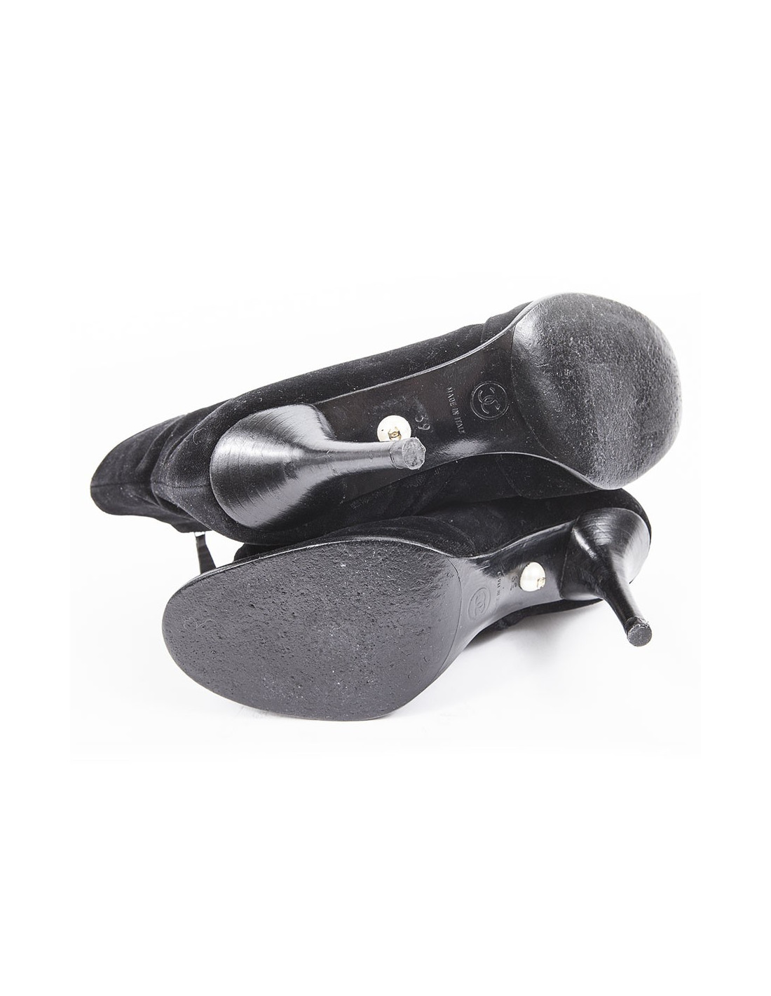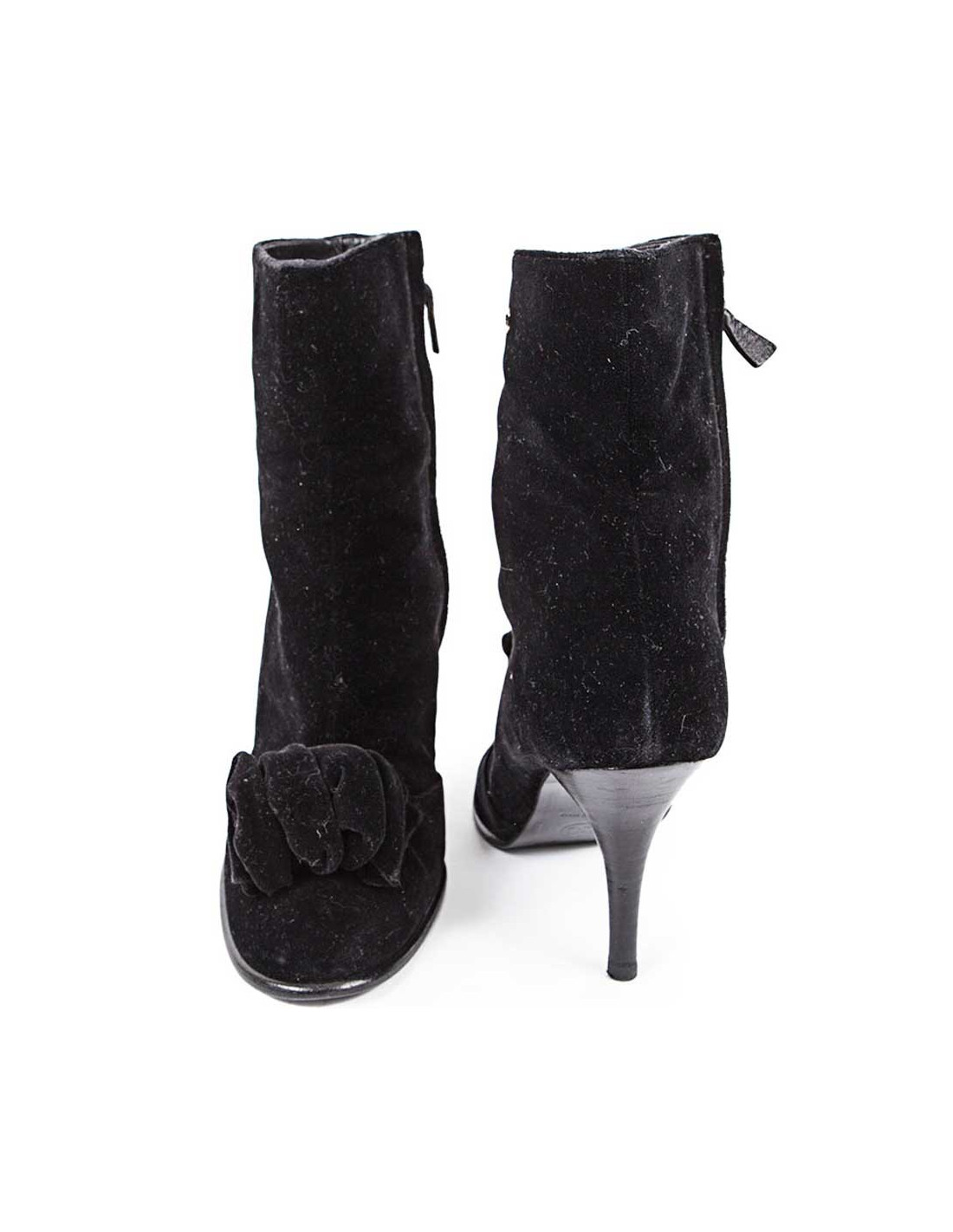 Bottines à talons T 39 CHANEL veau velours noir