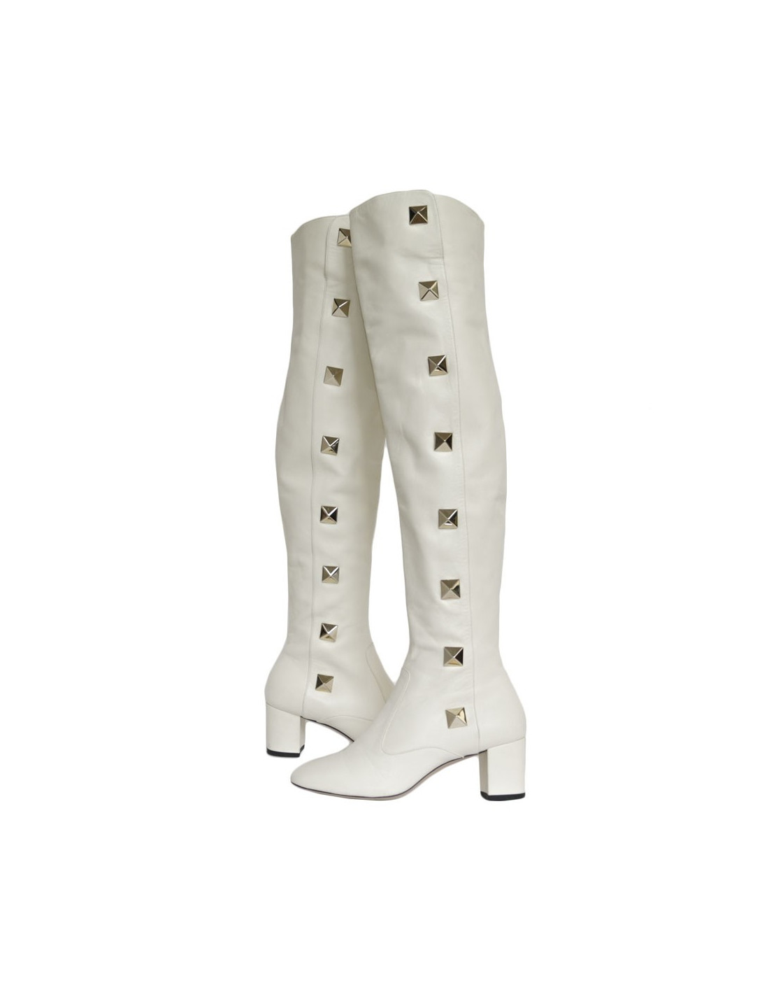 Superbes cuissardes Valentino en cuir nappa blanc cassé ornées de rockstuds géants dorés or pâle.