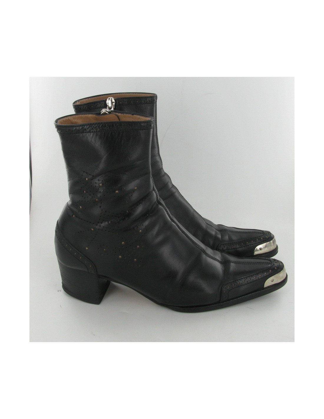 Jolie paire de boots à talon en cuir noir perforé T35.5 SERGIO ROSSI