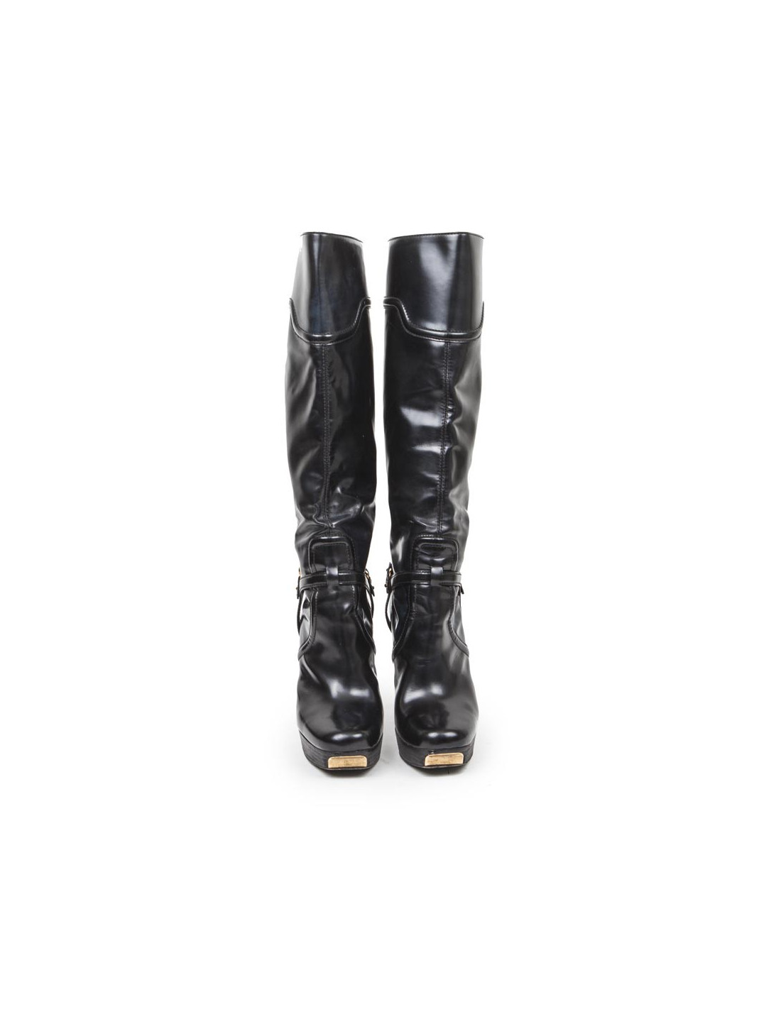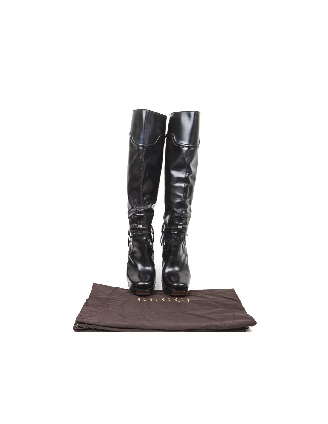 Bottes à talons T40 GUCCI cuir noir verni mat