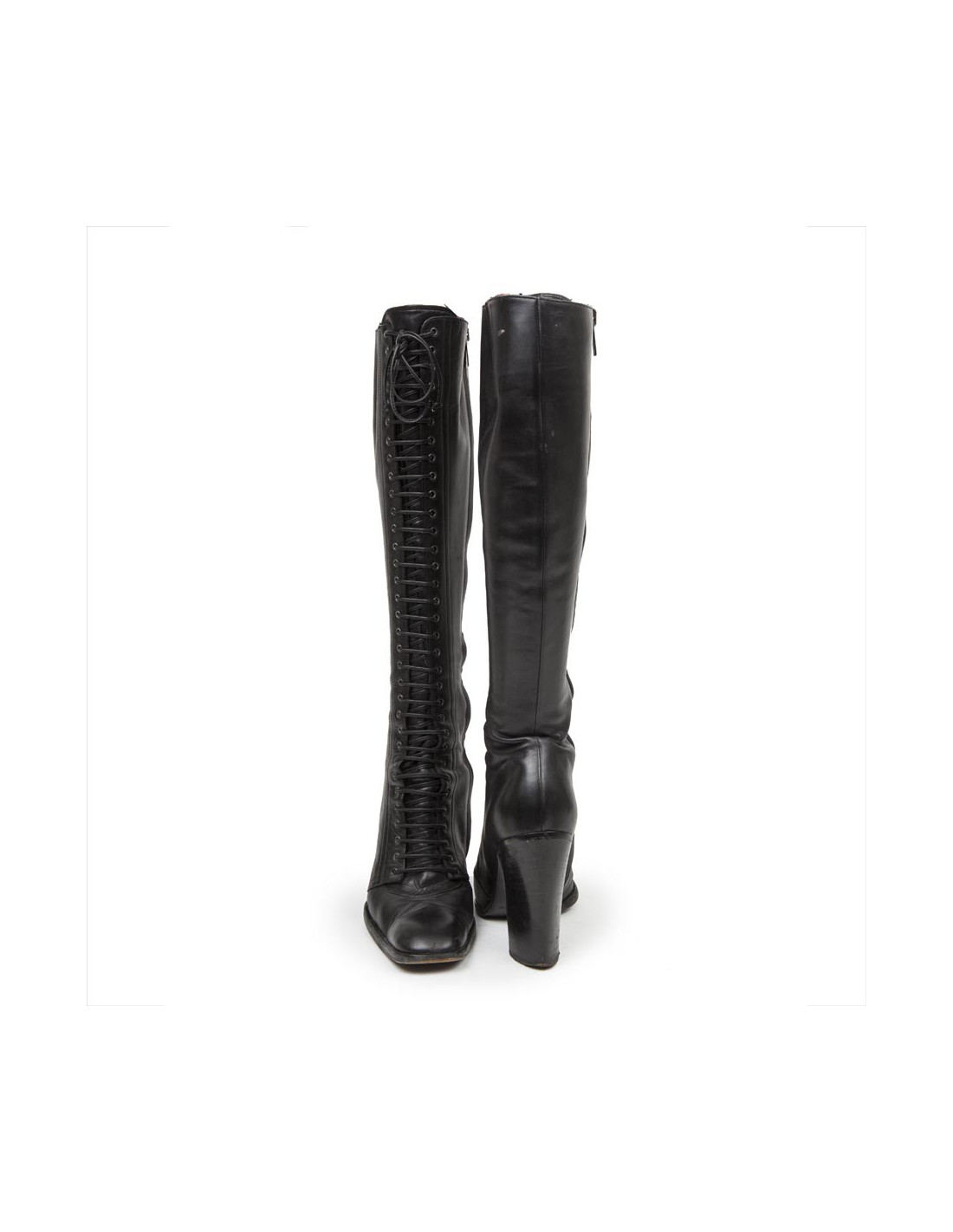 Bottes hautes YVES SAINT LAURENT T 37 en cuir noir à lacets
