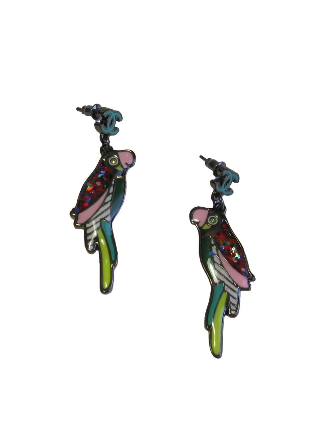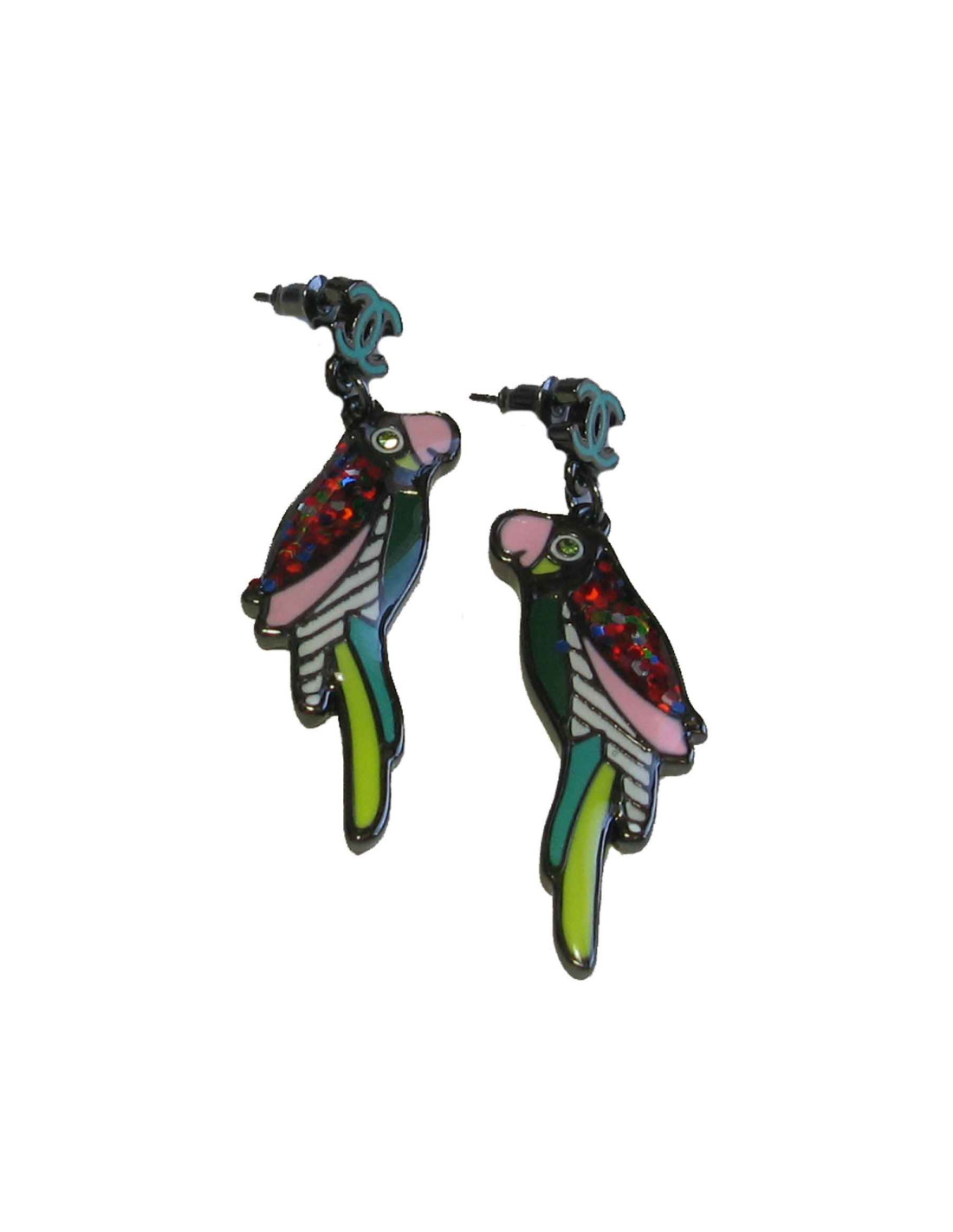 Boucles d'oreille clous CHANEL perroquet "Paris-Cuba"