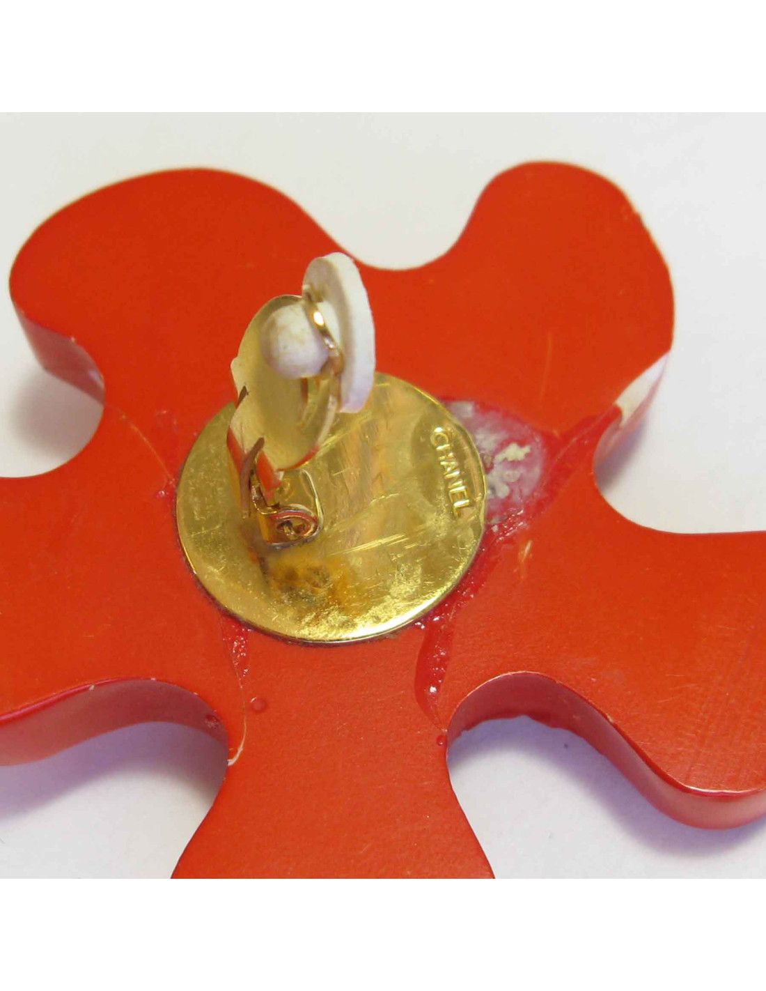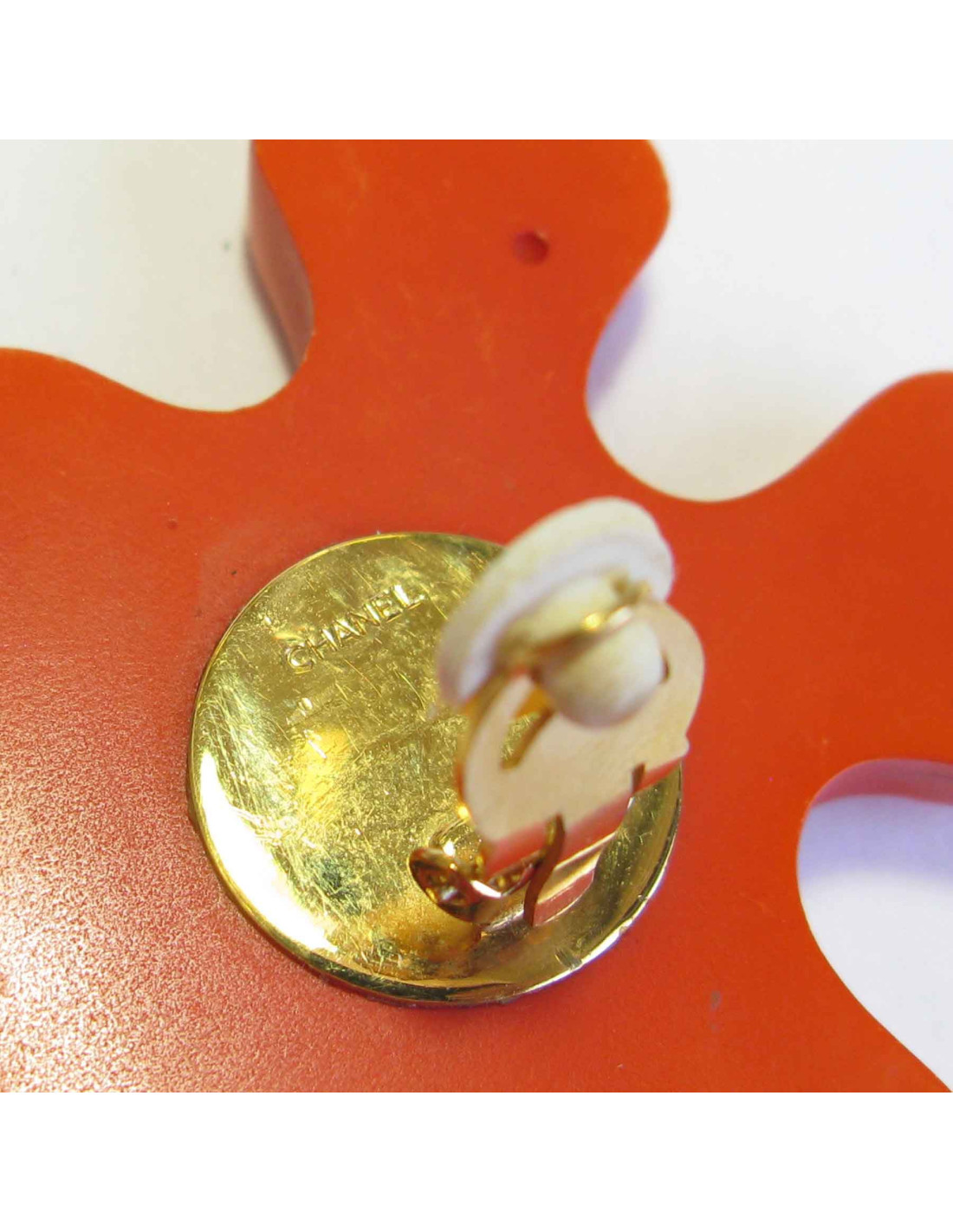 Boucles d'oreilles clip CHANEL 1990's orange et nacre